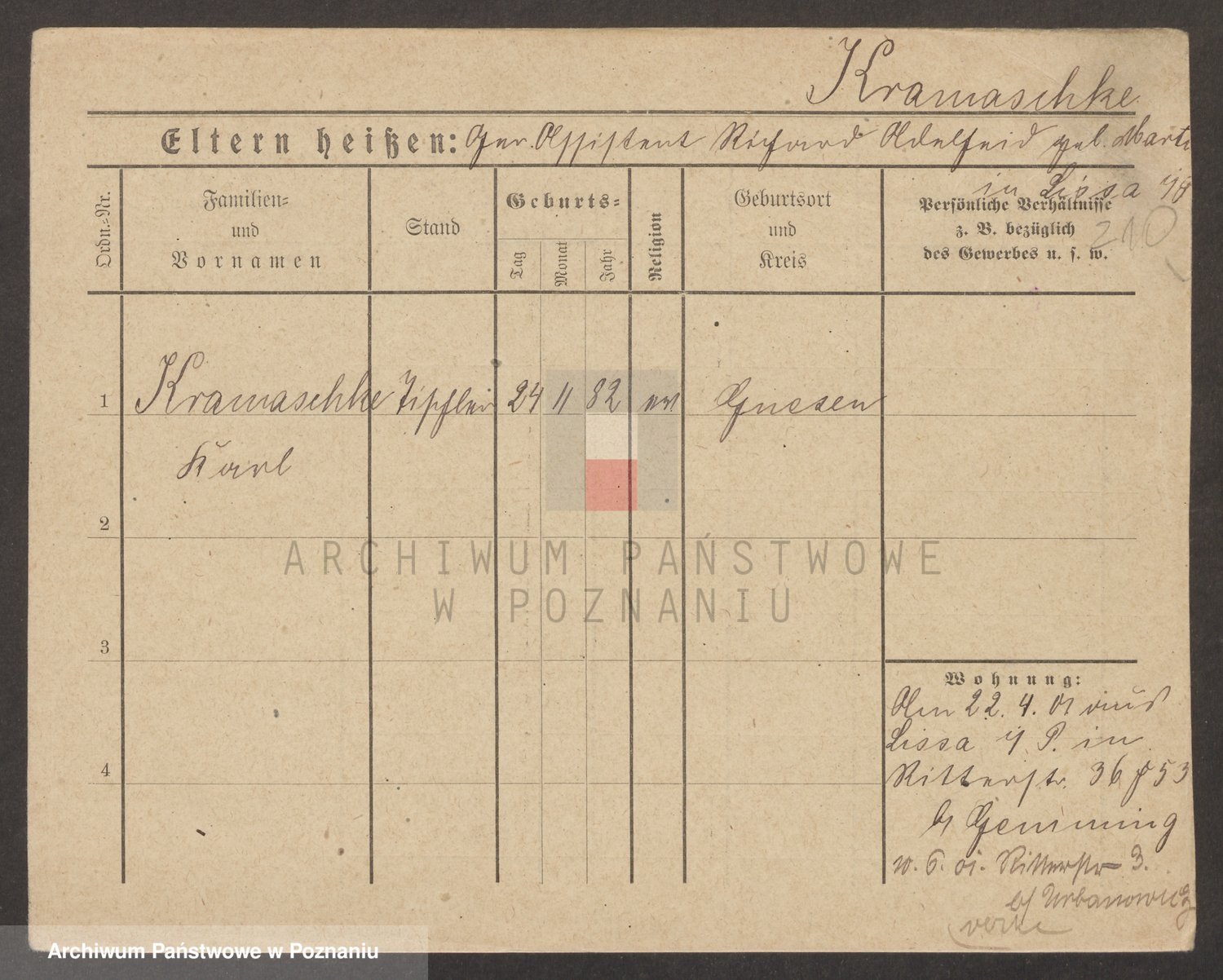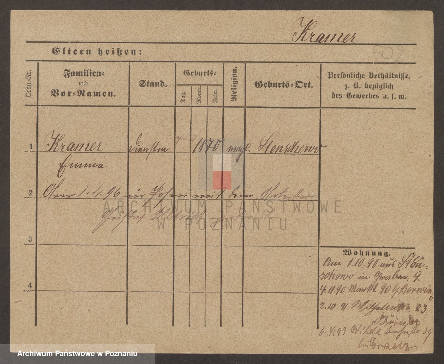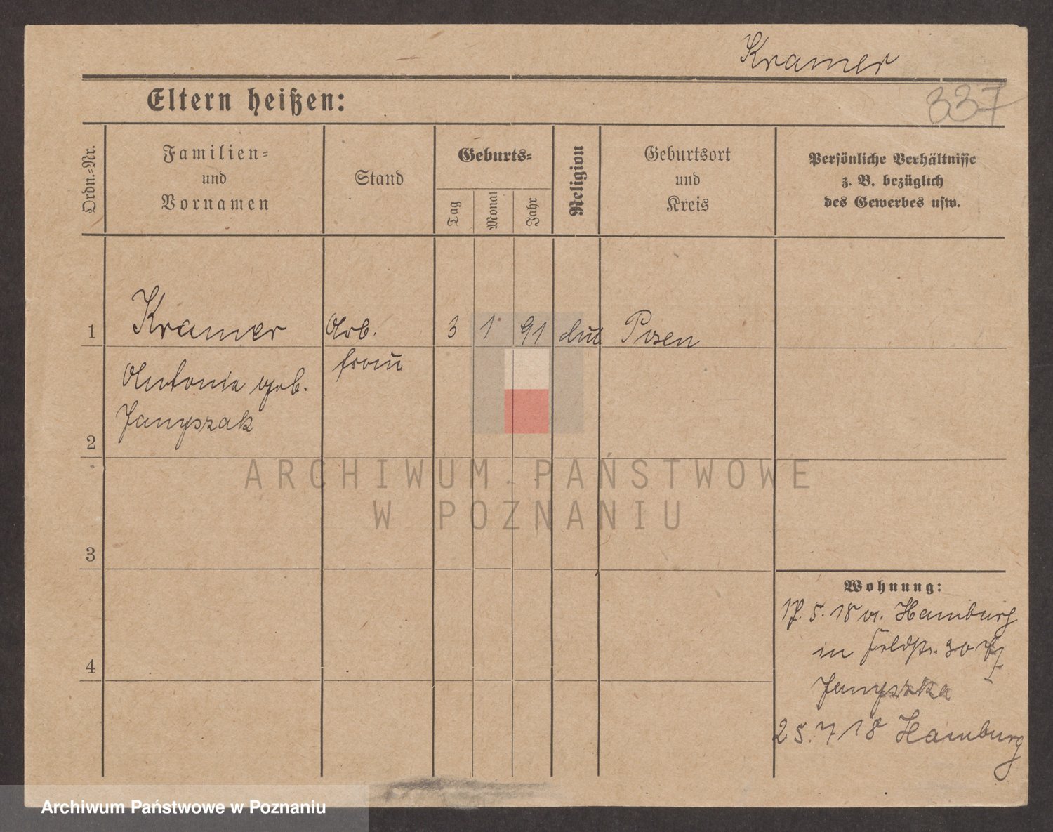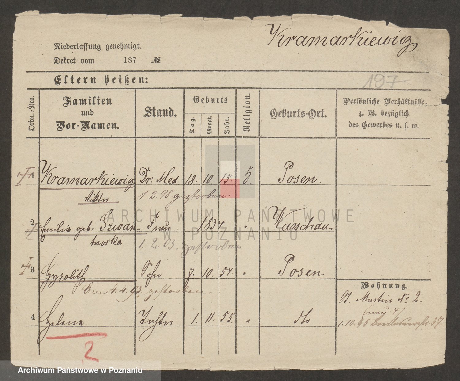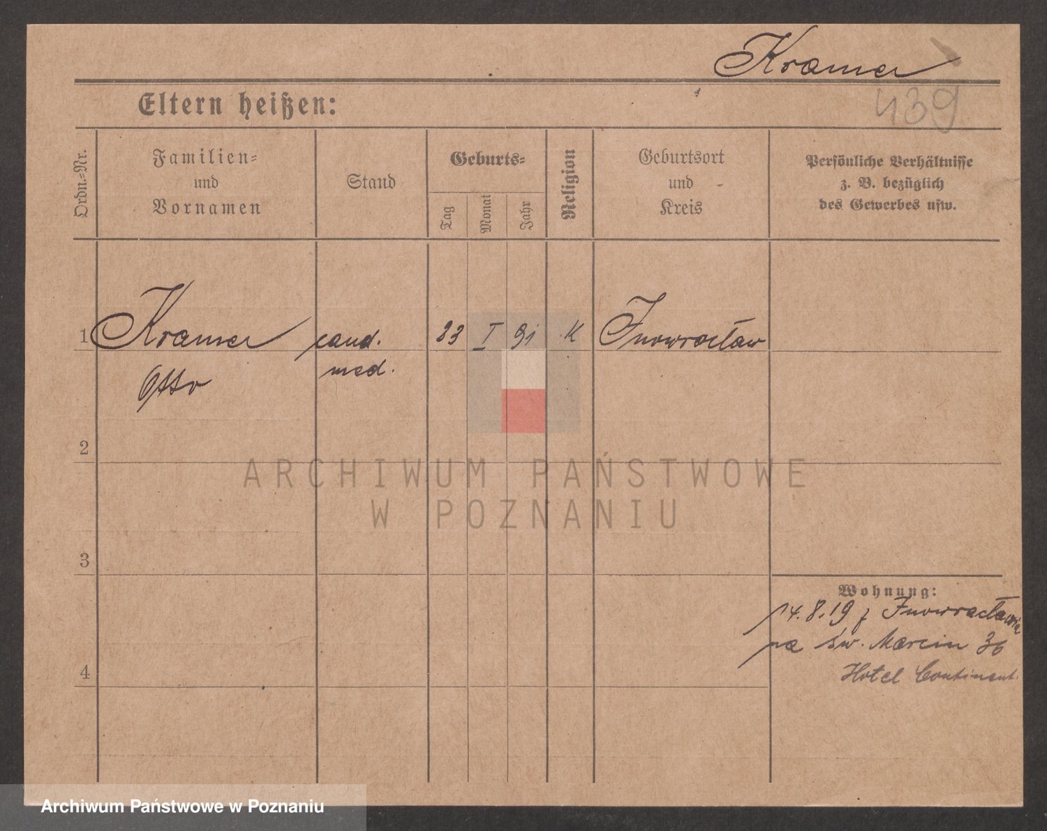 Podgląd karty osobowej dostępny jest po kliknięciu na nazwisko lub ikonkę karty. Można dokonywać powiększenia (ikony na górze) lub przechodzić między kolejnymi skanami (strzałki po bokach).