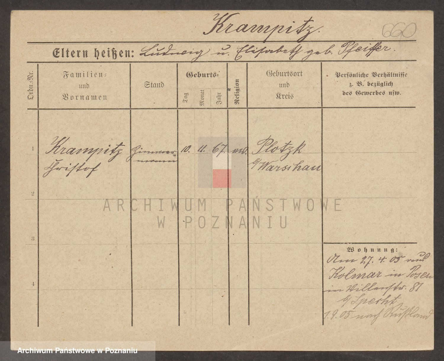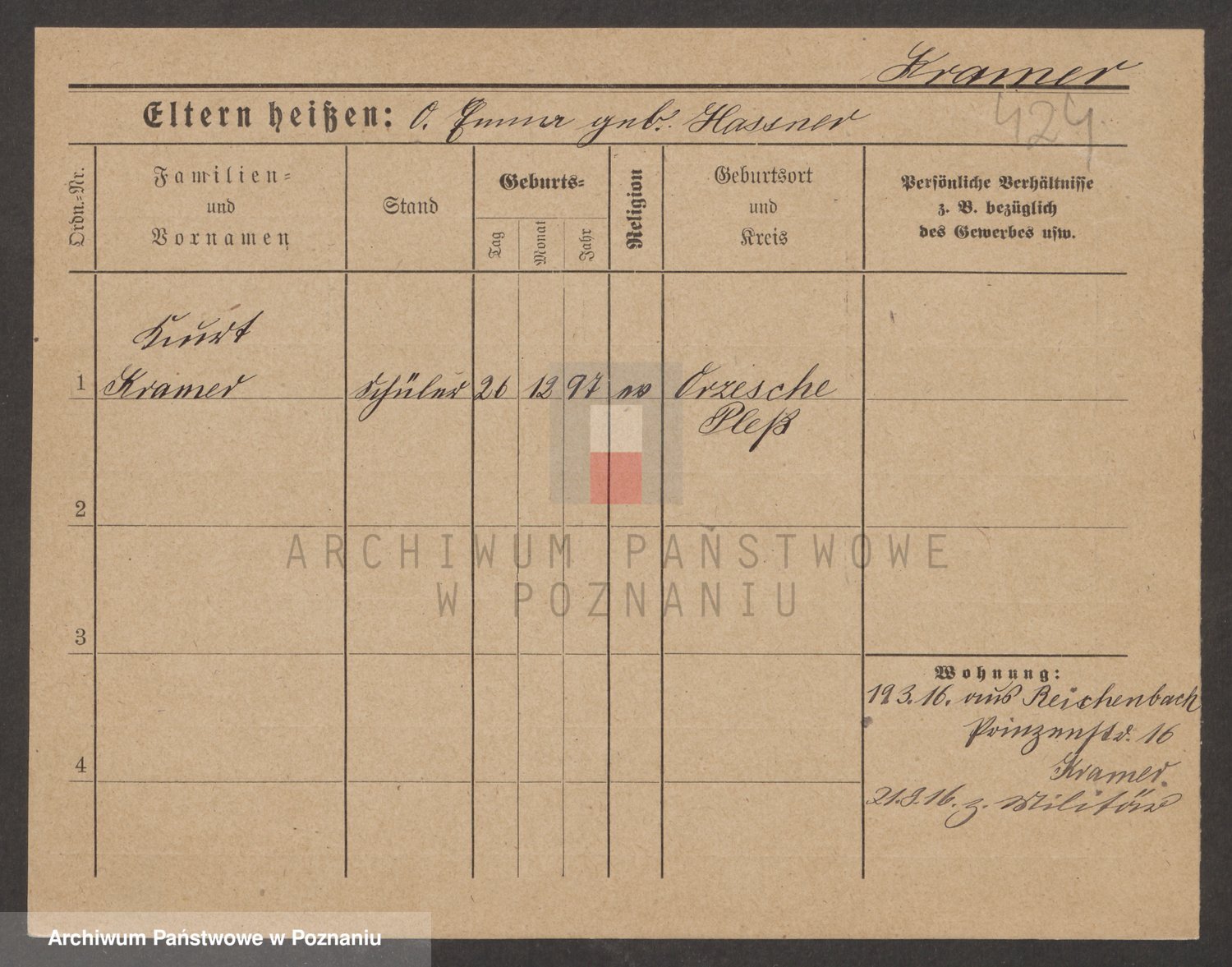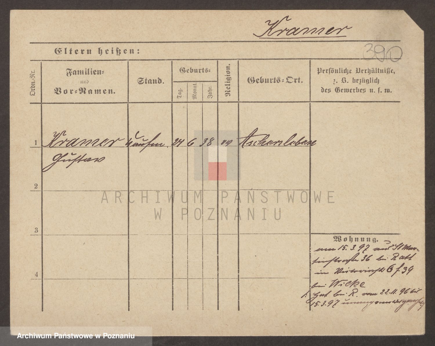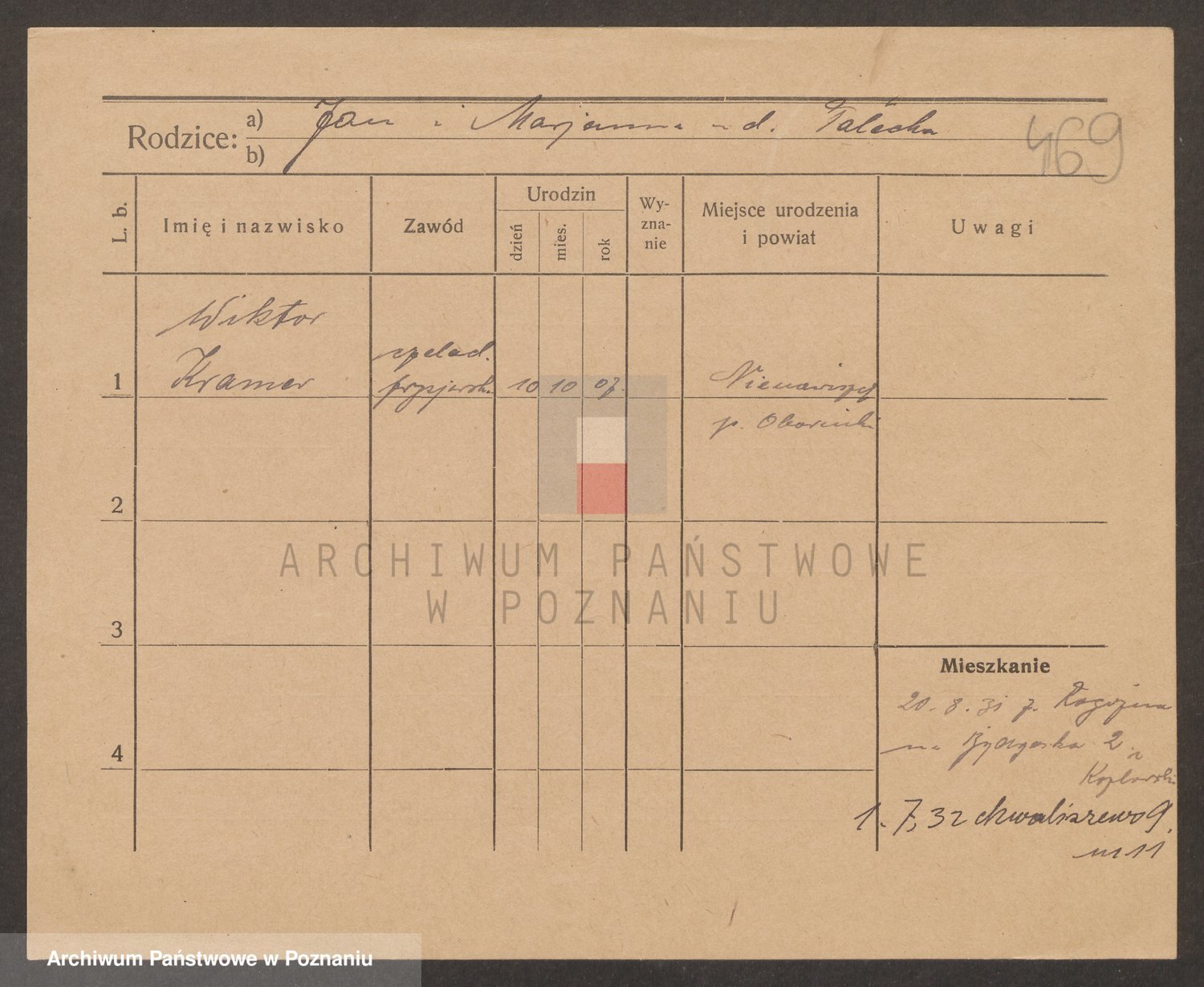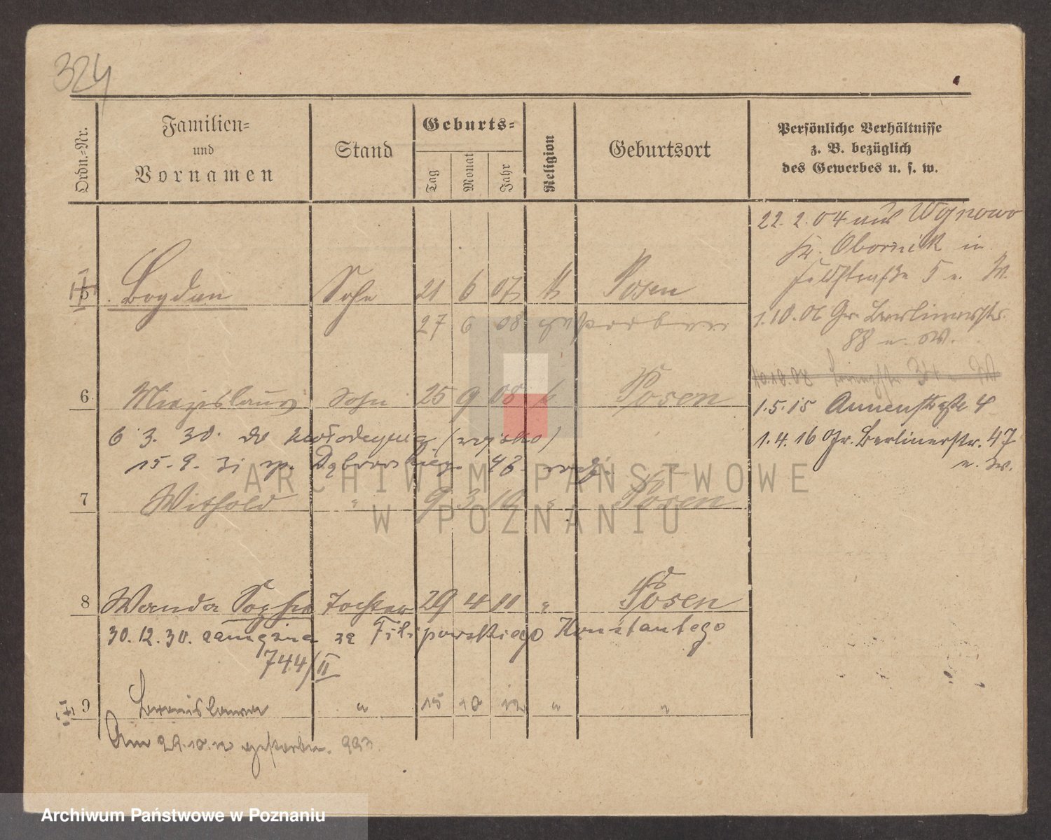 Podgląd karty osobowej dostępny jest po kliknięciu na nazwisko lub ikonkę karty. Można dokonywać powiększenia (ikony na górze) lub przechodzić między kolejnymi skanami (strzałki po bokach).