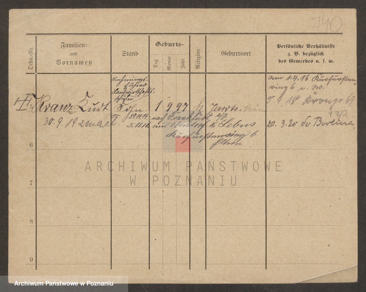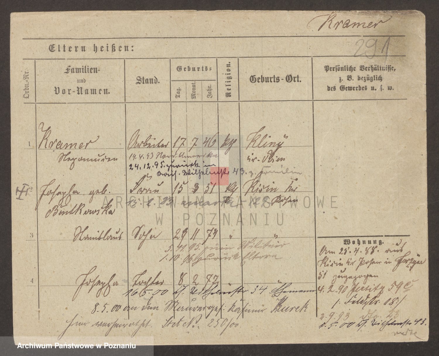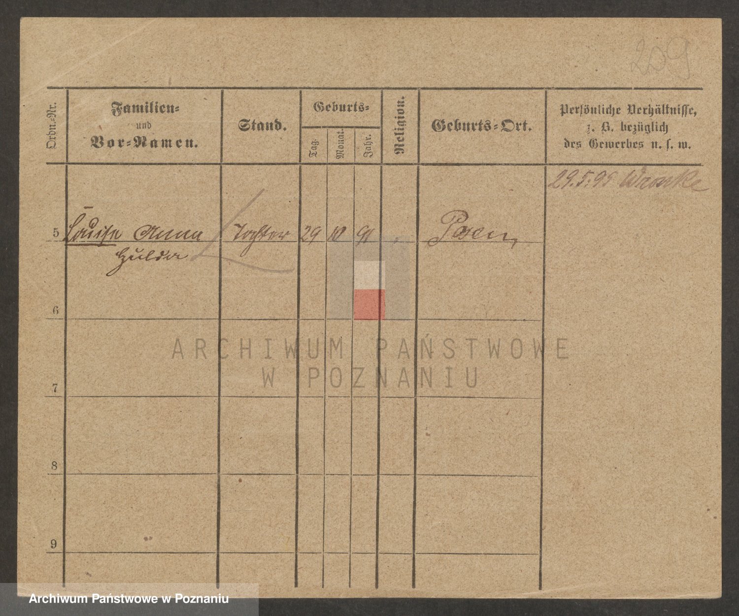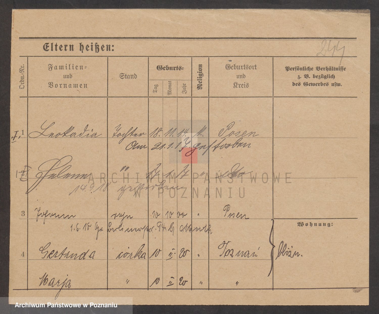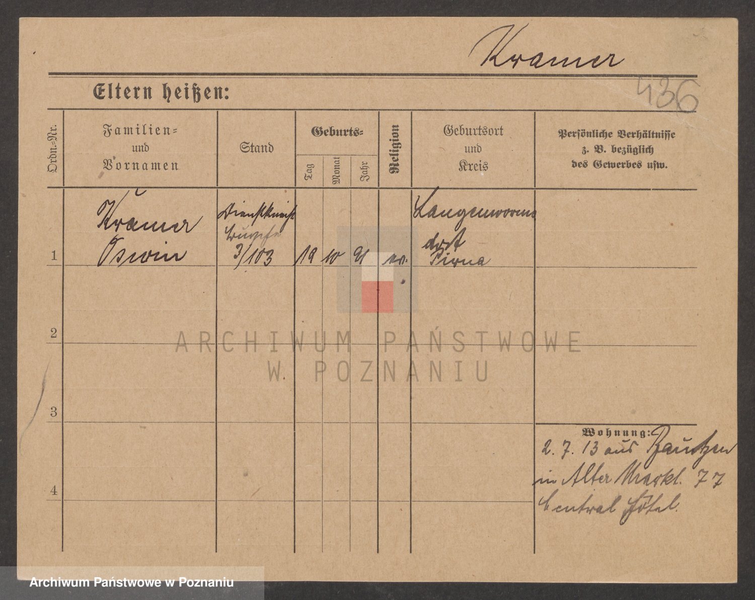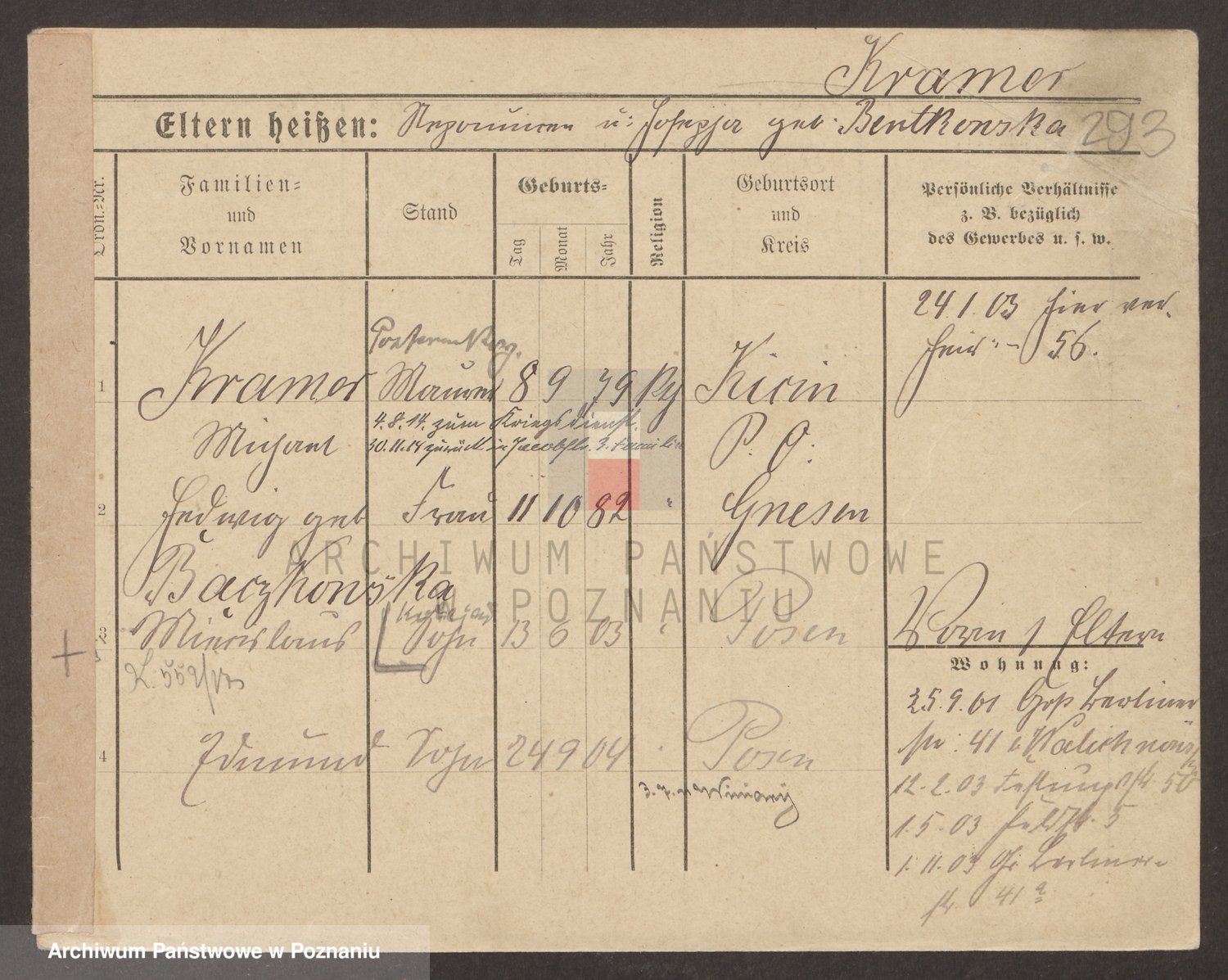 Podgląd karty osobowej dostępny jest po kliknięciu na nazwisko lub ikonkę karty. Można dokonywać powiększenia (ikony na górze) lub przechodzić między kolejnymi skanami (strzałki po bokach).