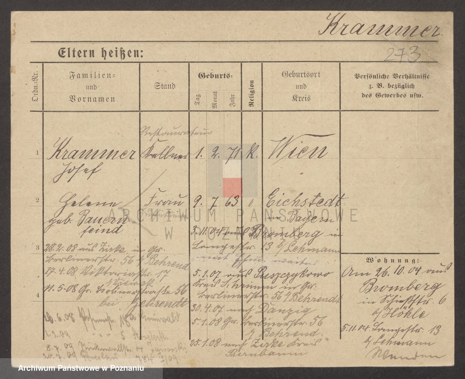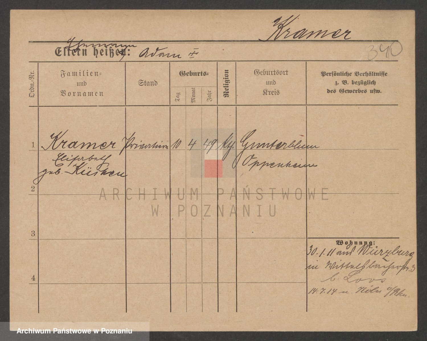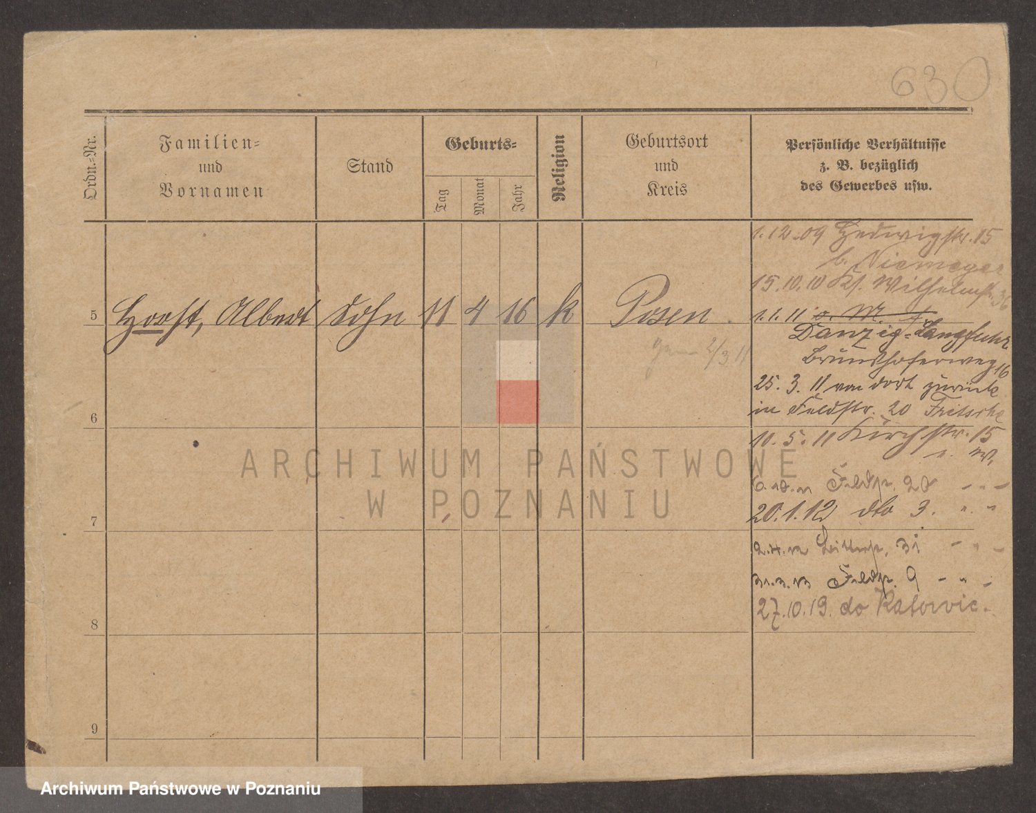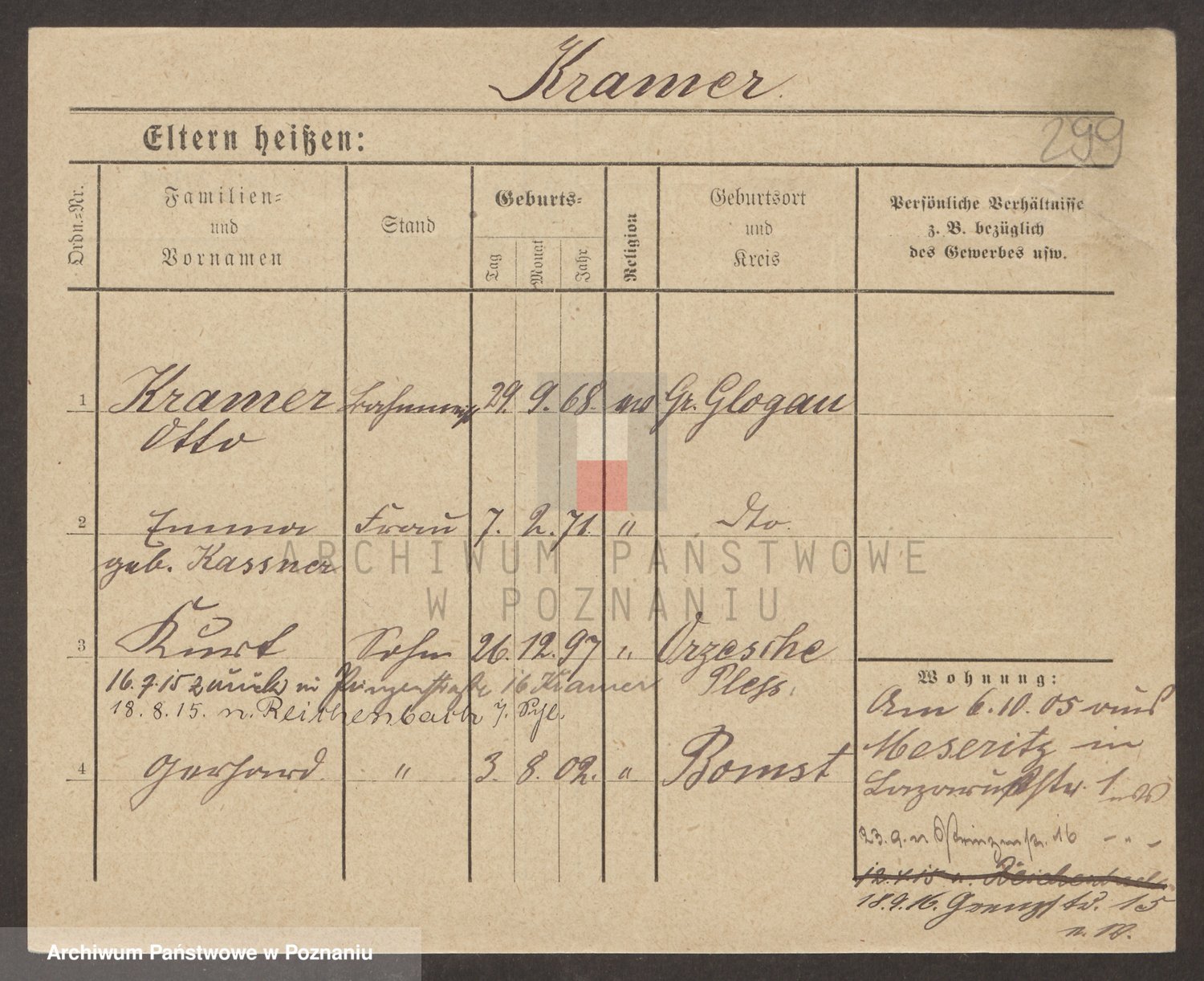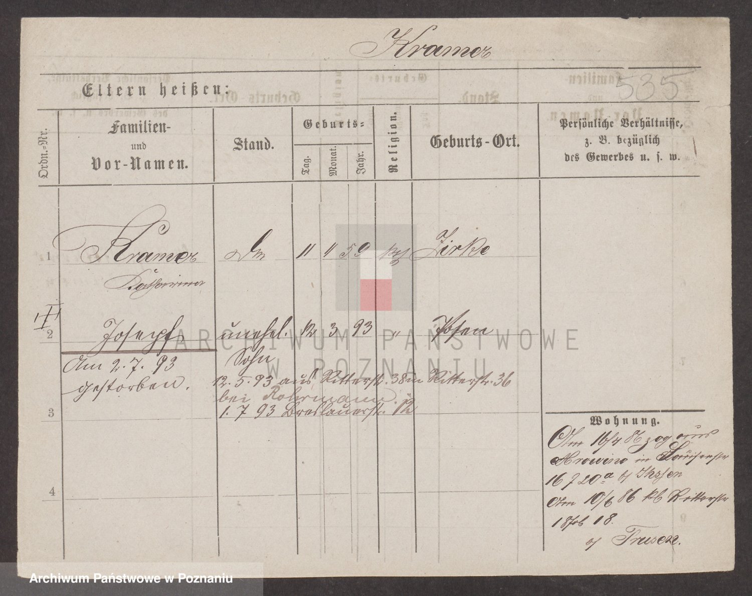 Podgląd karty osobowej dostępny jest po kliknięciu na nazwisko lub ikonkę karty. Można dokonywać powiększenia (ikony na górze) lub przechodzić między kolejnymi skanami (strzałki po bokach).