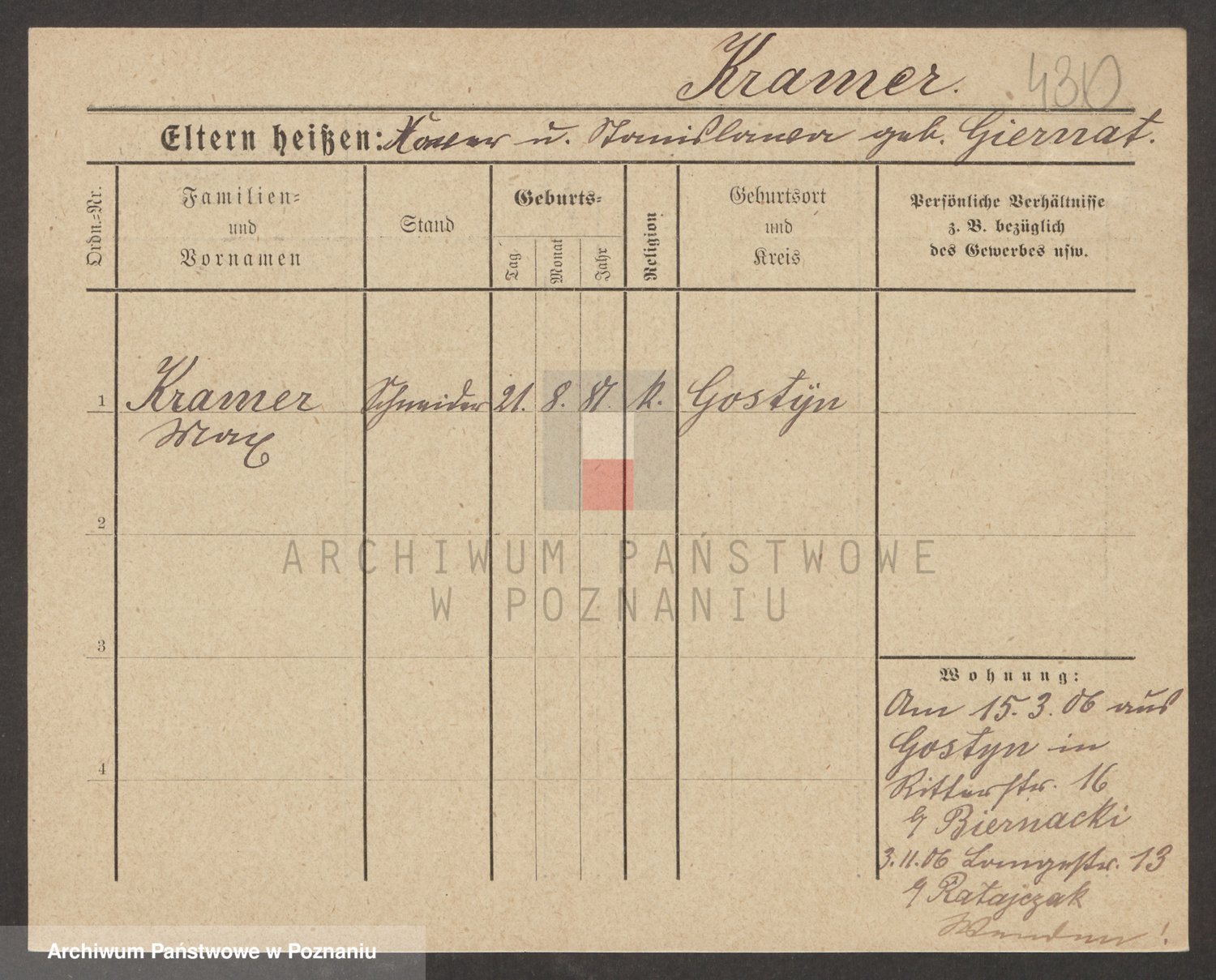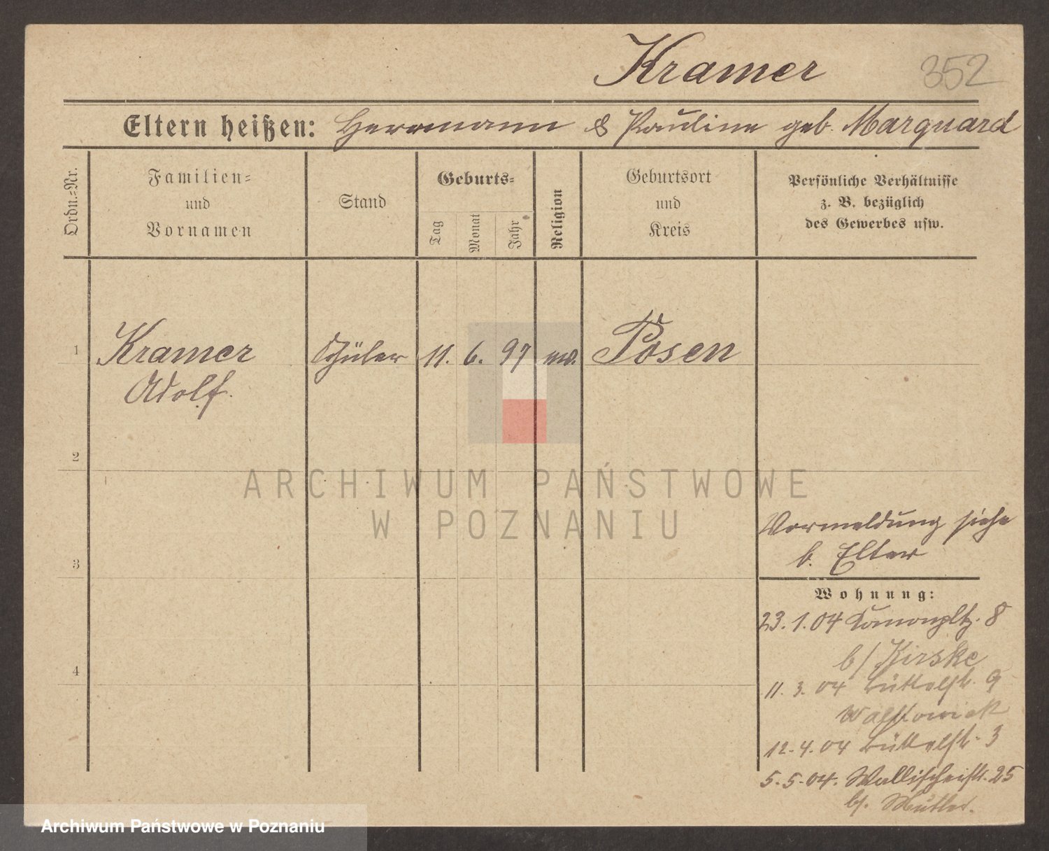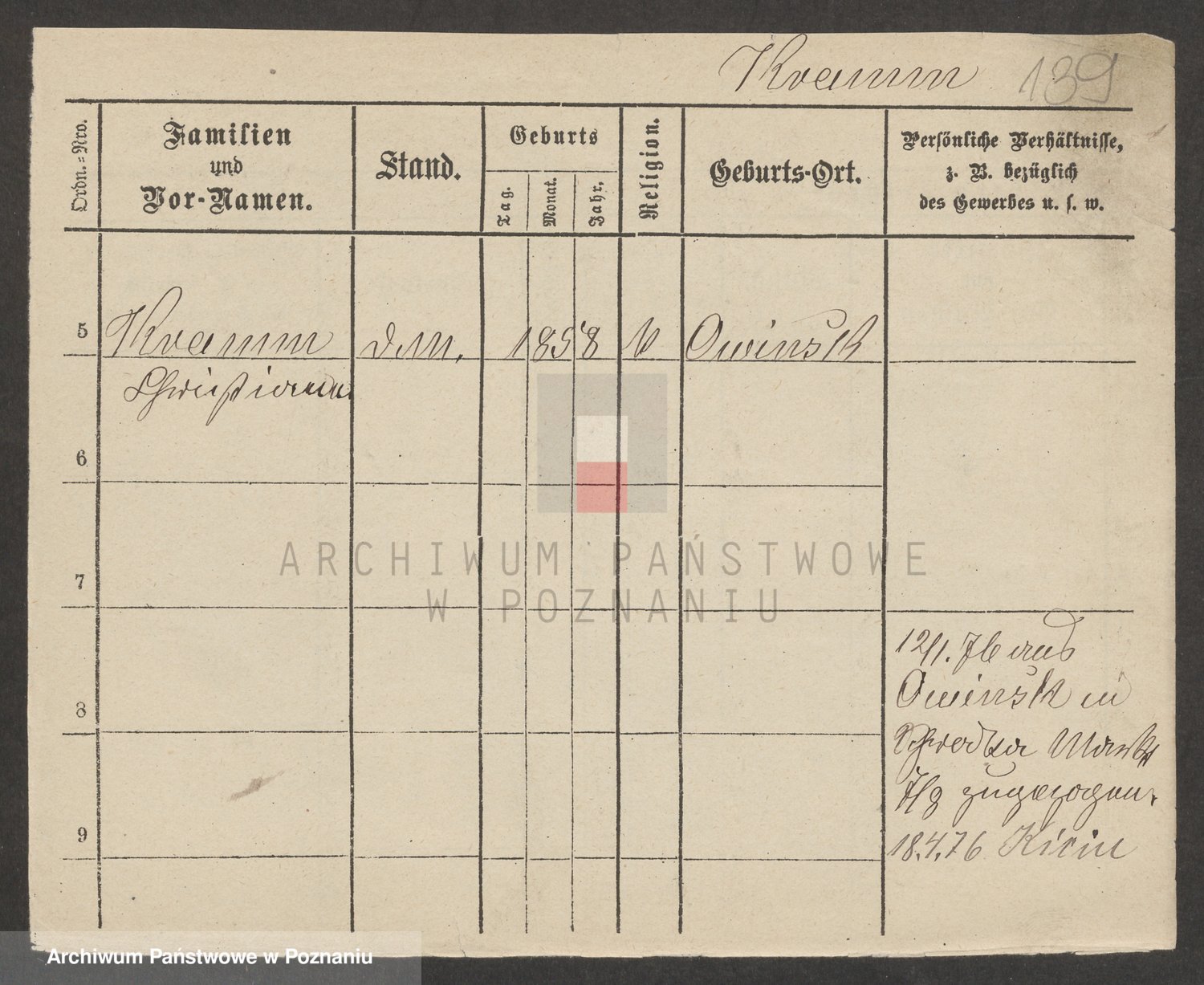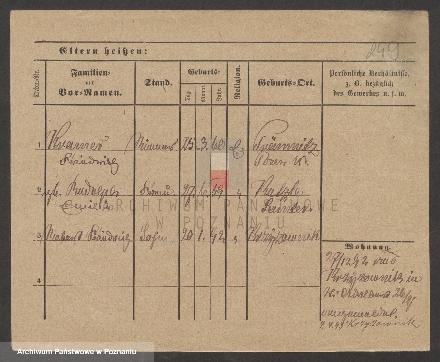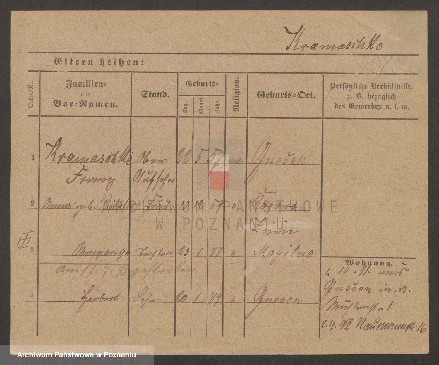 Podgląd karty osobowej dostępny jest po kliknięciu na nazwisko lub ikonkę karty. Można dokonywać powiększenia (ikony na górze) lub przechodzić między kolejnymi skanami (strzałki po bokach).