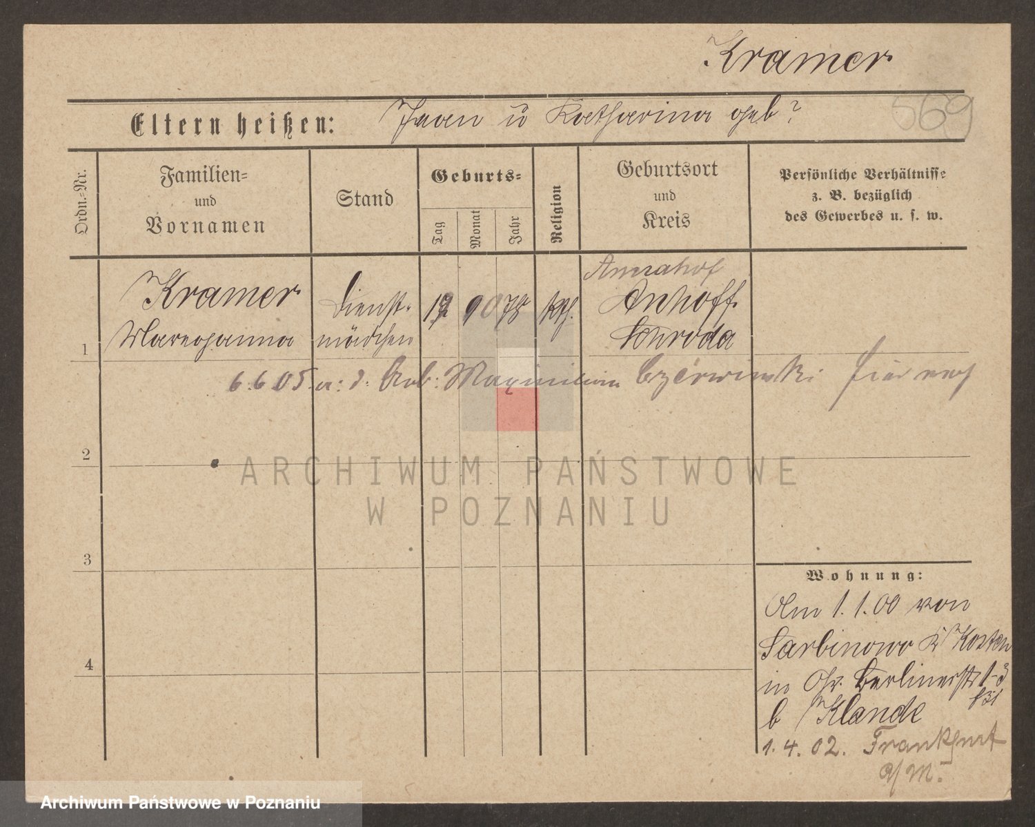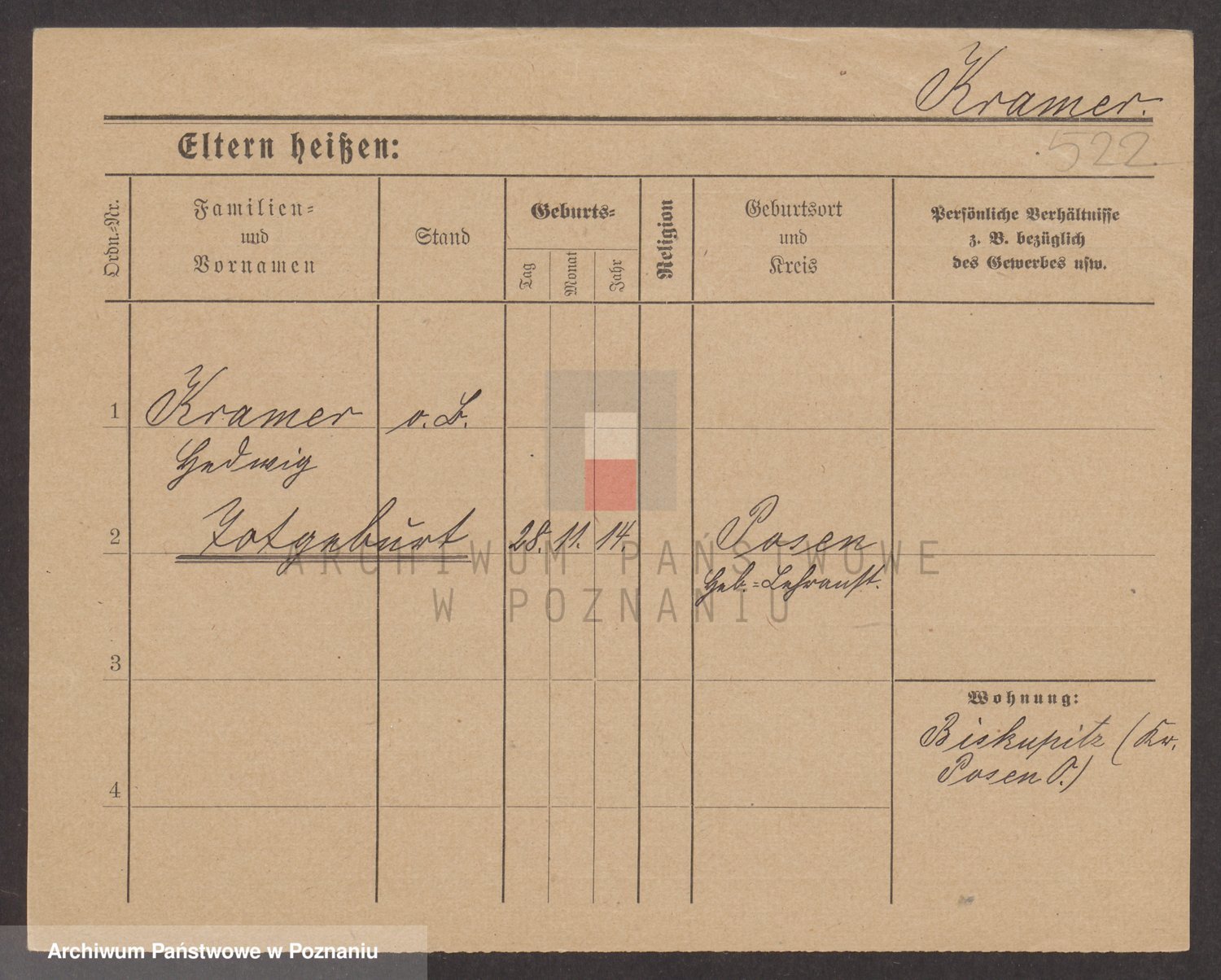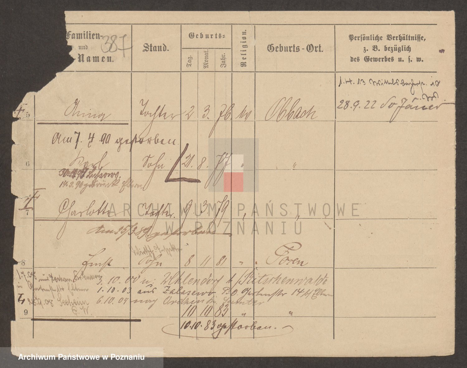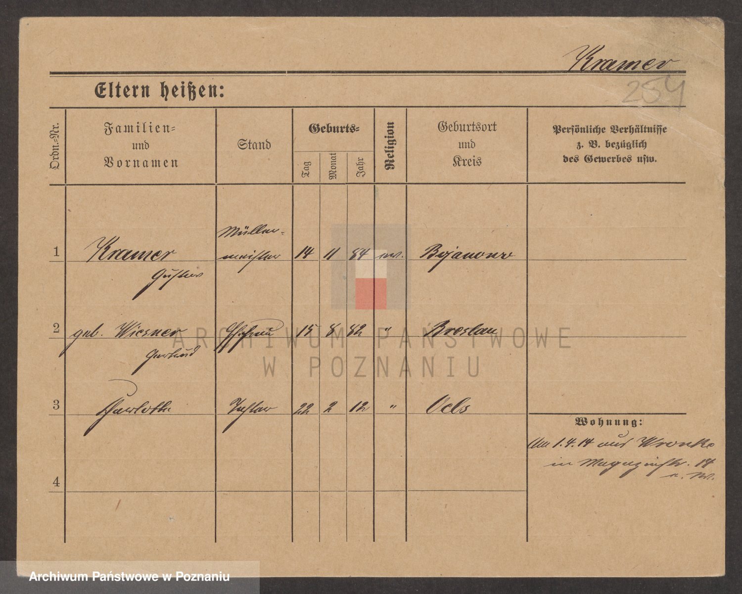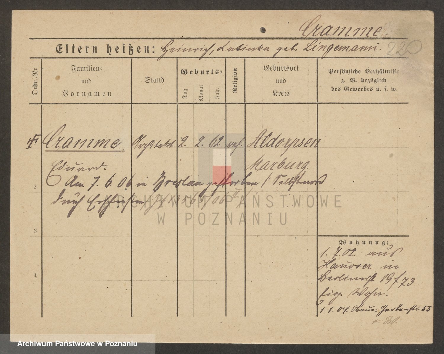 Podgląd karty osobowej dostępny jest po kliknięciu na nazwisko lub ikonkę karty. Można dokonywać powiększenia (ikony na górze) lub przechodzić między kolejnymi skanami (strzałki po bokach).