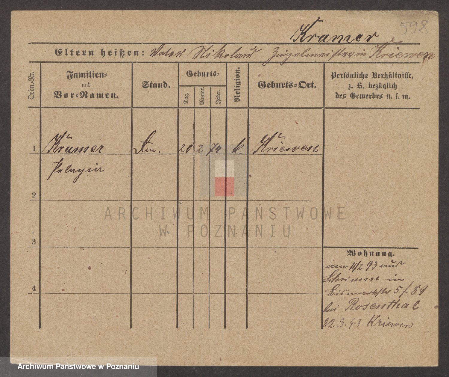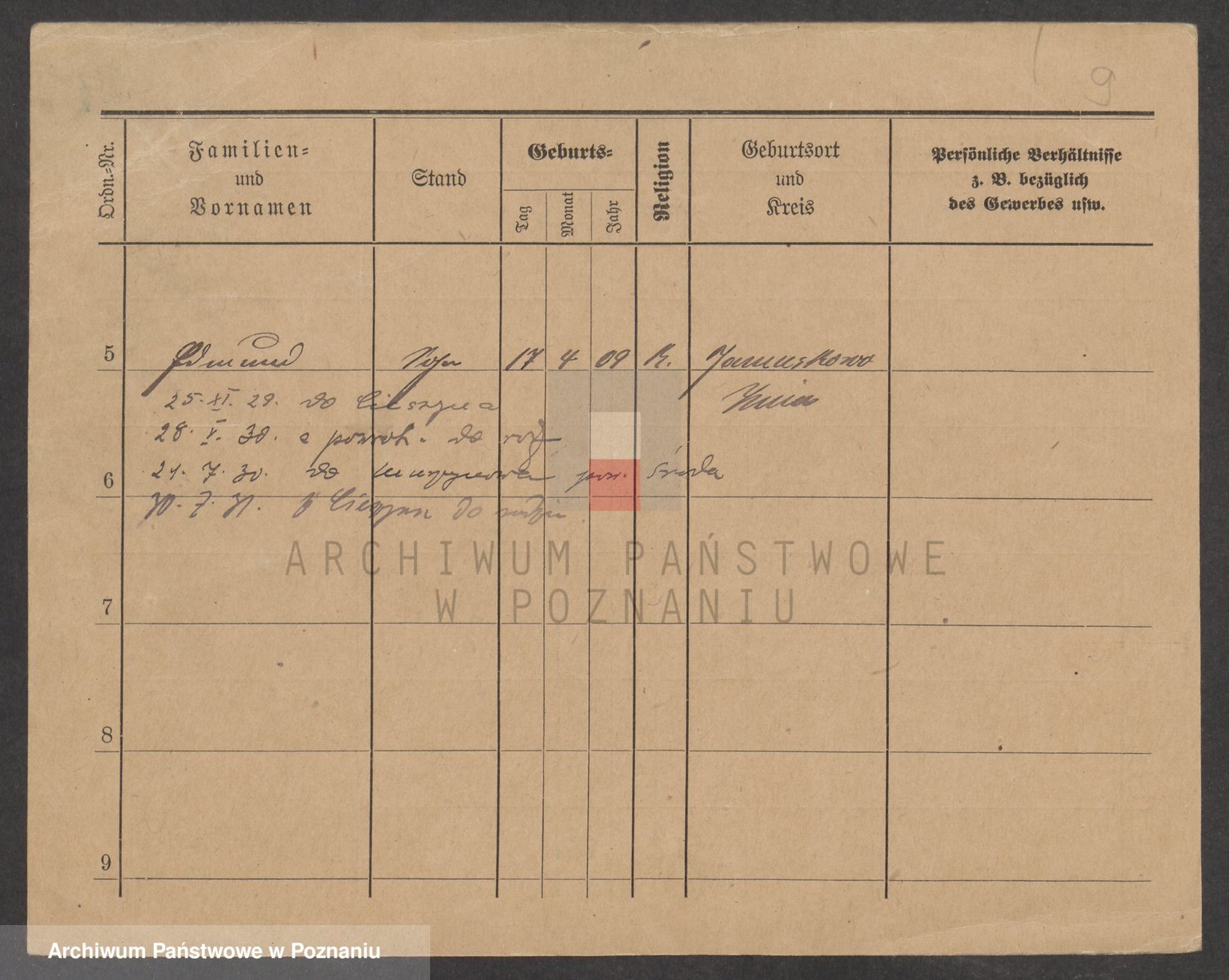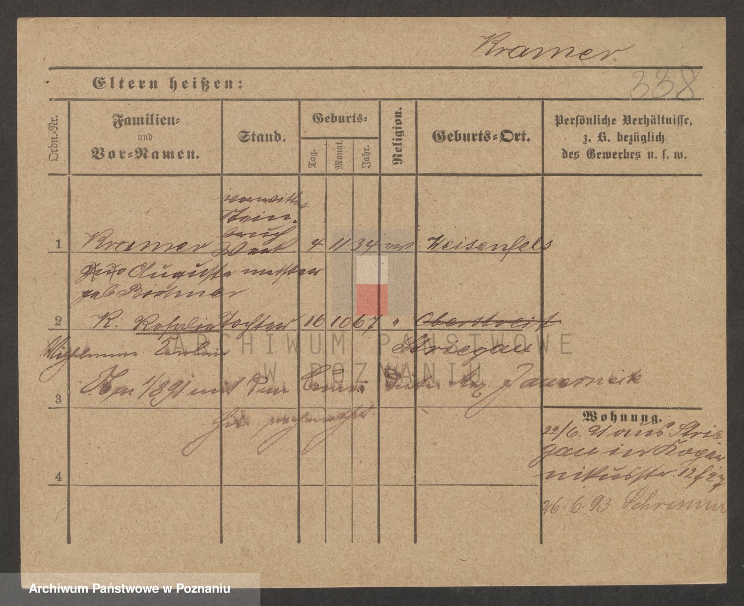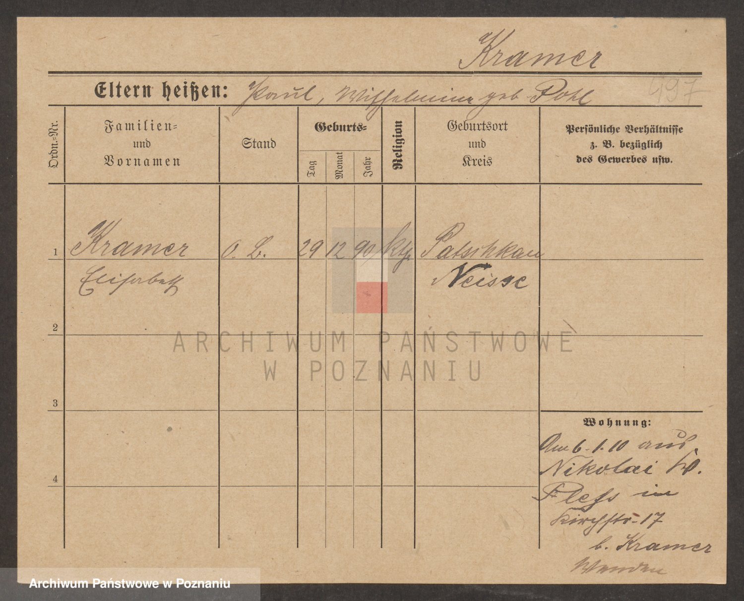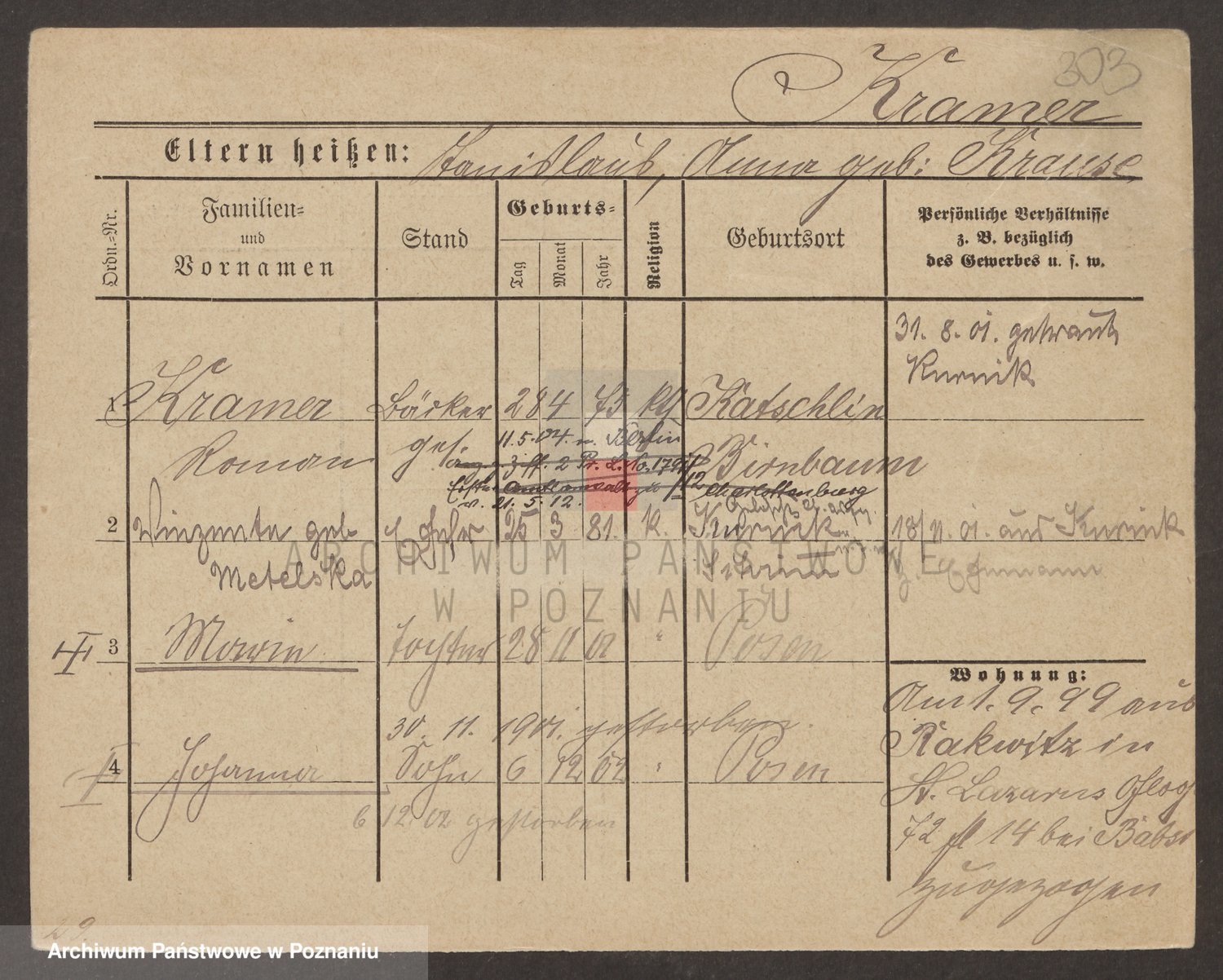 Podgląd karty osobowej dostępny jest po kliknięciu na nazwisko lub ikonkę karty. Można dokonywać powiększenia (ikony na górze) lub przechodzić między kolejnymi skanami (strzałki po bokach).