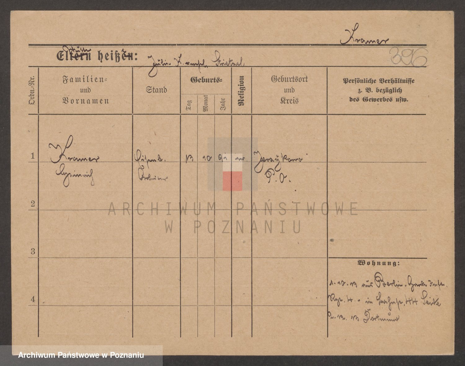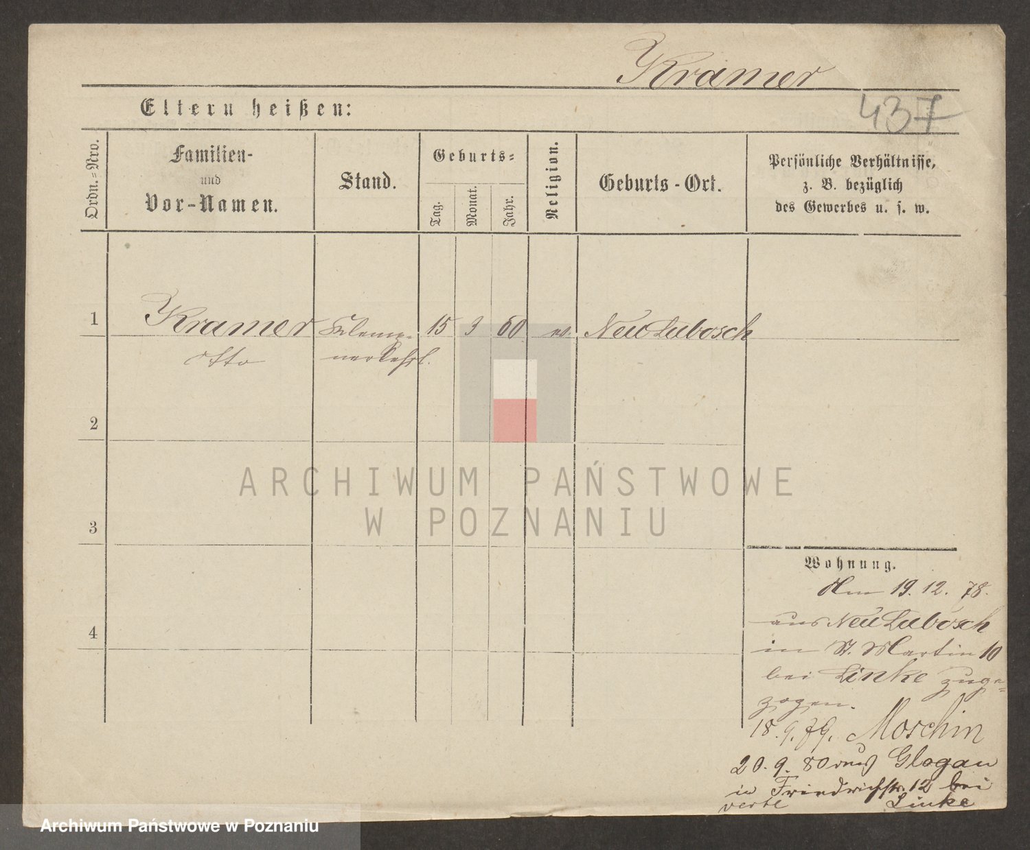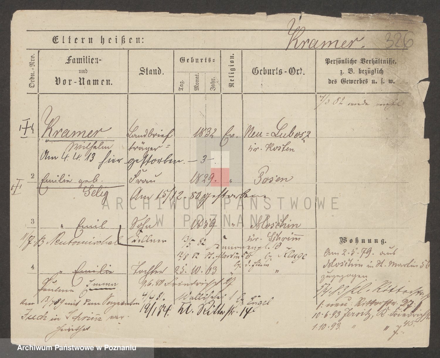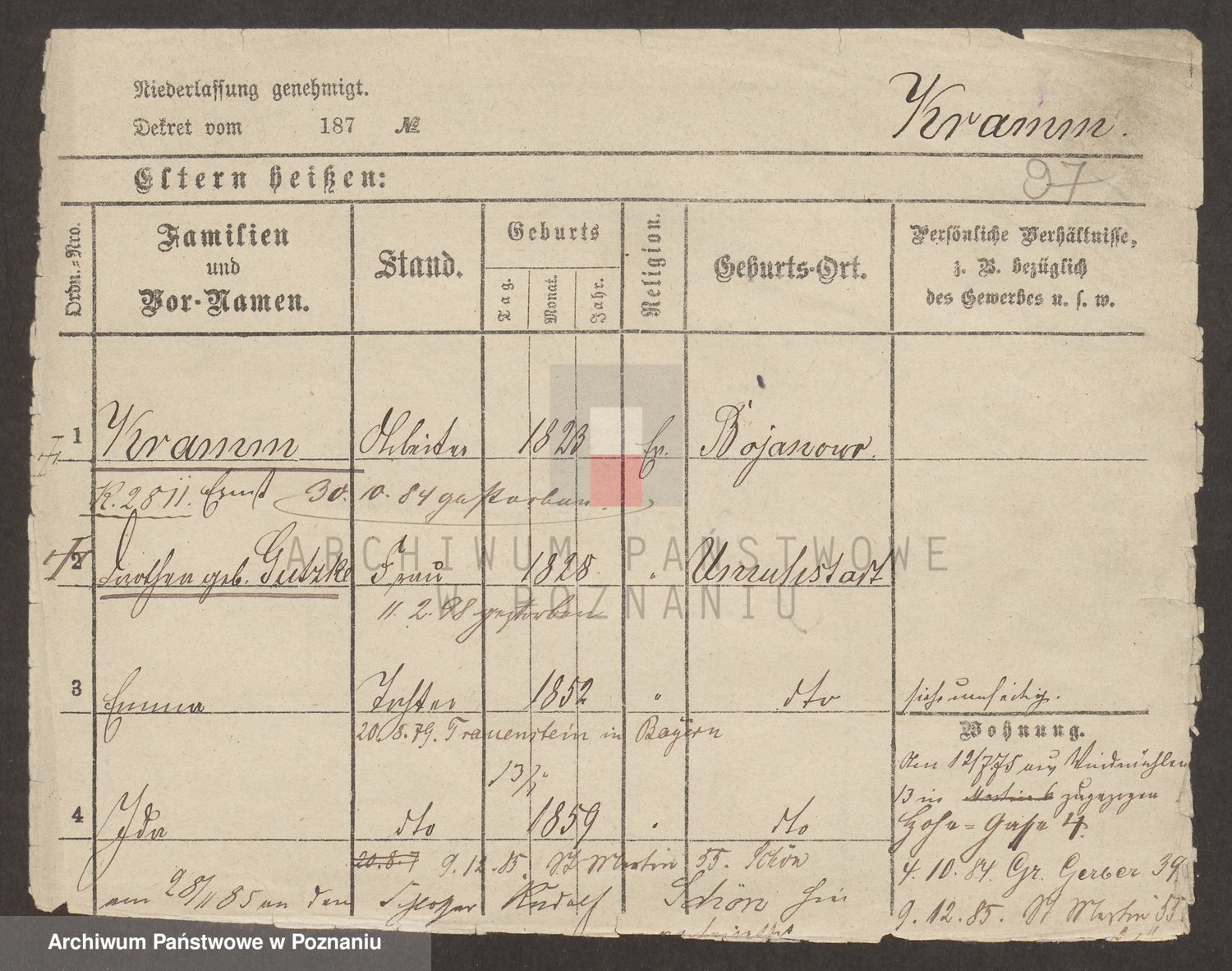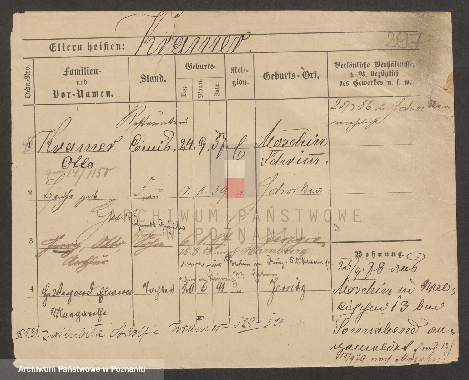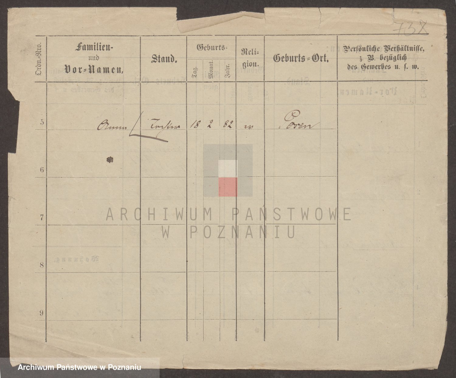 Podgląd karty osobowej dostępny jest po kliknięciu na nazwisko lub ikonkę karty. Można dokonywać powiększenia (ikony na górze) lub przechodzić między kolejnymi skanami (strzałki po bokach).