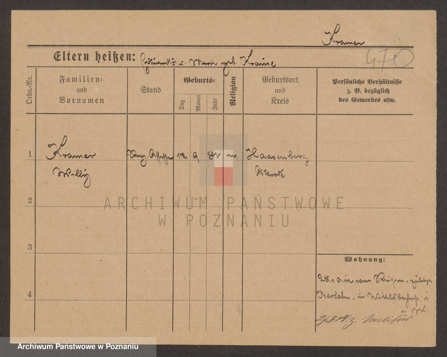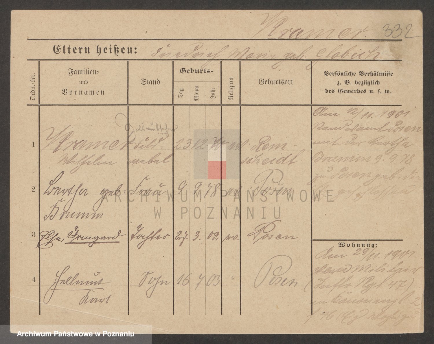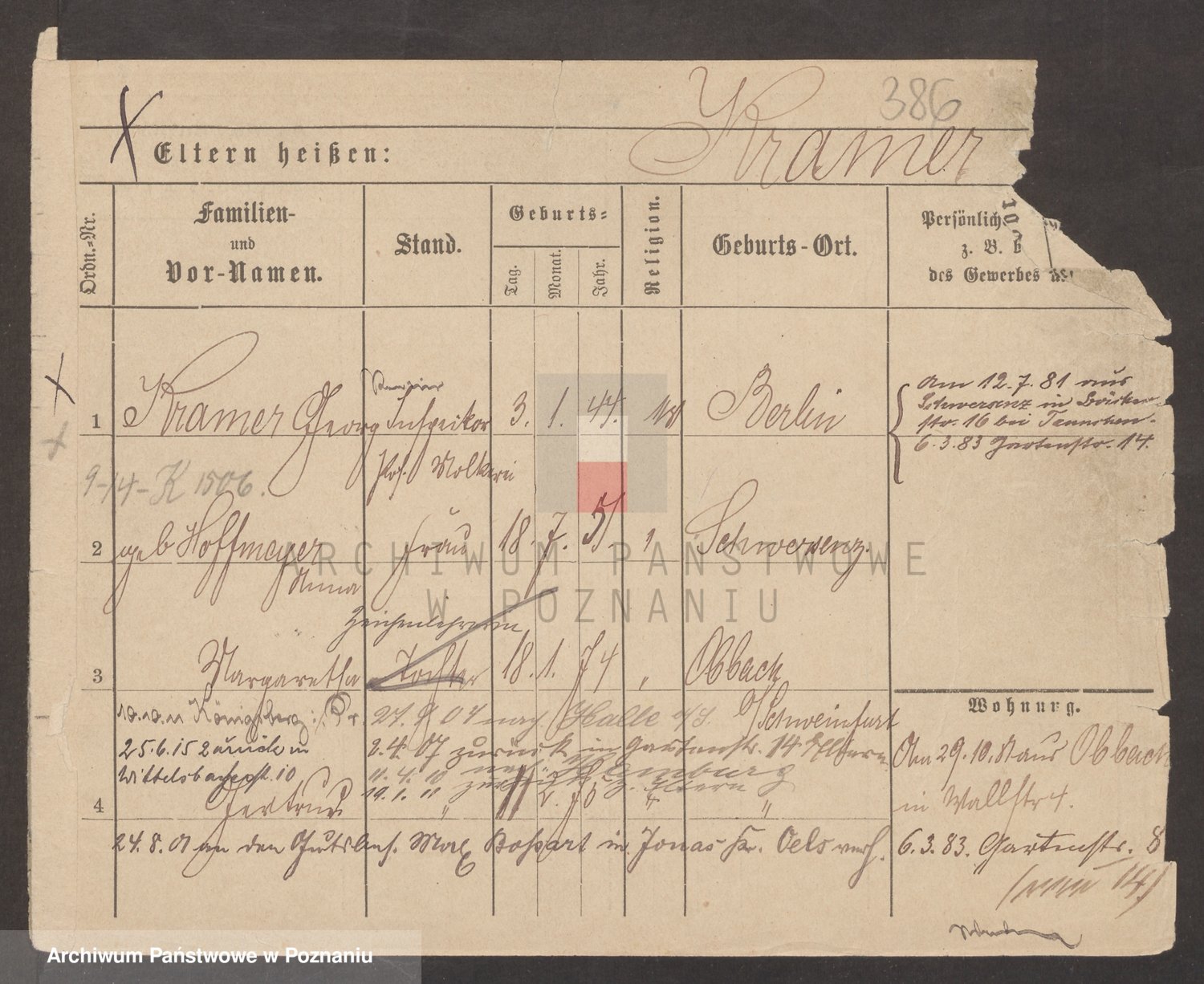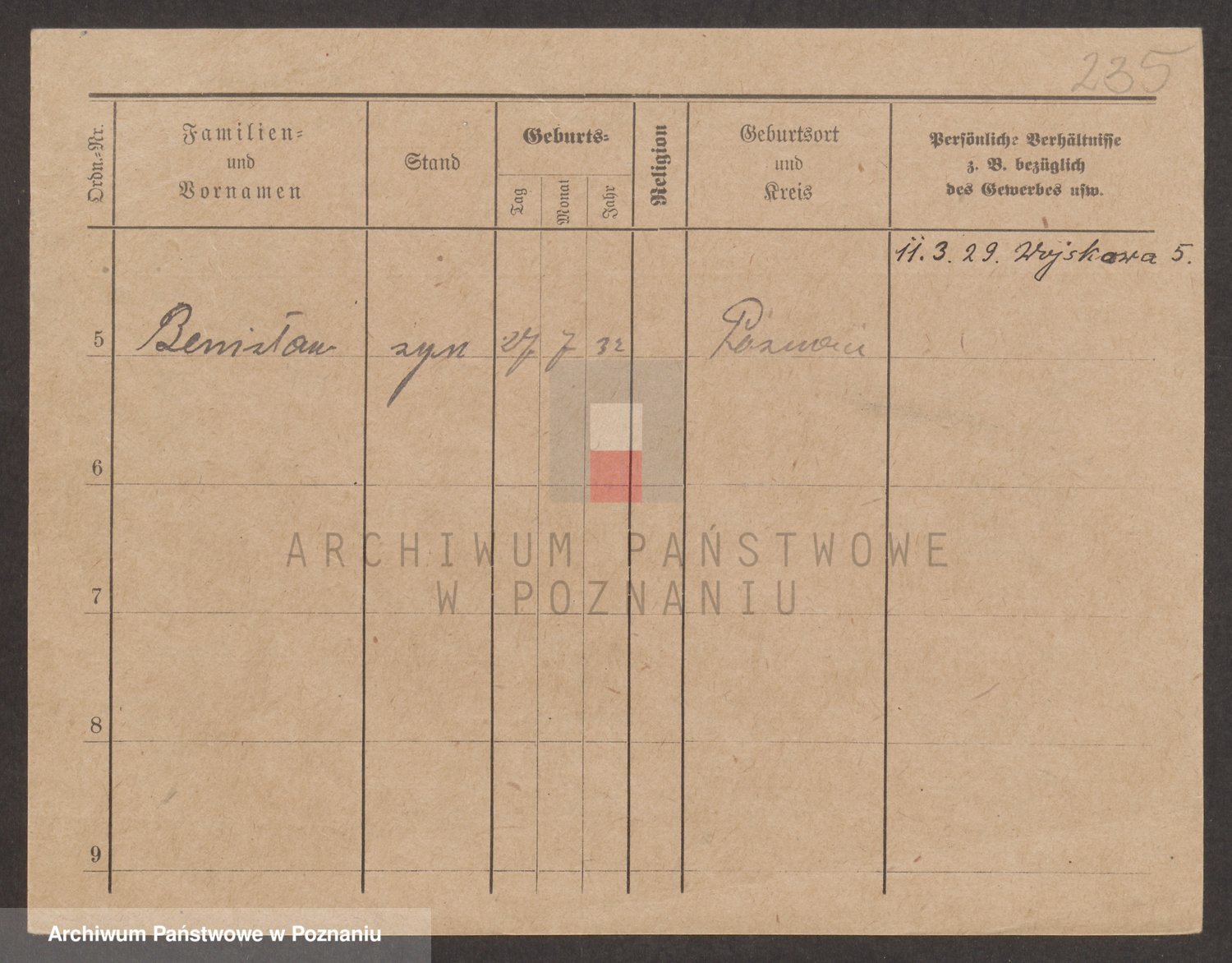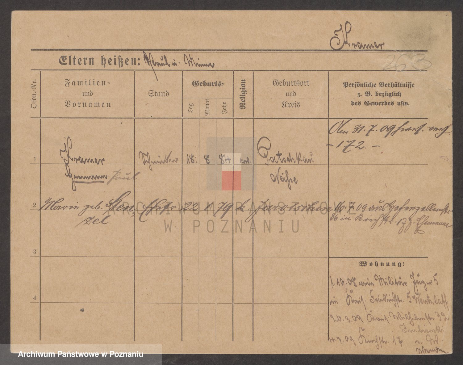 Podgląd karty osobowej dostępny jest po kliknięciu na nazwisko lub ikonkę karty. Można dokonywać powiększenia (ikony na górze) lub przechodzić między kolejnymi skanami (strzałki po bokach).