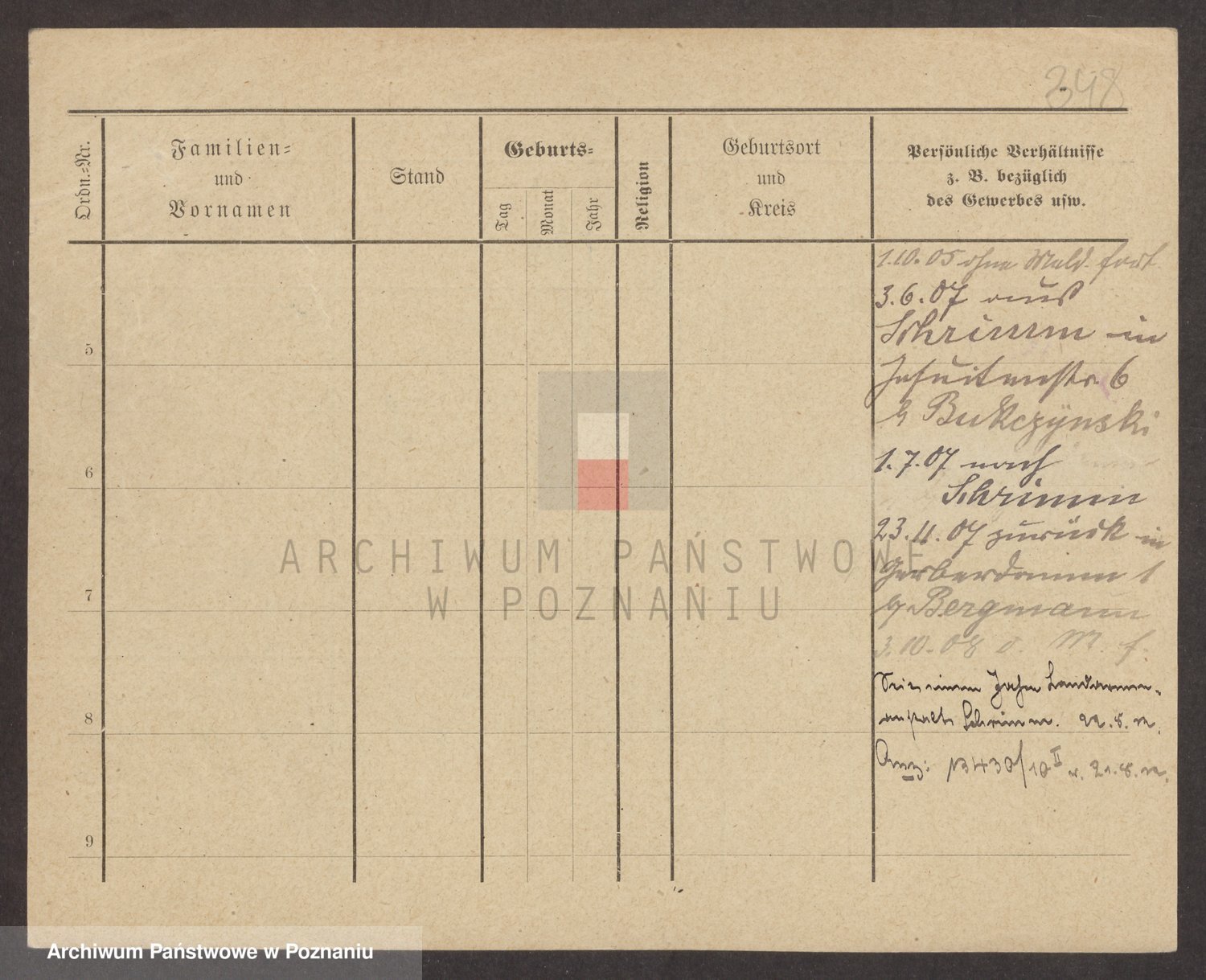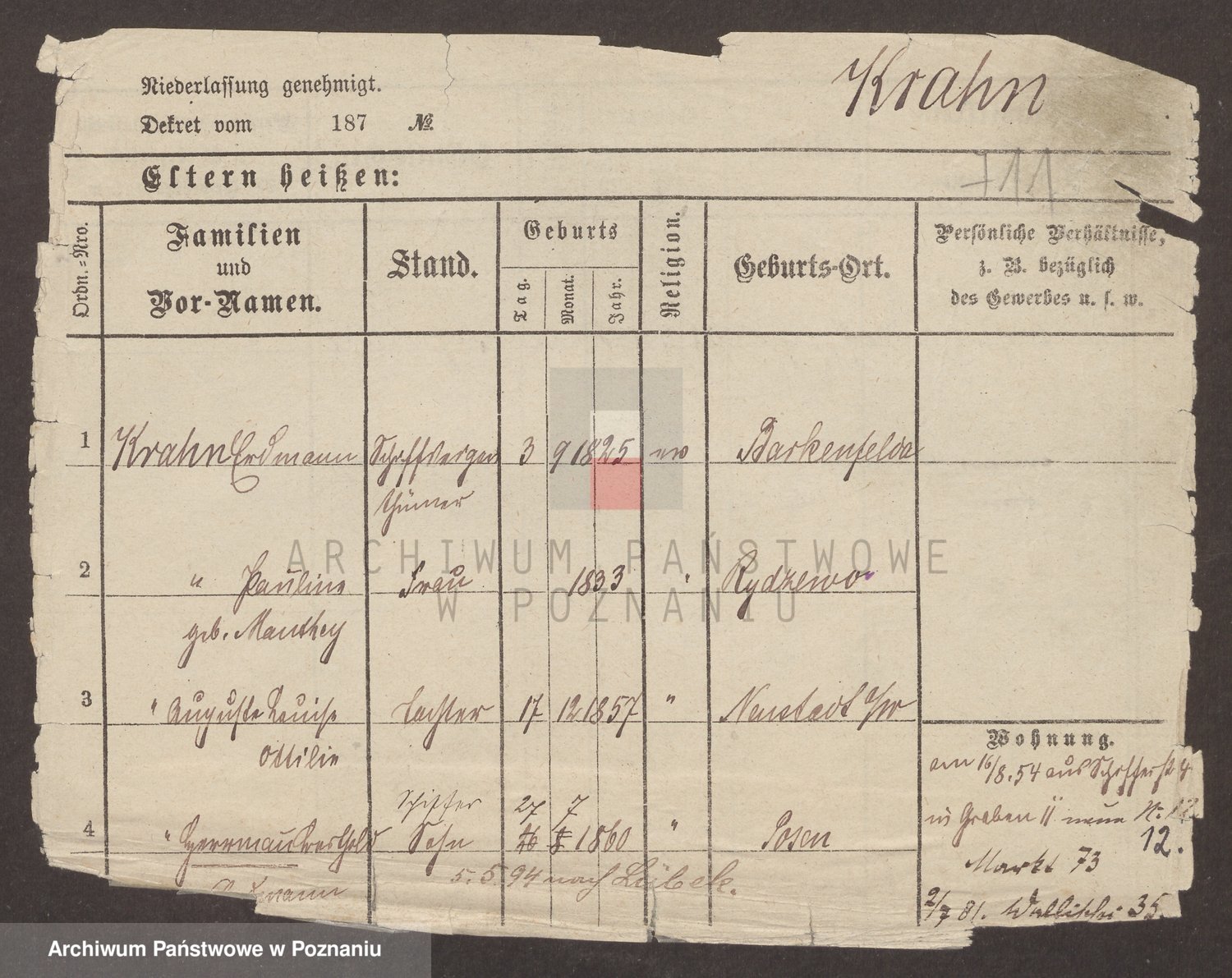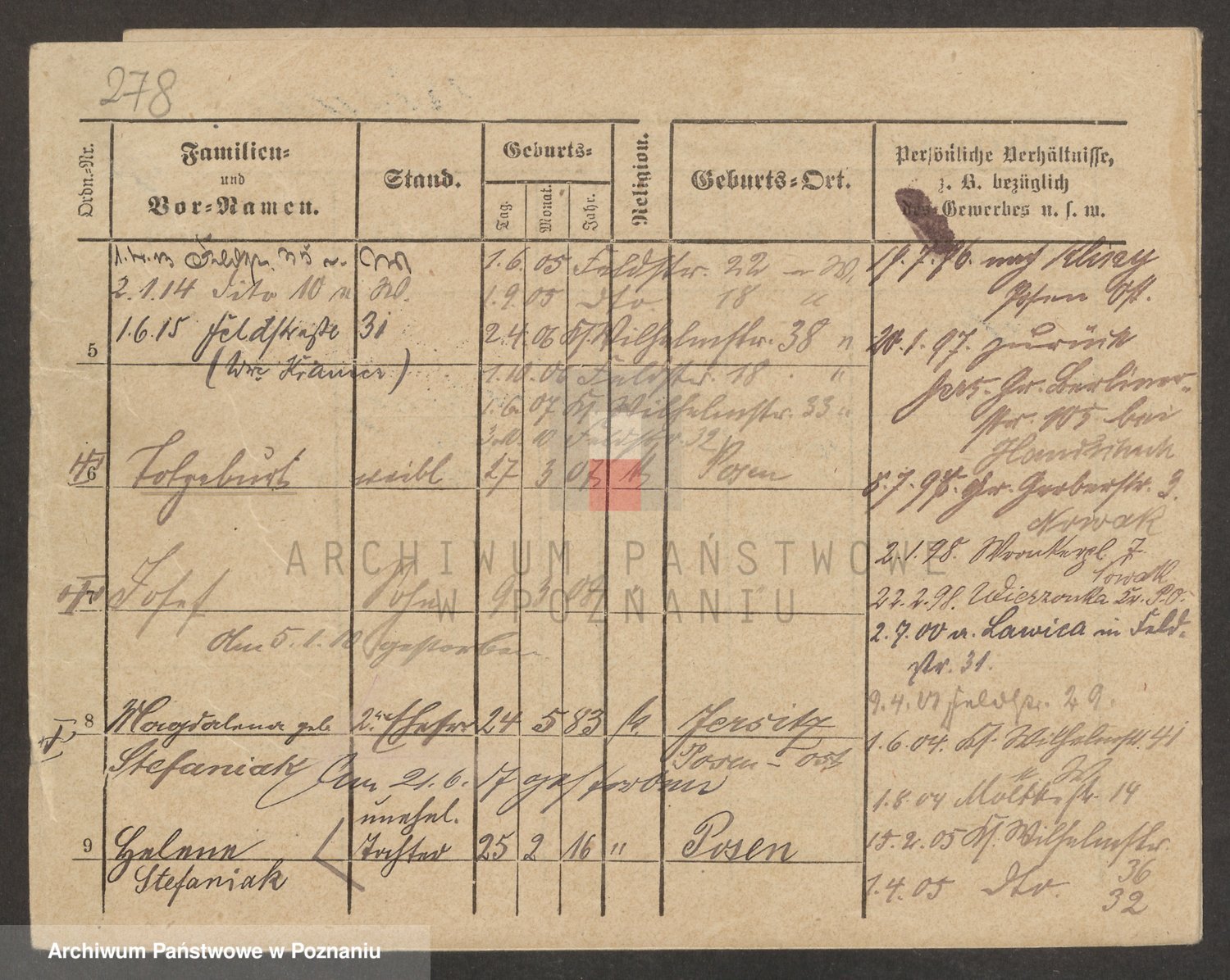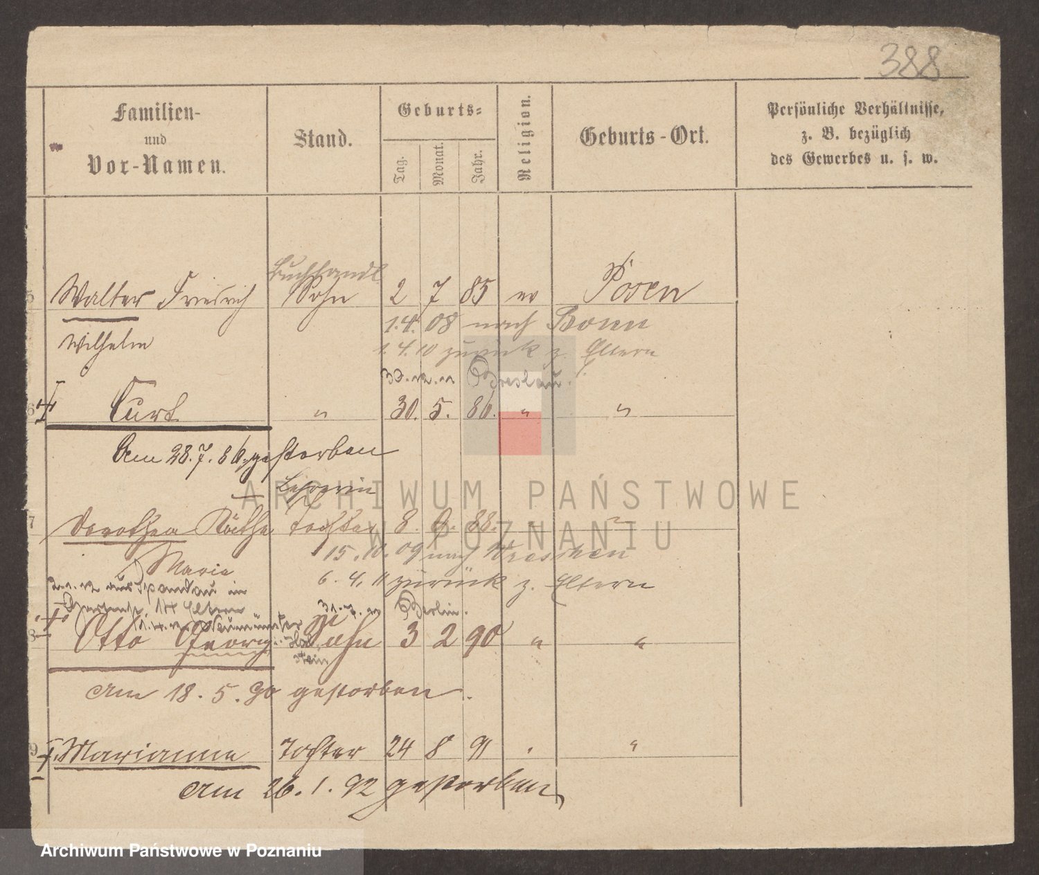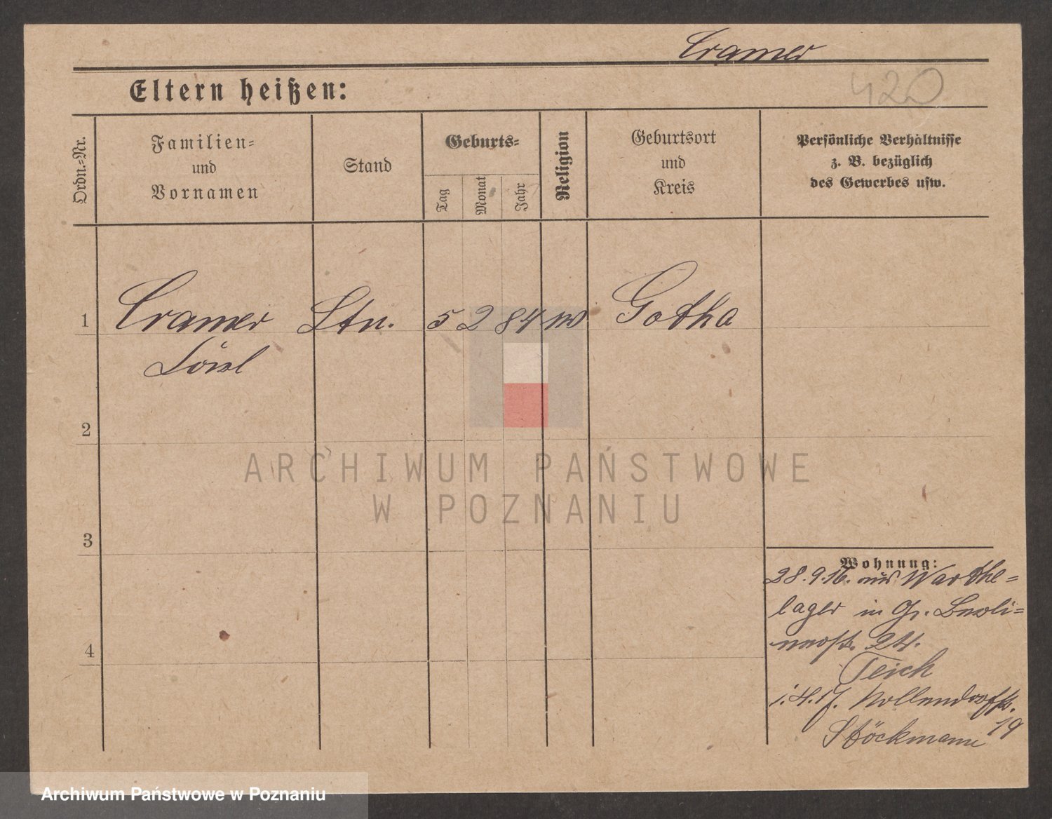 Podgląd karty osobowej dostępny jest po kliknięciu na nazwisko lub ikonkę karty. Można dokonywać powiększenia (ikony na górze) lub przechodzić między kolejnymi skanami (strzałki po bokach).