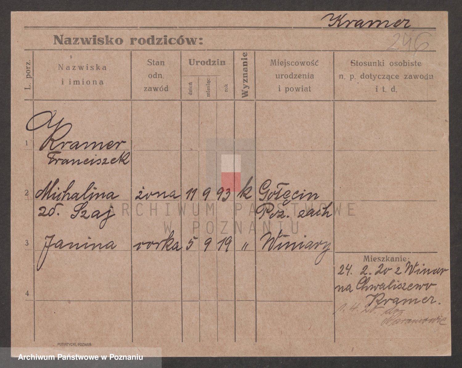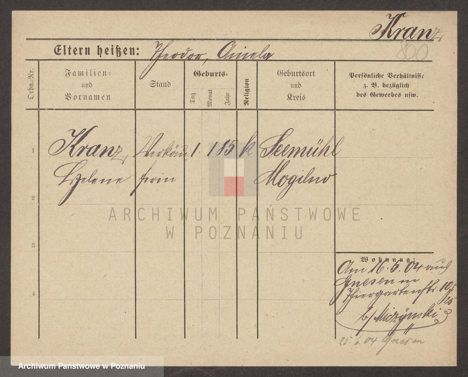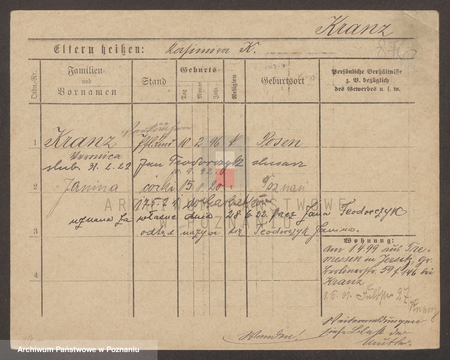 Kranz Teodorczyk, Janina