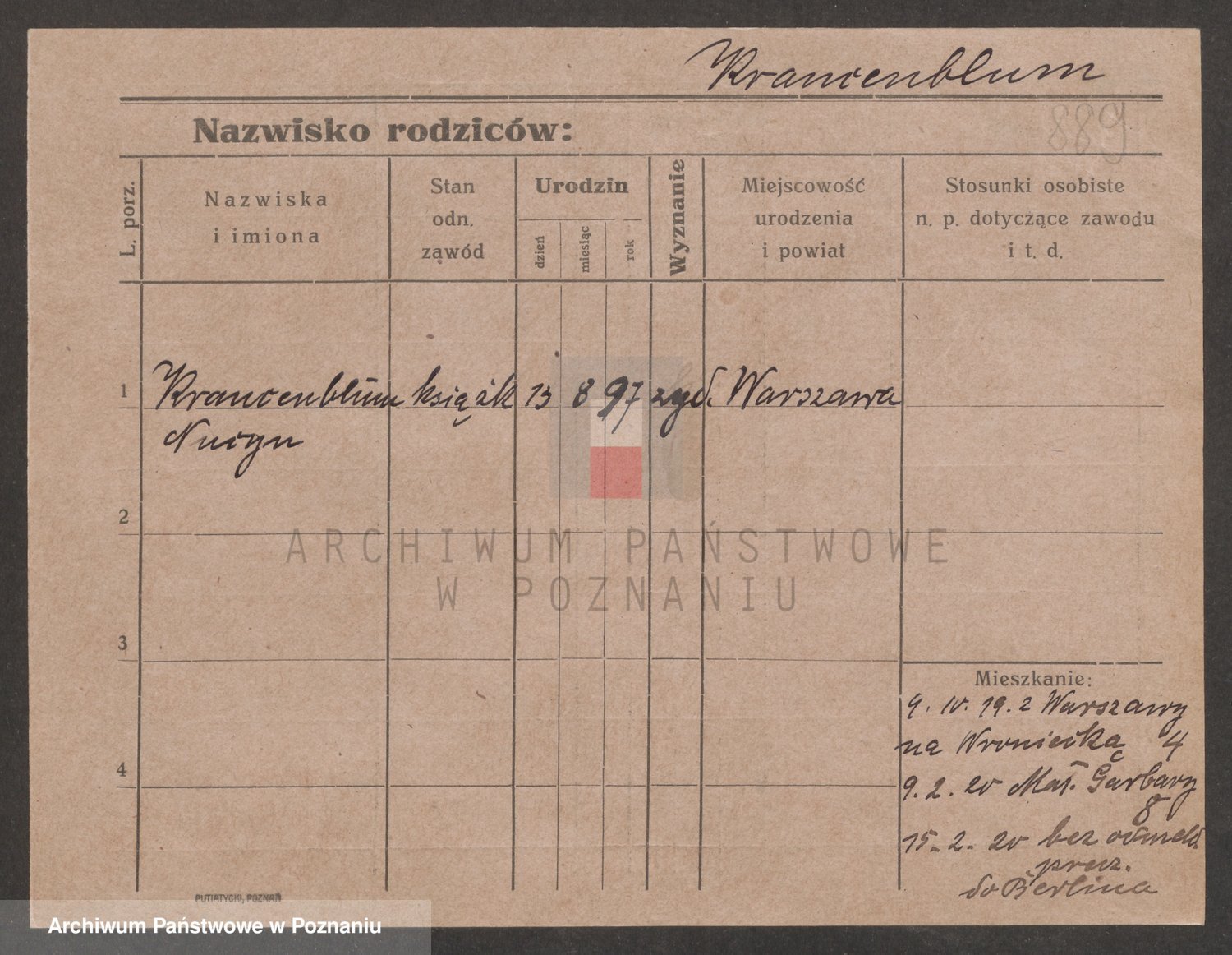 karta: 889