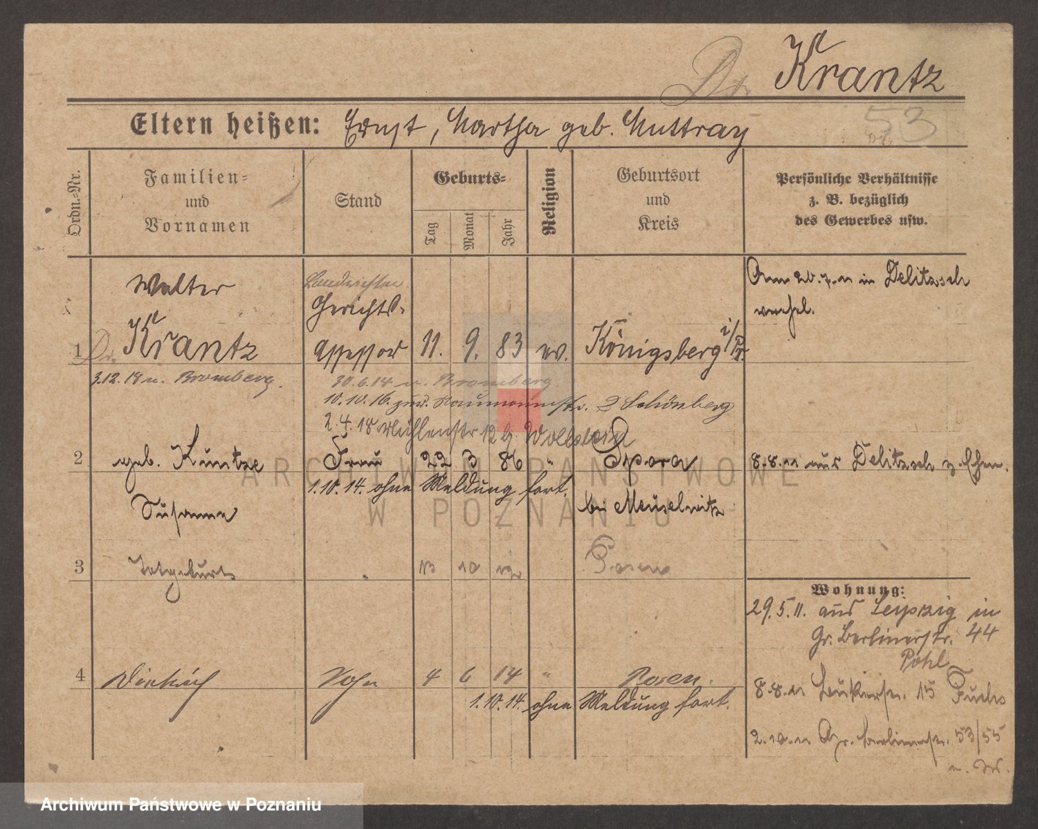 Krantz z d. Pfeiffer, Ida Luise Ilse Käthe