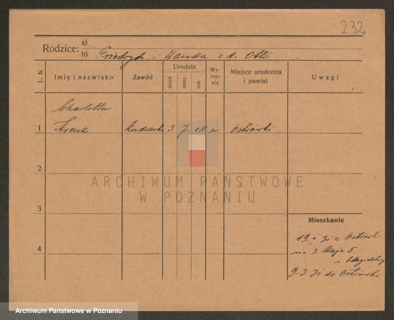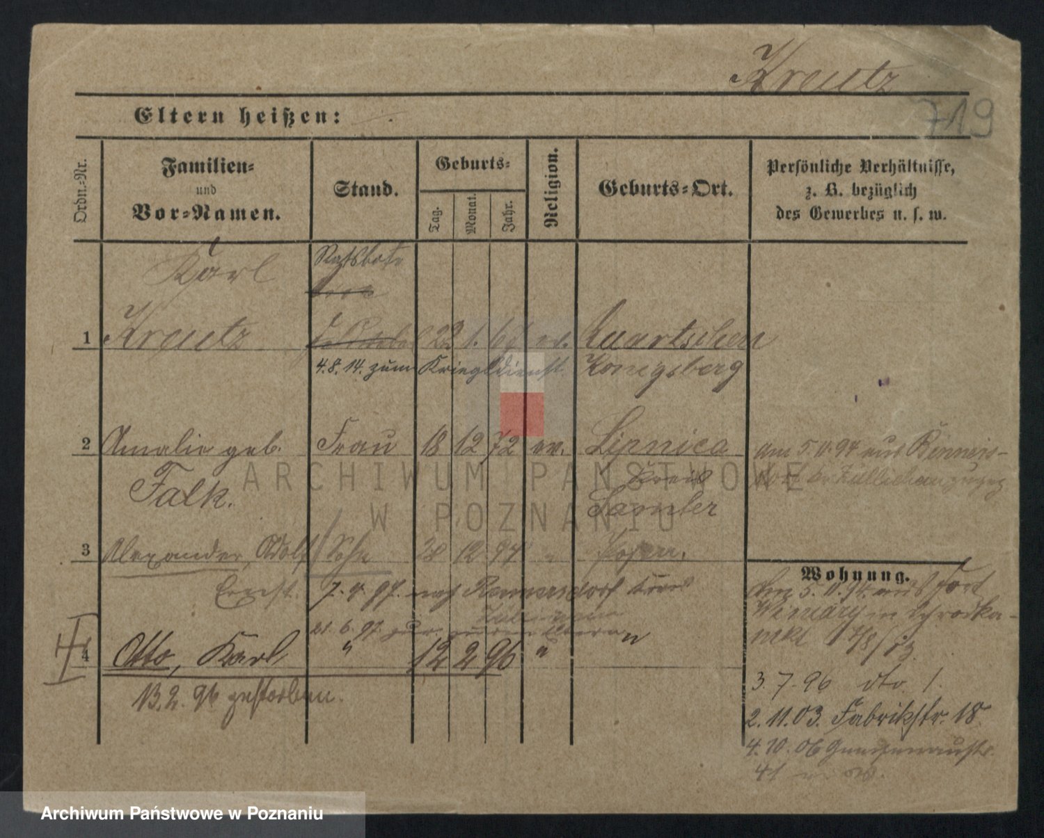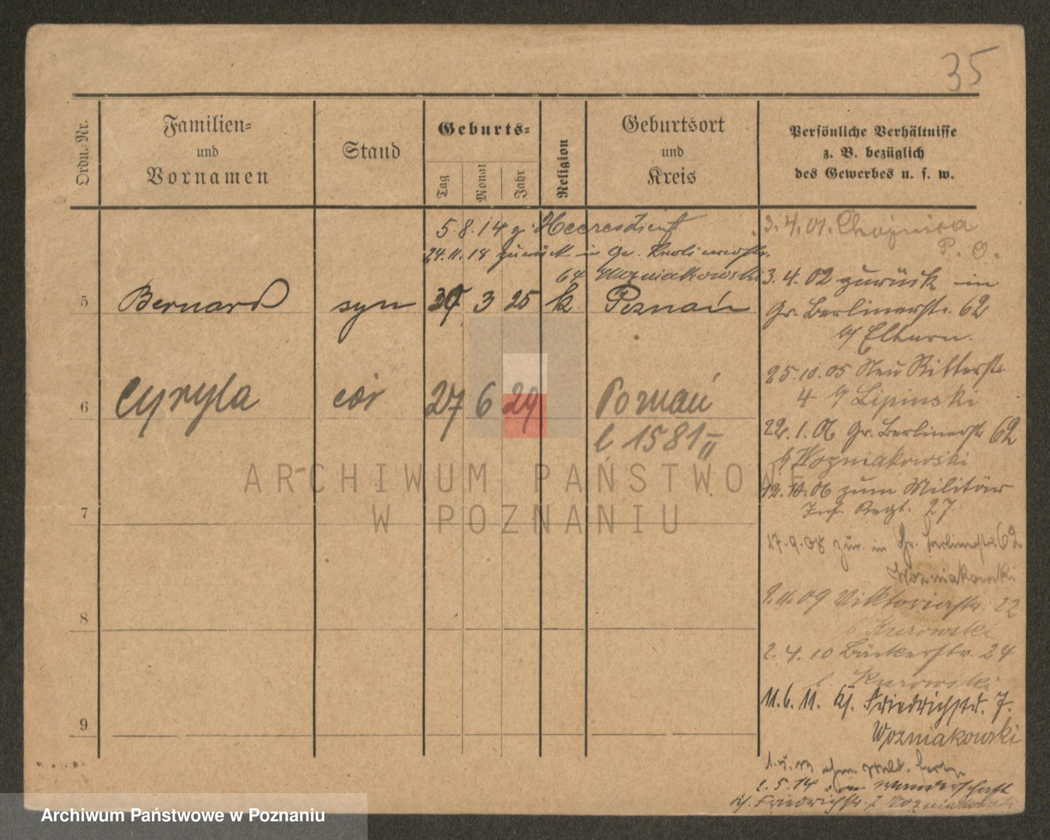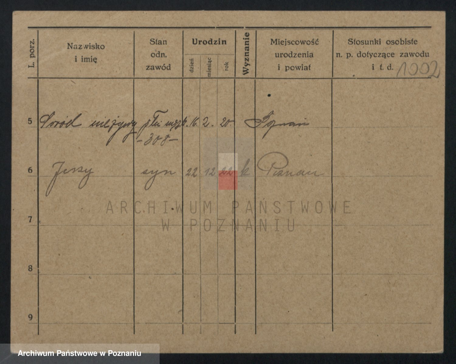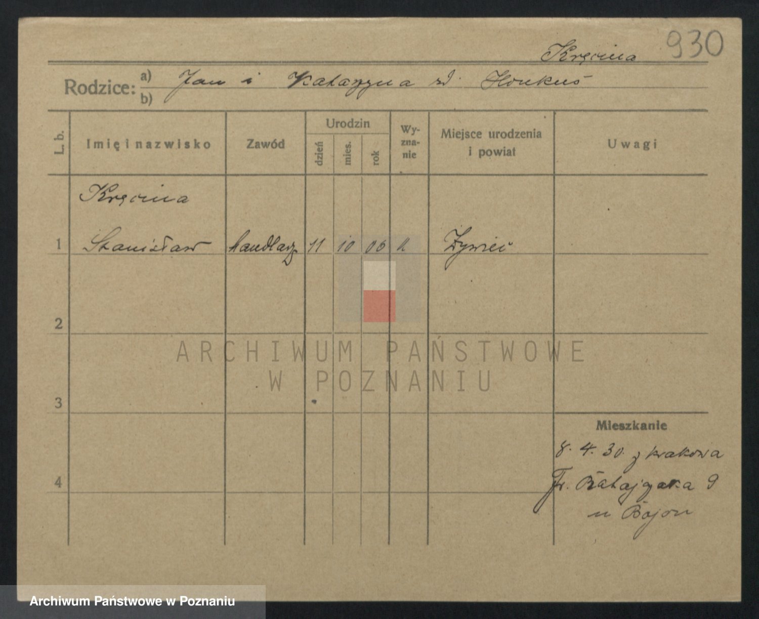 Podgląd karty osobowej dostępny jest po kliknięciu na nazwisko lub ikonkę karty. Można dokonywać powiększenia (ikony na górze) lub przechodzić między kolejnymi skanami (strzałki po bokach).