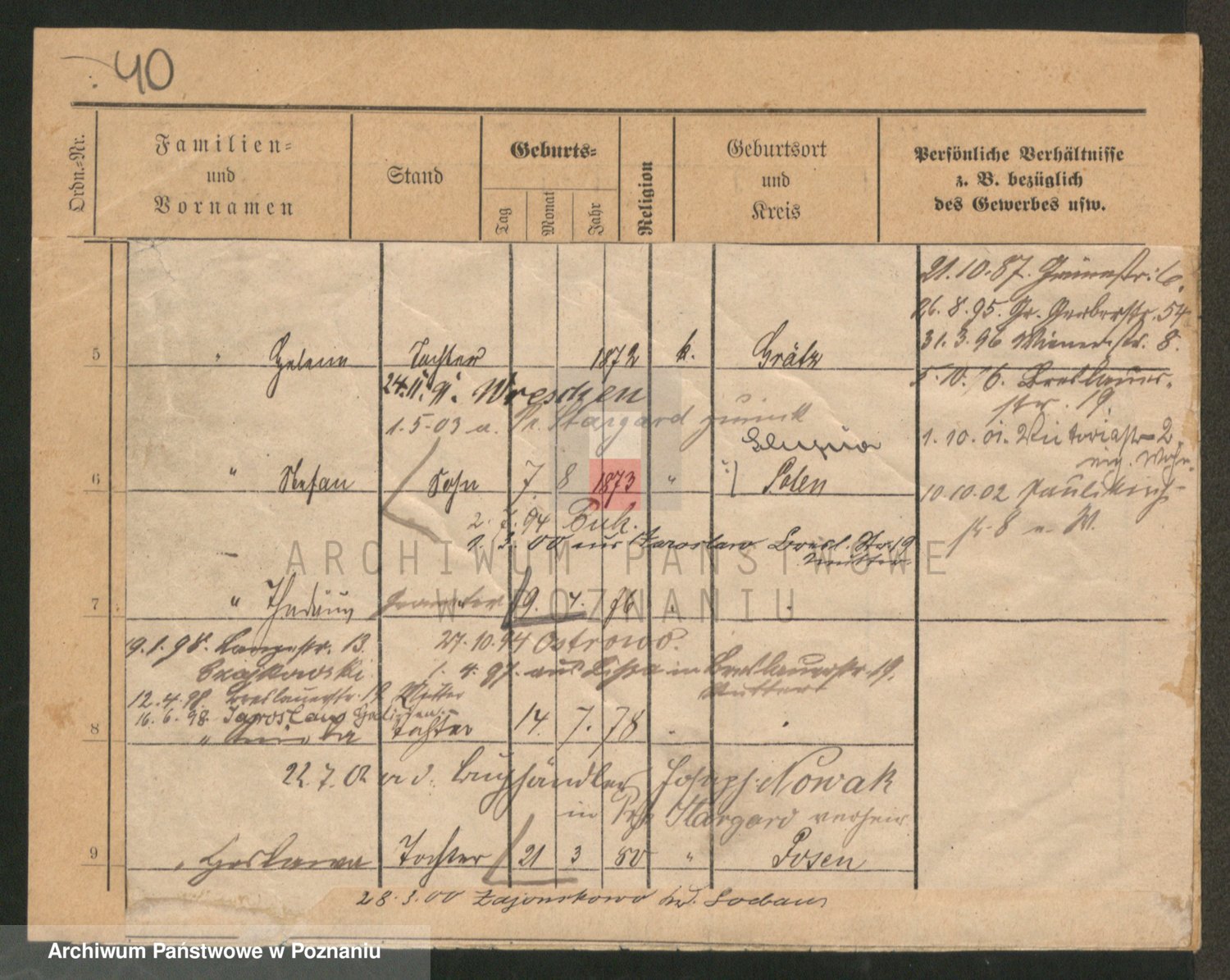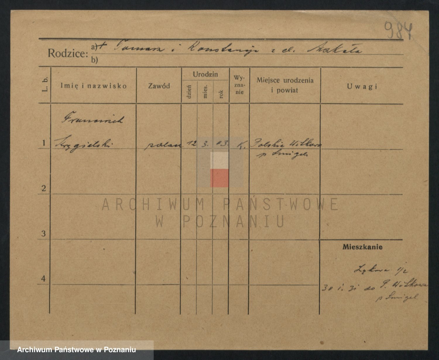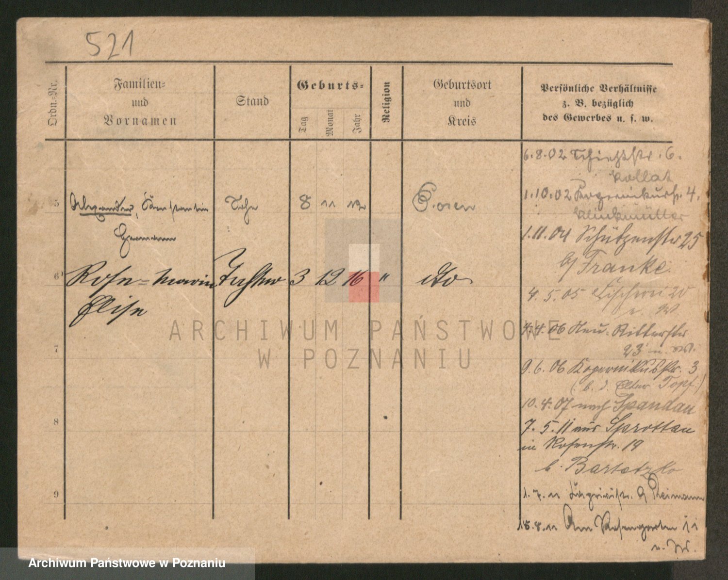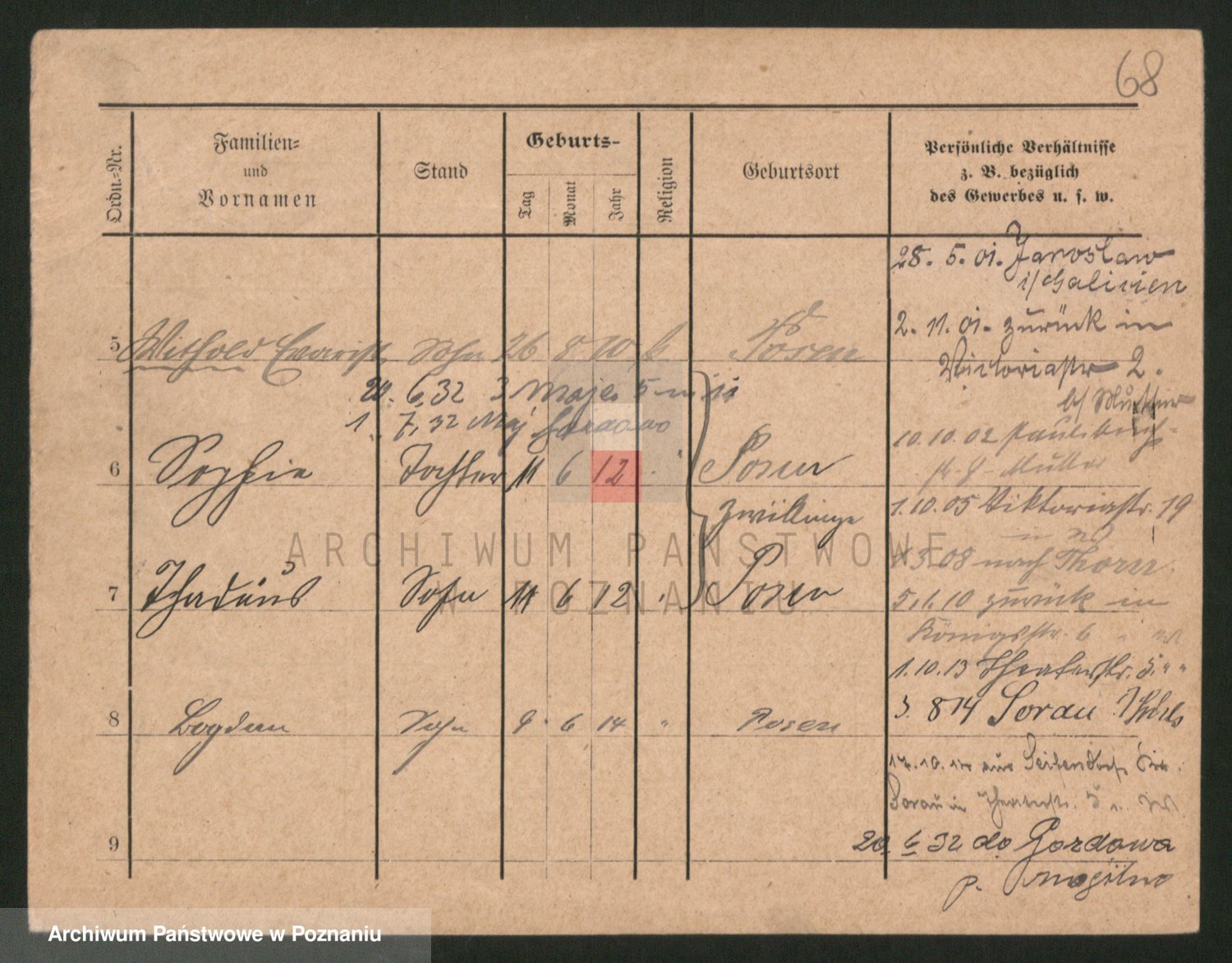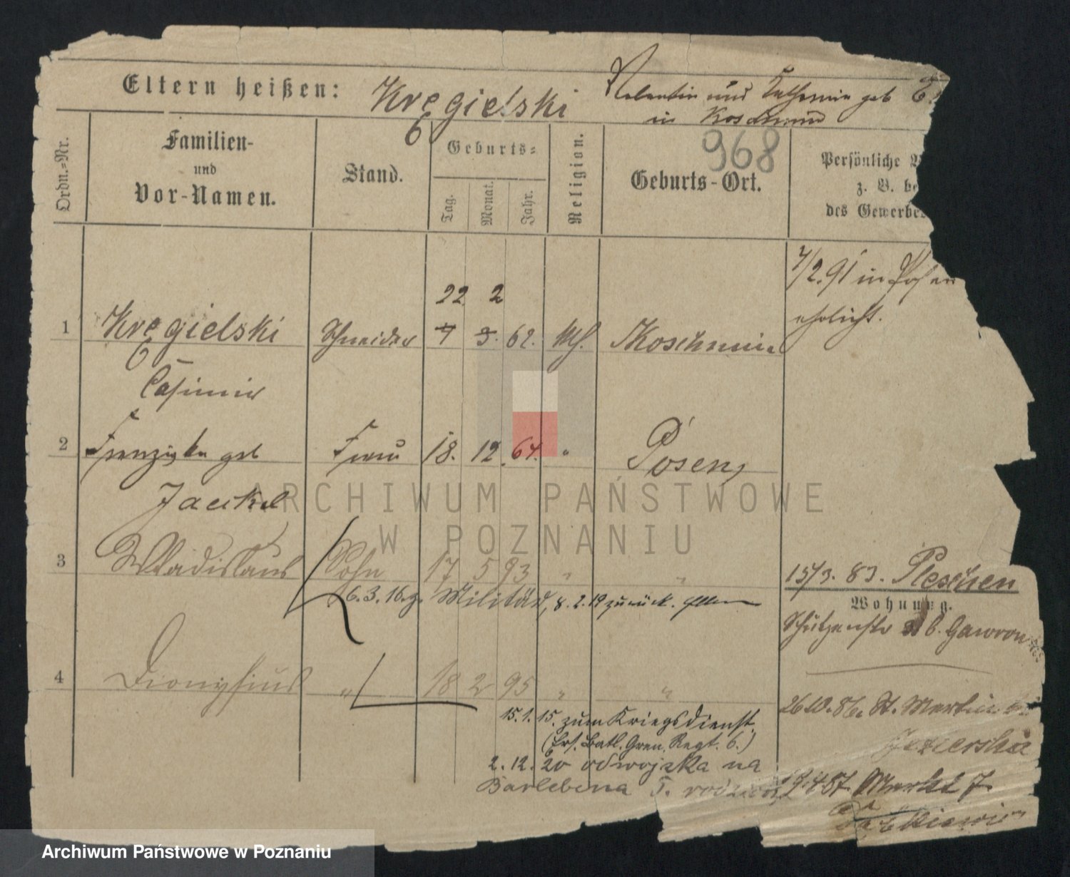 Podgląd karty osobowej dostępny jest po kliknięciu na nazwisko lub ikonkę karty. Można dokonywać powiększenia (ikony na górze) lub przechodzić między kolejnymi skanami (strzałki po bokach).