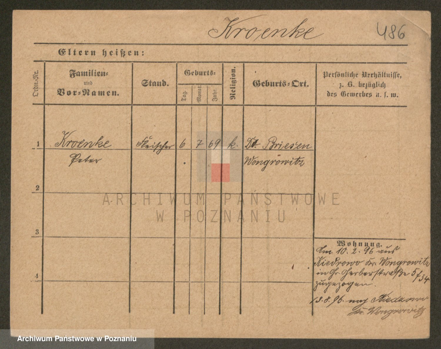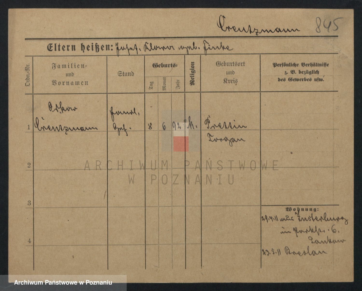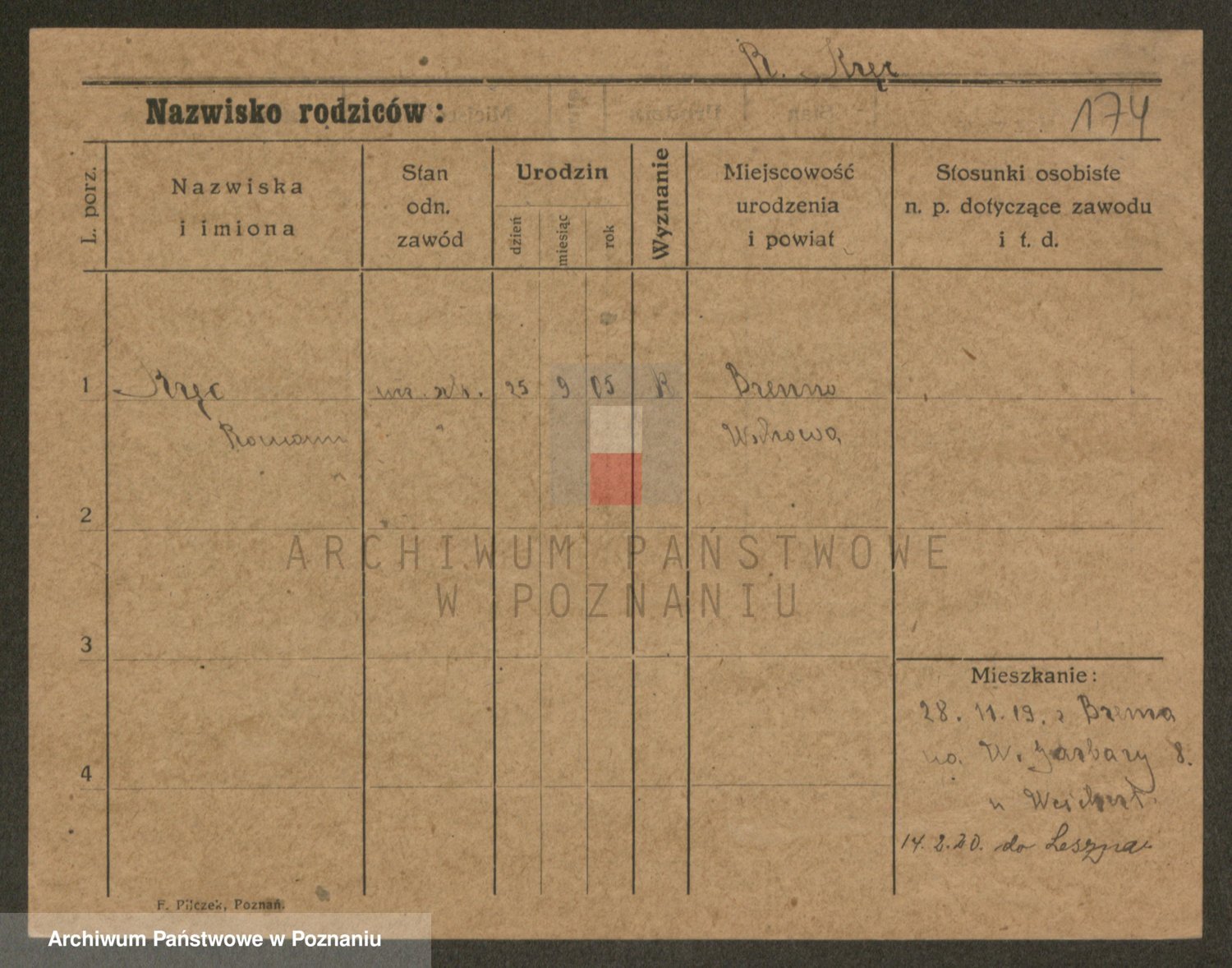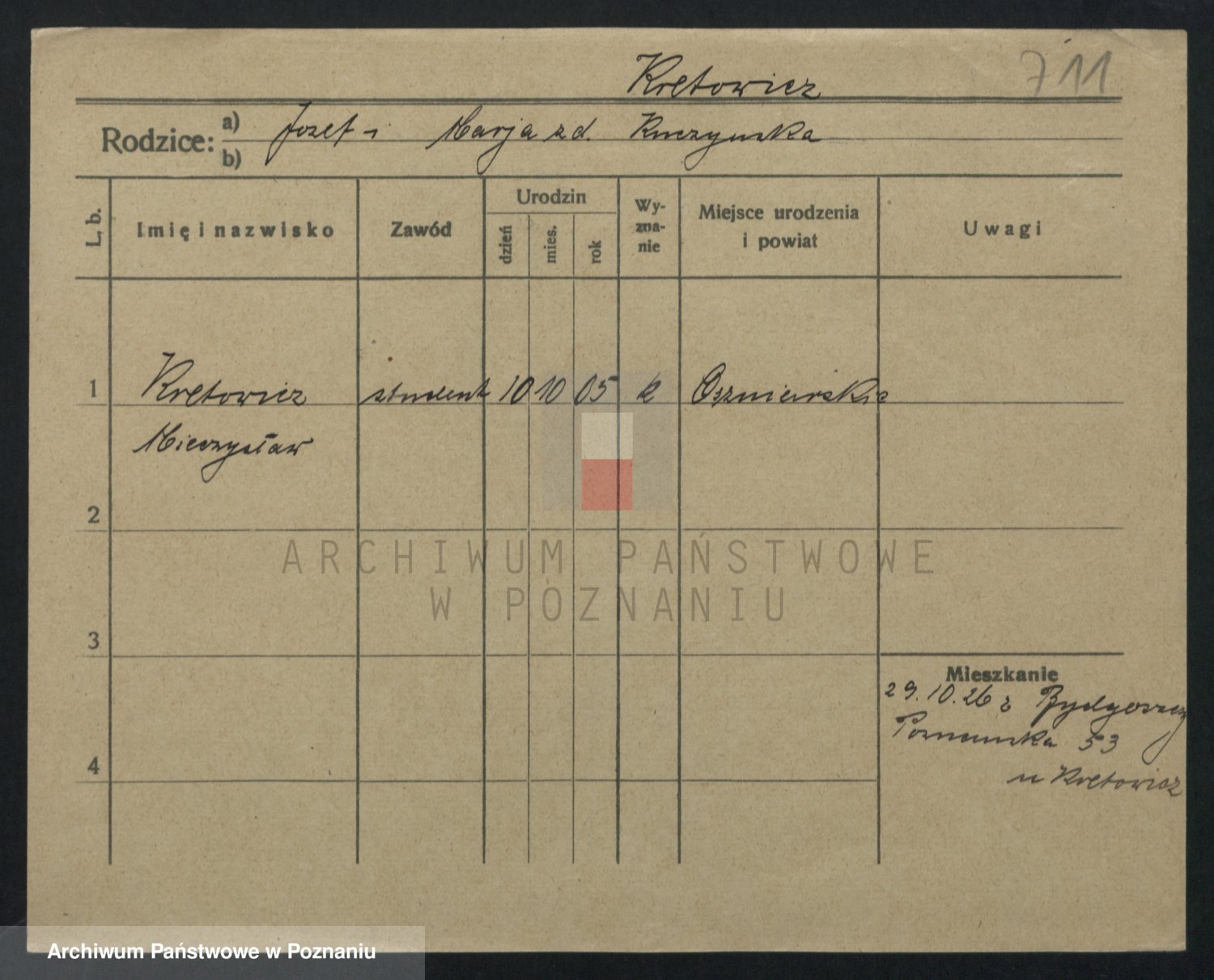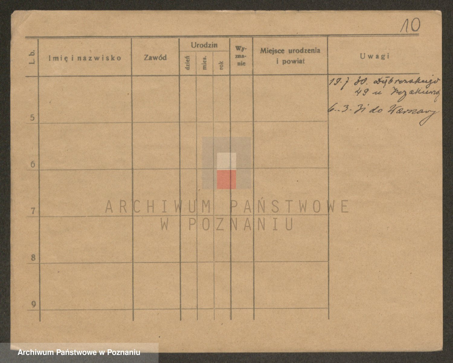 Podgląd karty osobowej dostępny jest po kliknięciu na nazwisko lub ikonkę karty. Można dokonywać powiększenia (ikony na górze) lub przechodzić między kolejnymi skanami (strzałki po bokach).