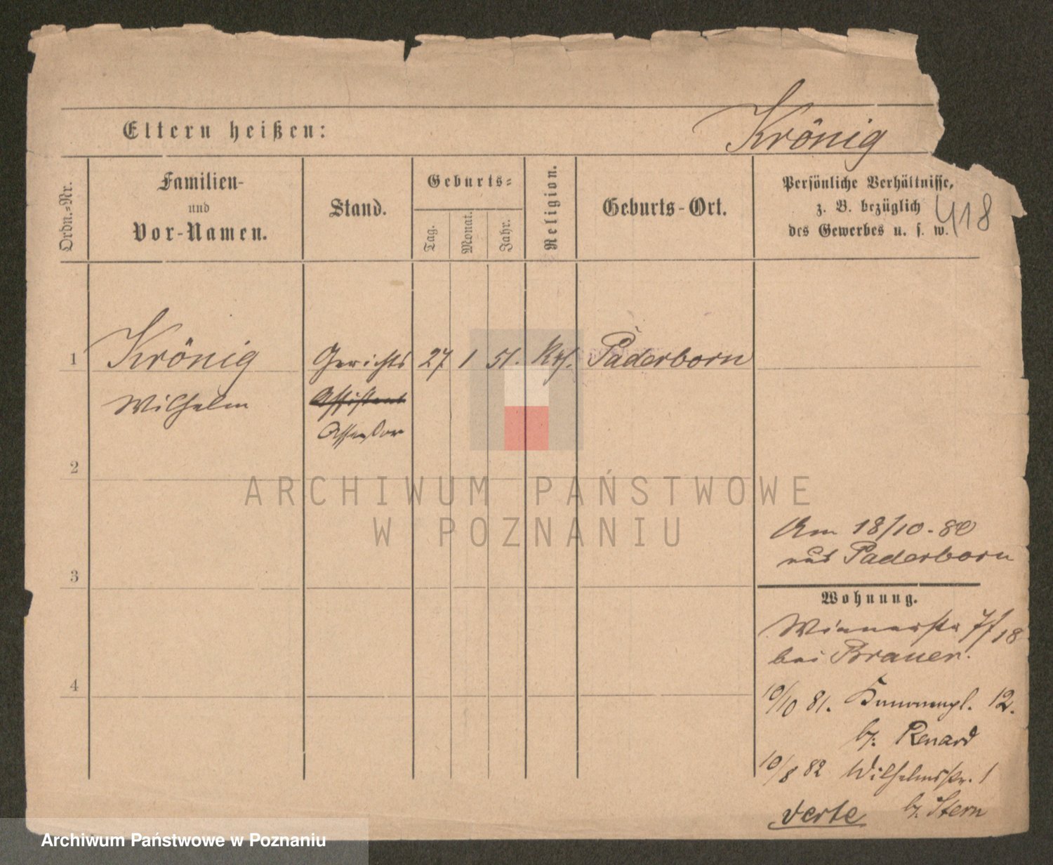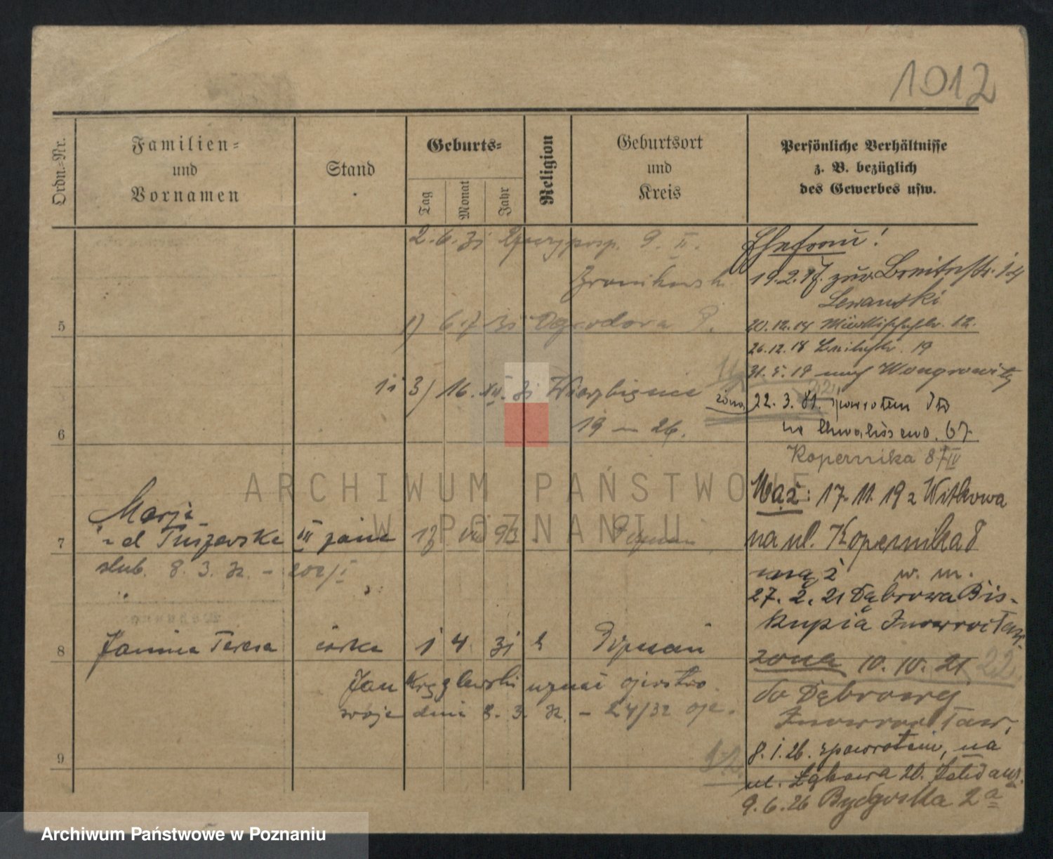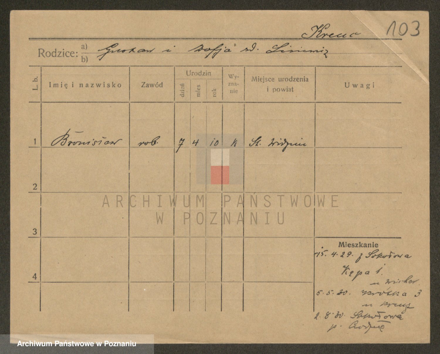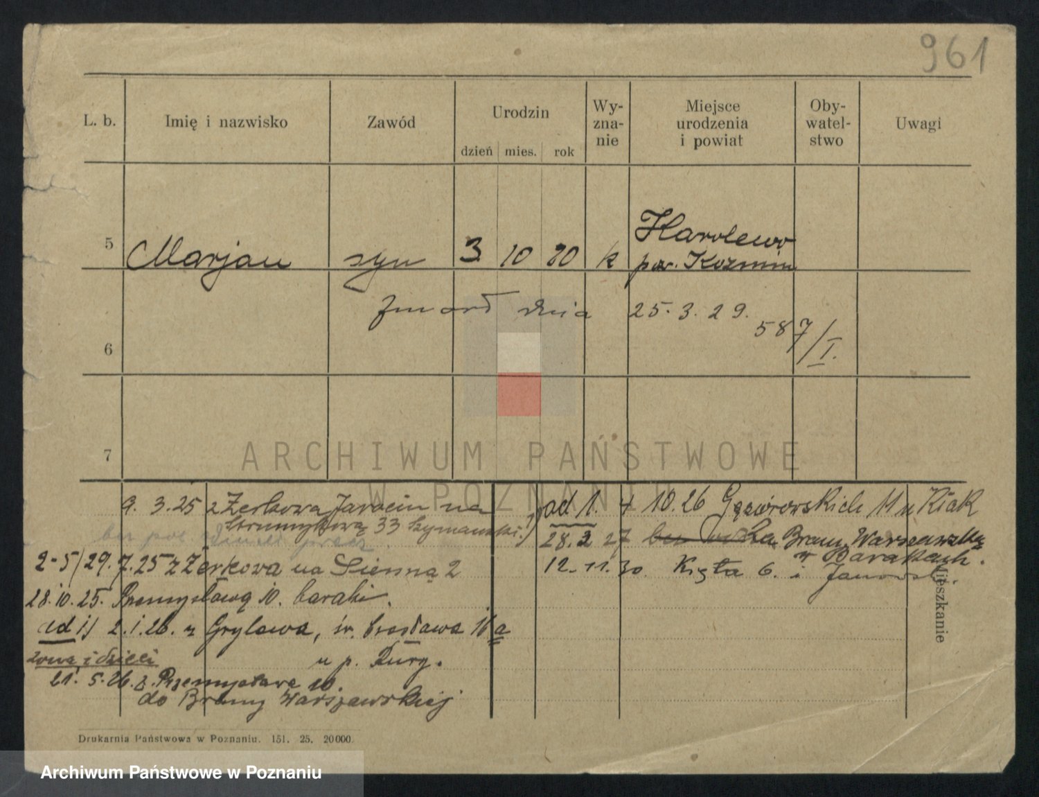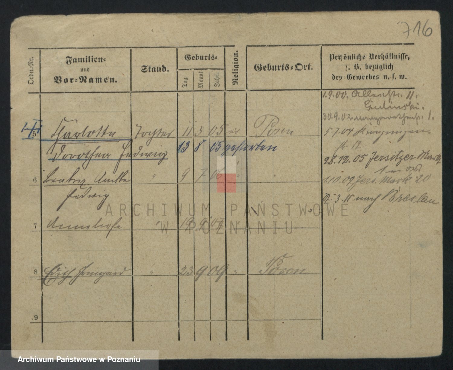Podgląd karty osobowej dostępny jest po kliknięciu na nazwisko lub ikonkę karty. Można dokonywać powiększenia (ikony na górze) lub przechodzić między kolejnymi skanami (strzałki po bokach).