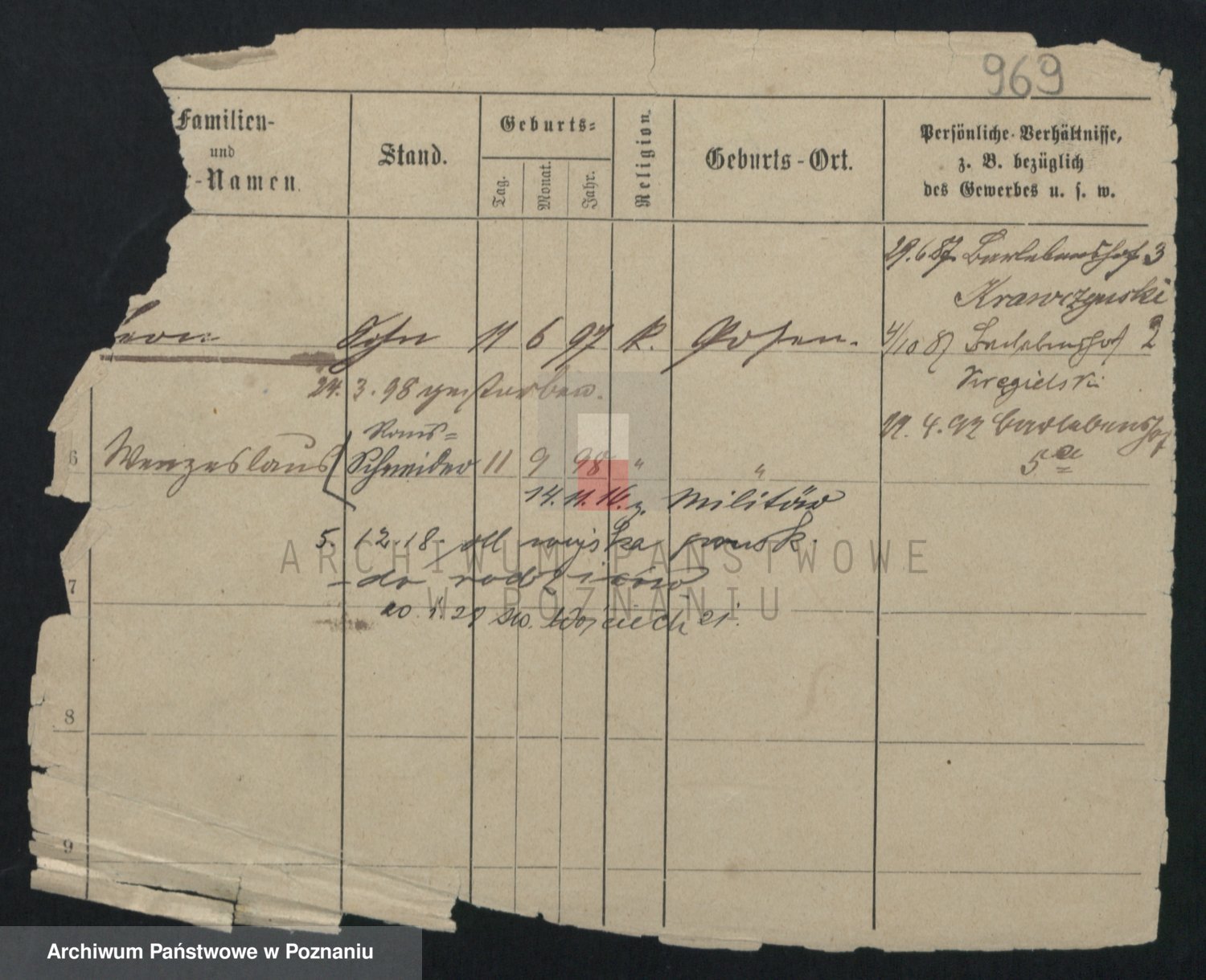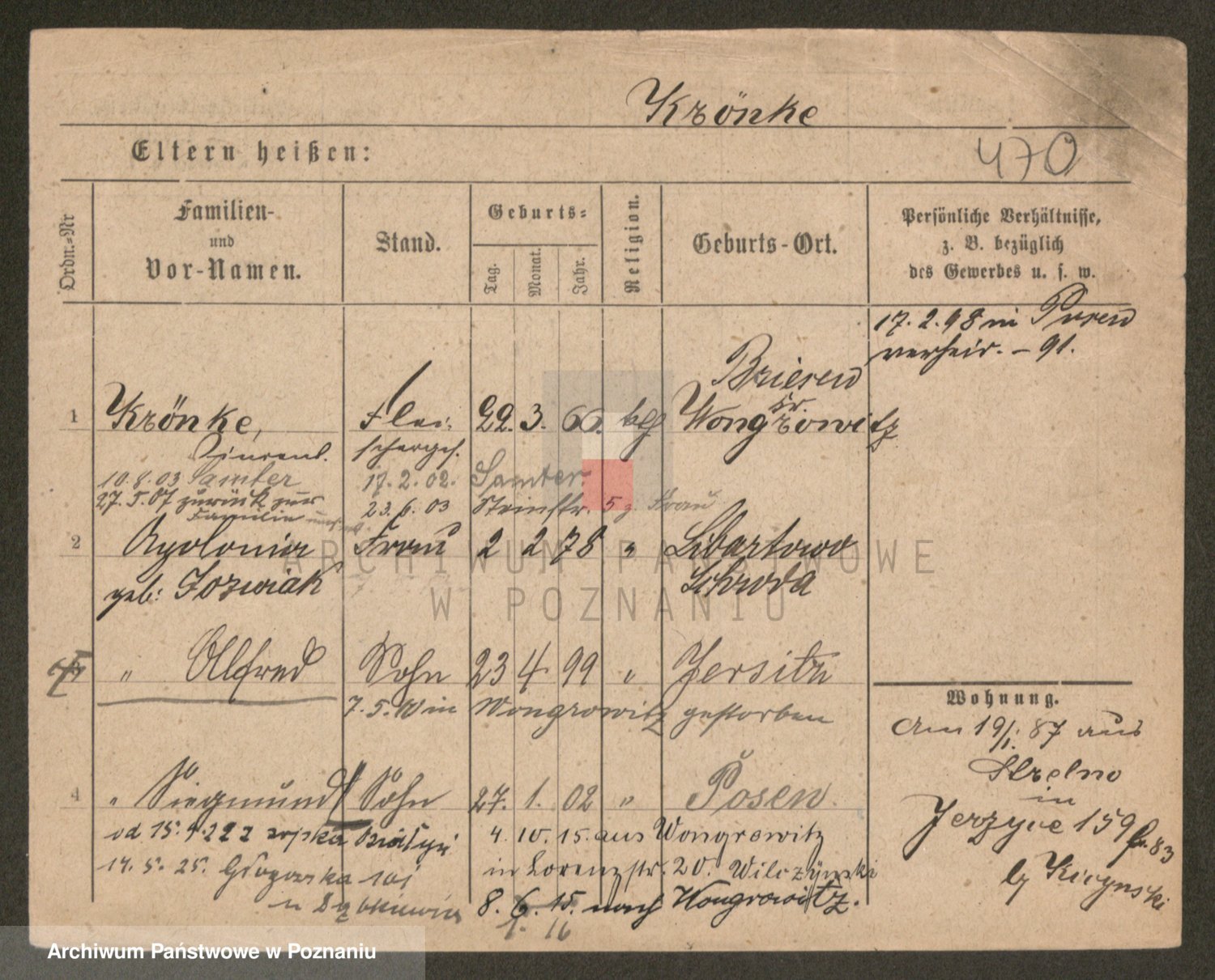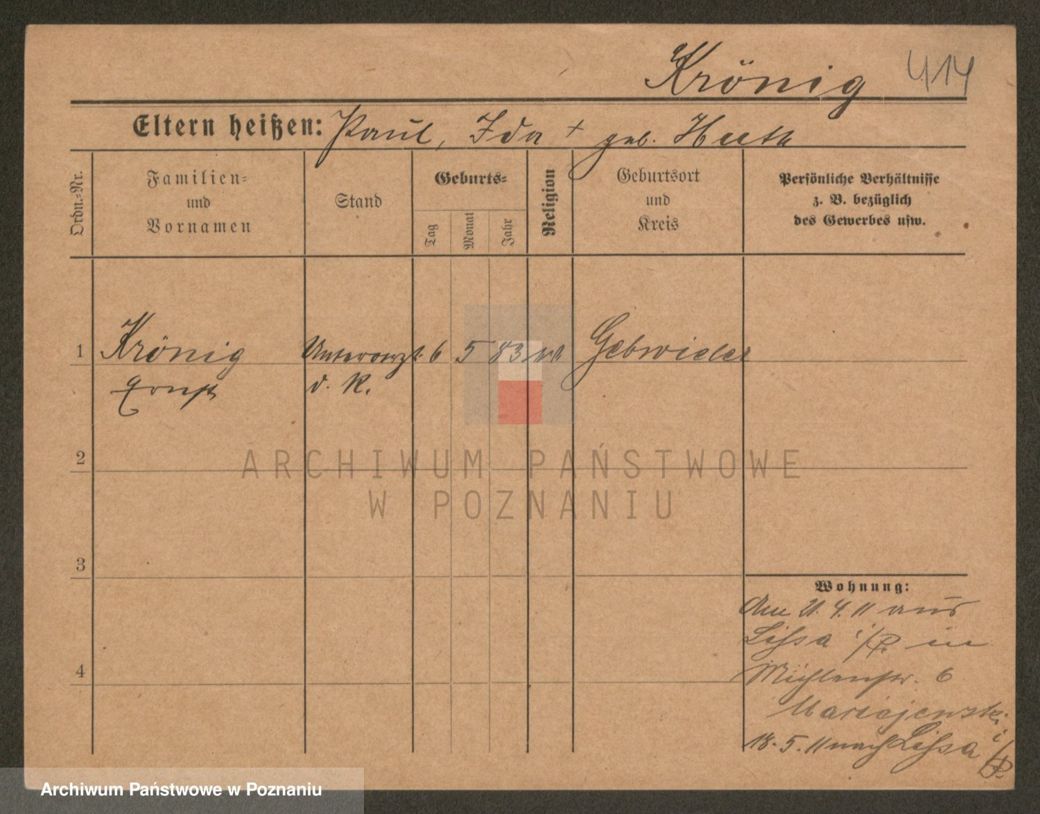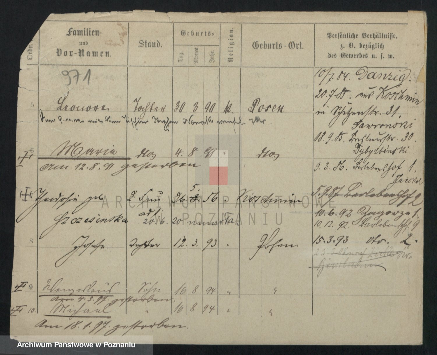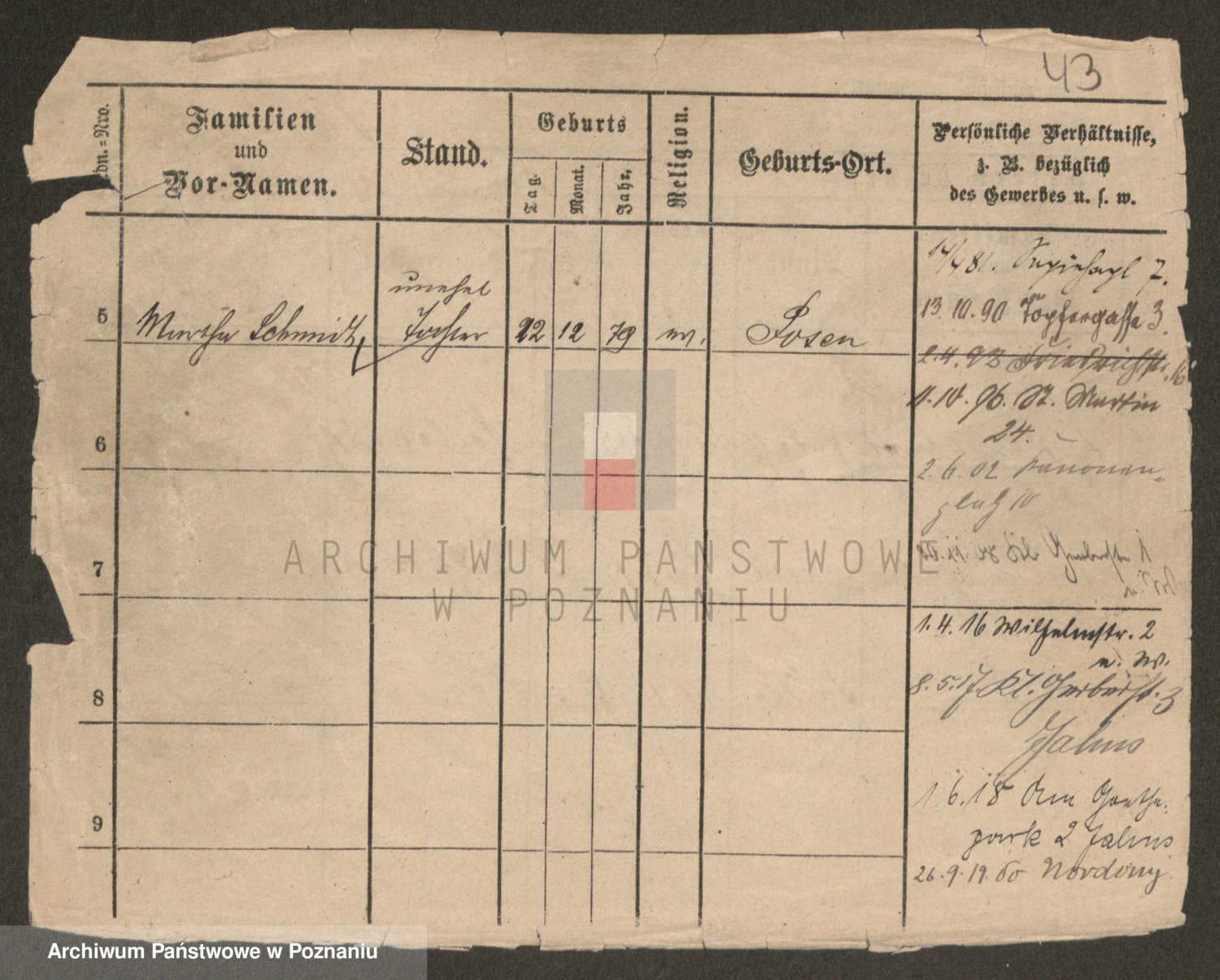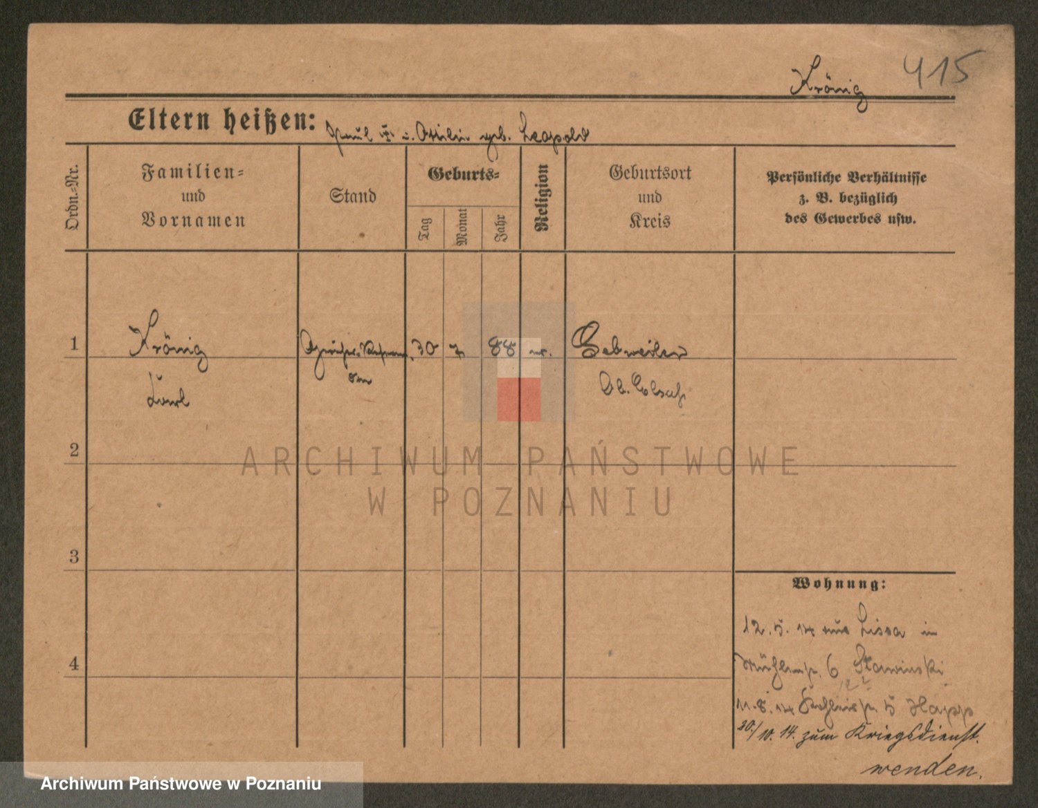 Podgląd karty osobowej dostępny jest po kliknięciu na nazwisko lub ikonkę karty. Można dokonywać powiększenia (ikony na górze) lub przechodzić między kolejnymi skanami (strzałki po bokach).
