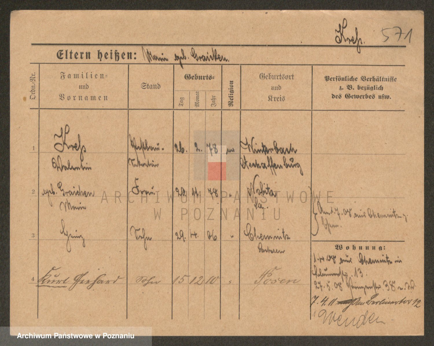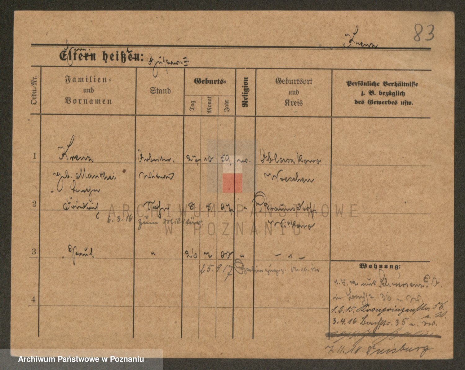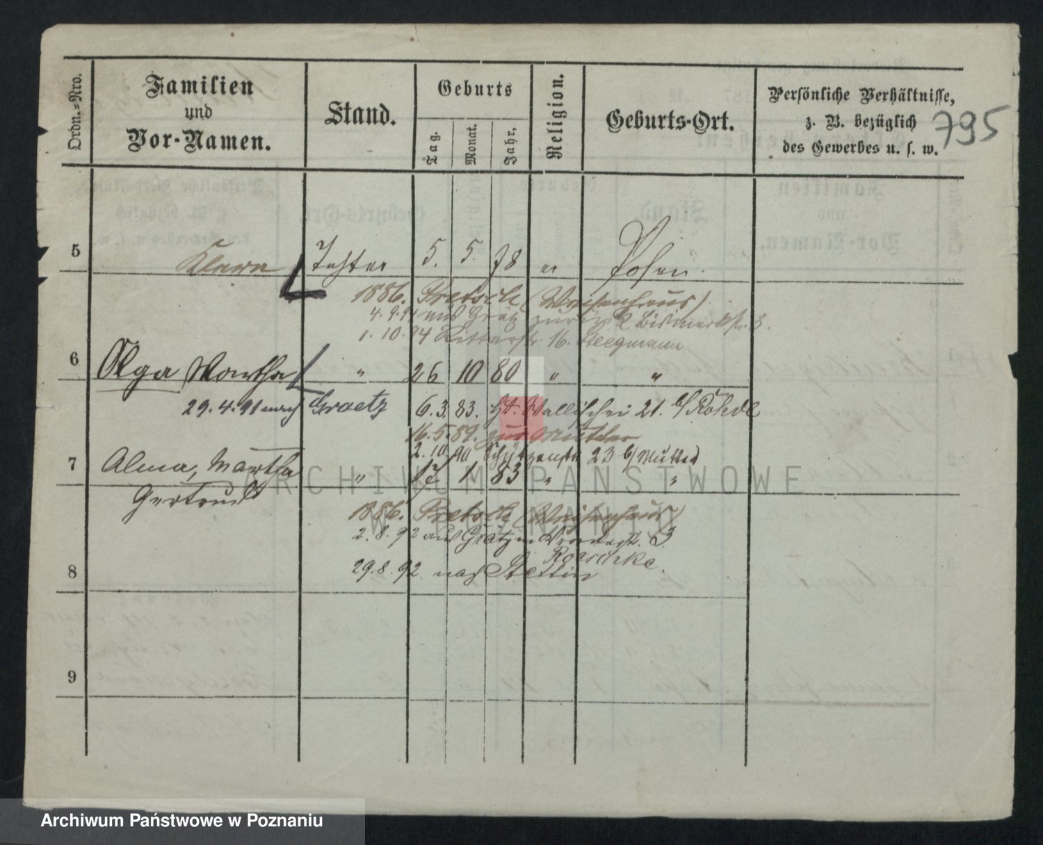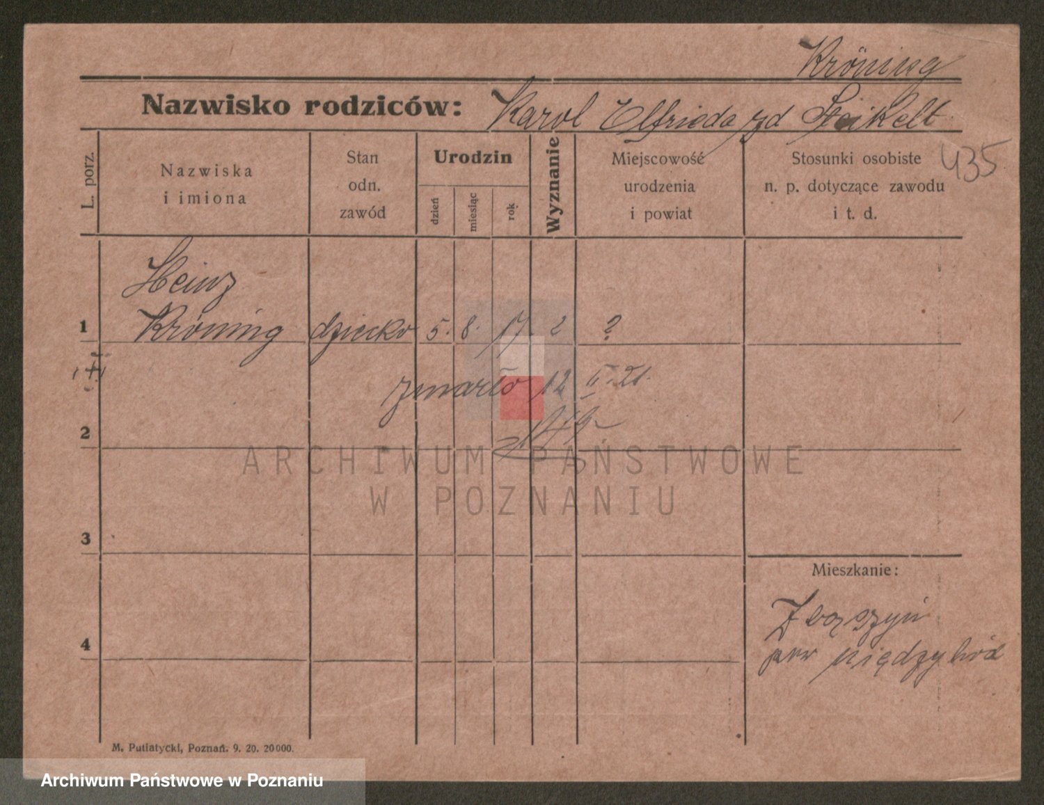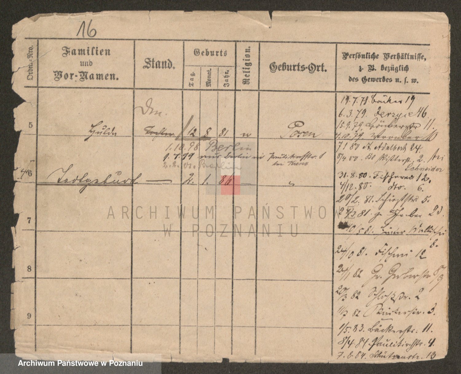 Podgląd karty osobowej dostępny jest po kliknięciu na nazwisko lub ikonkę karty. Można dokonywać powiększenia (ikony na górze) lub przechodzić między kolejnymi skanami (strzałki po bokach).