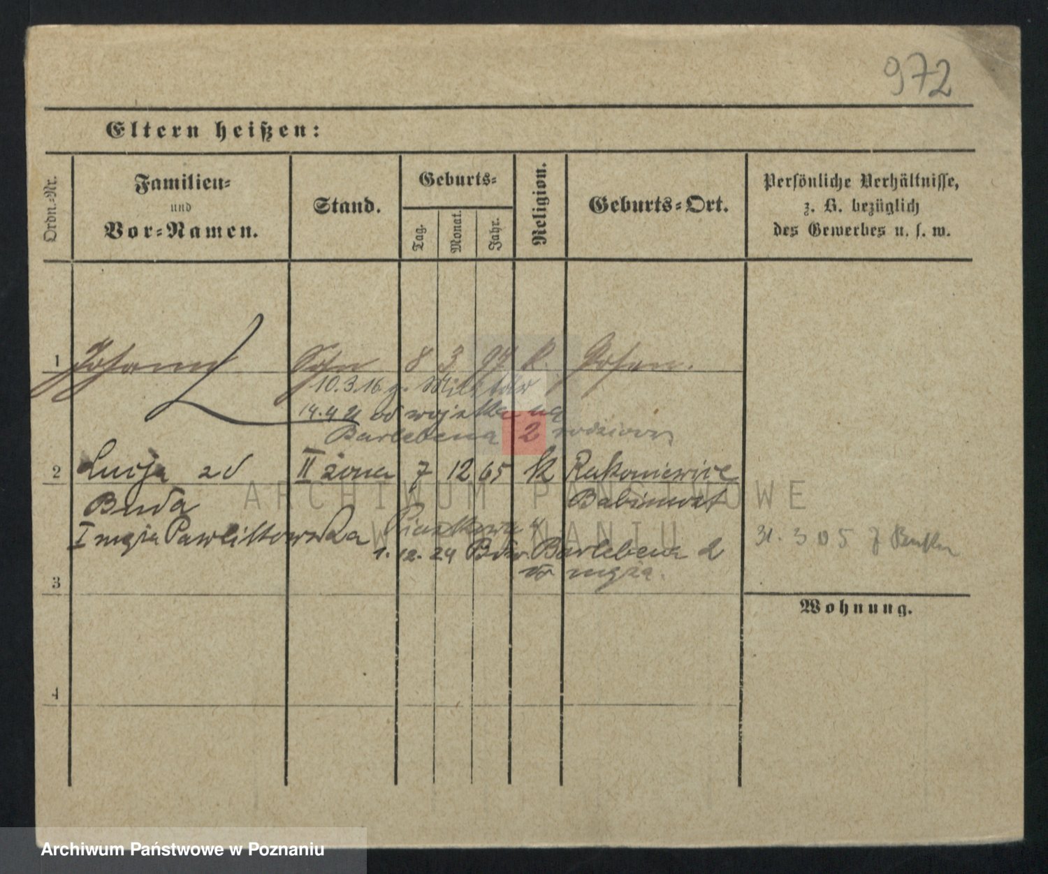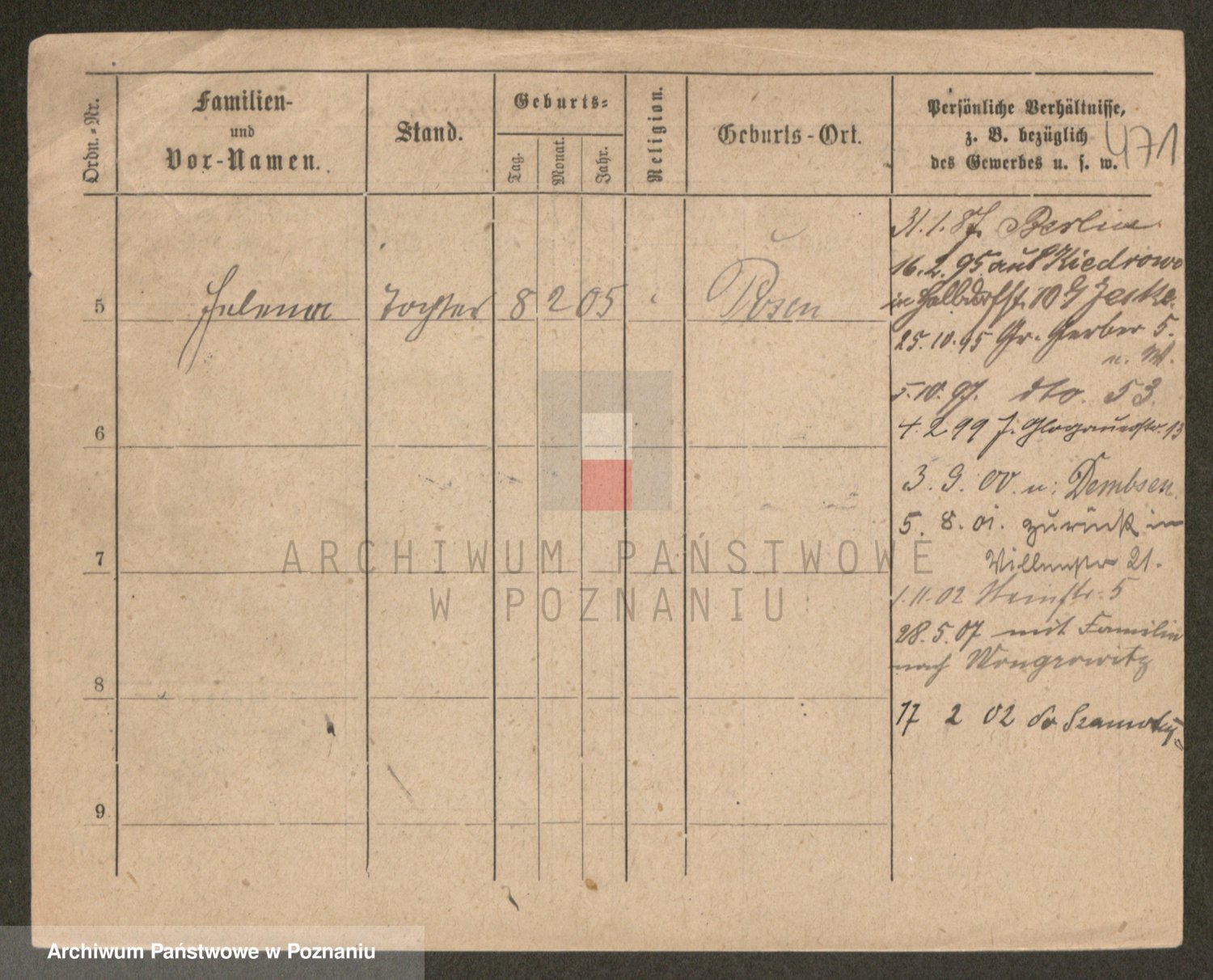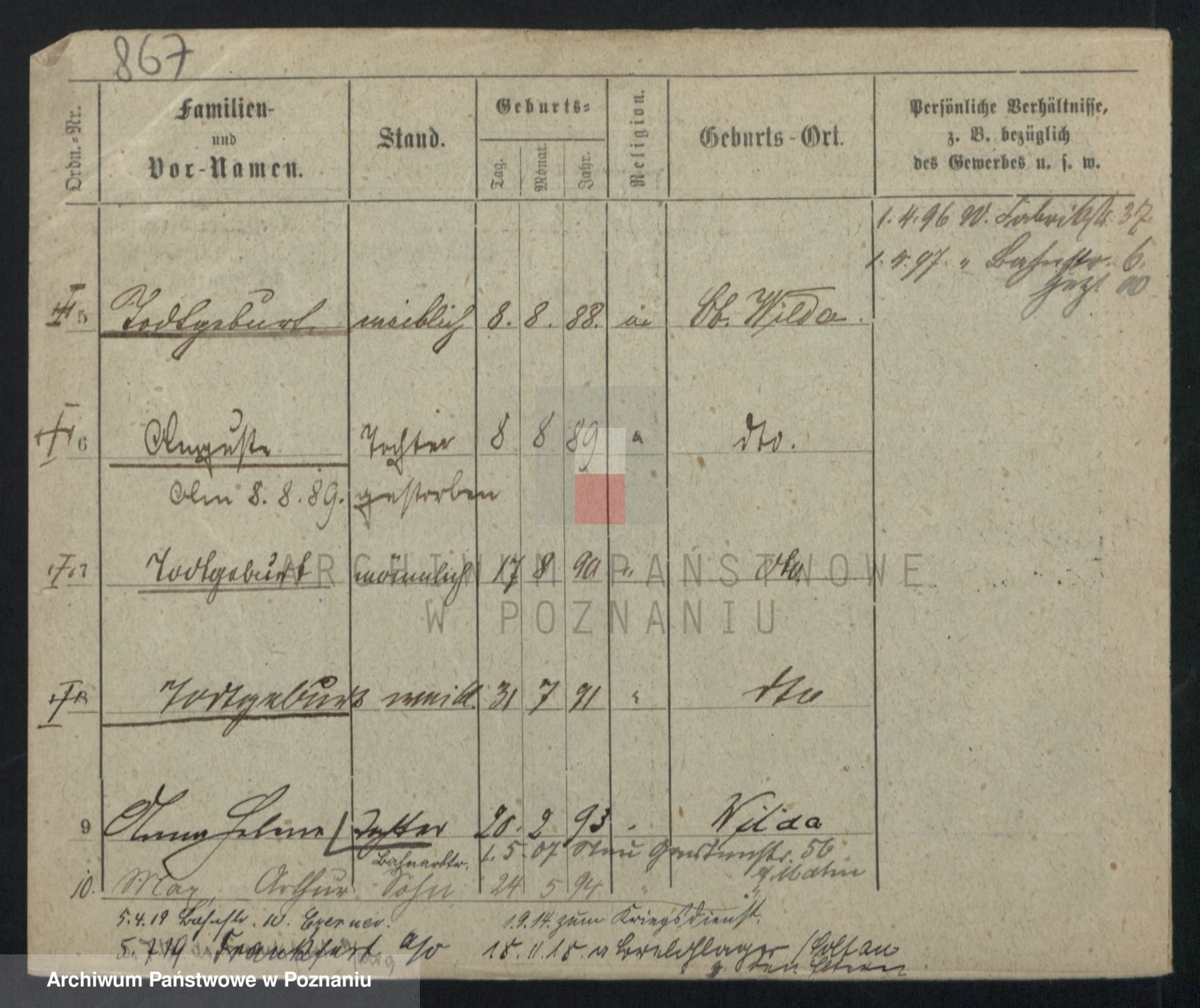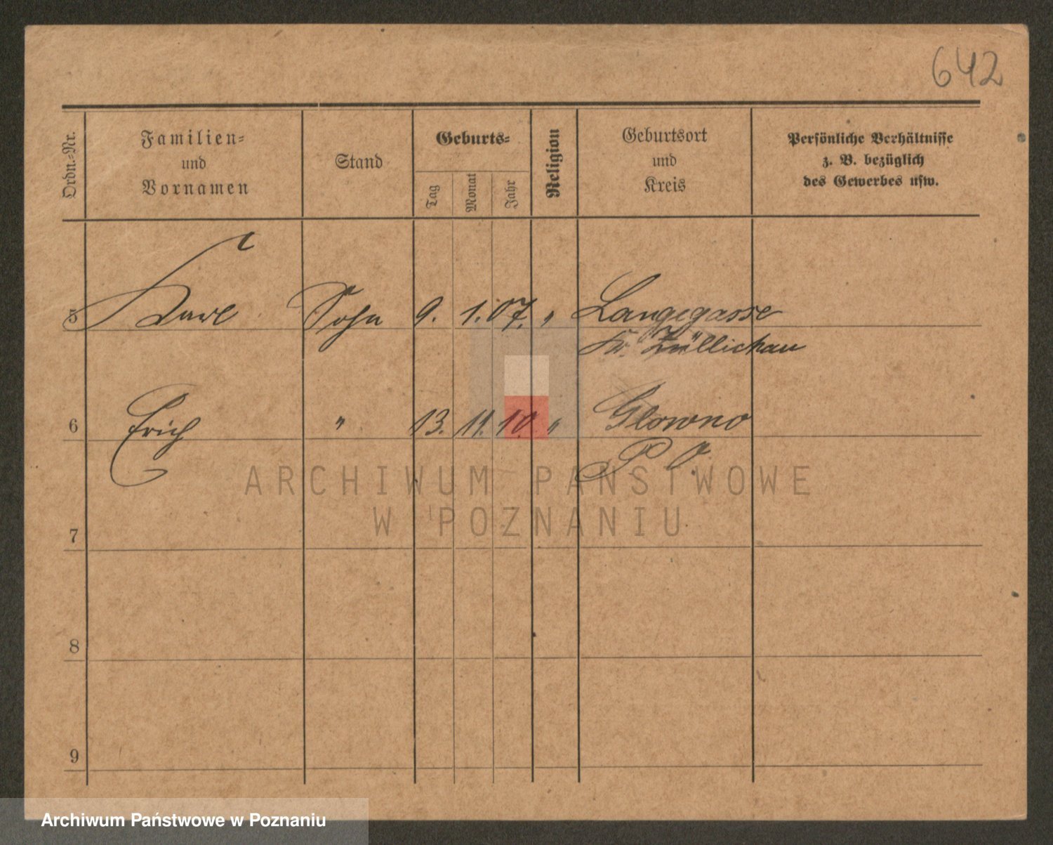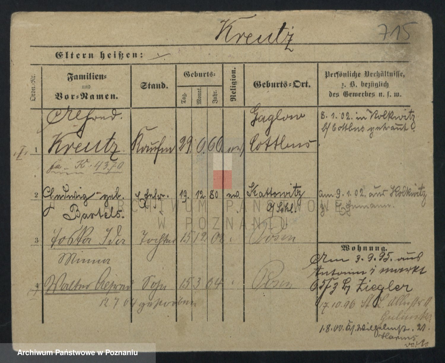 Podgląd karty osobowej dostępny jest po kliknięciu na nazwisko lub ikonkę karty. Można dokonywać powiększenia (ikony na górze) lub przechodzić między kolejnymi skanami (strzałki po bokach).