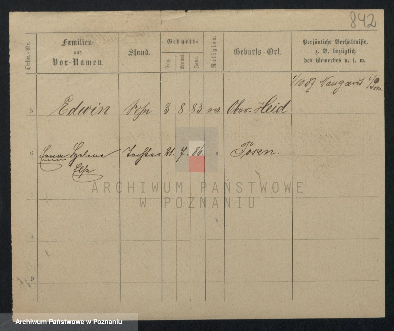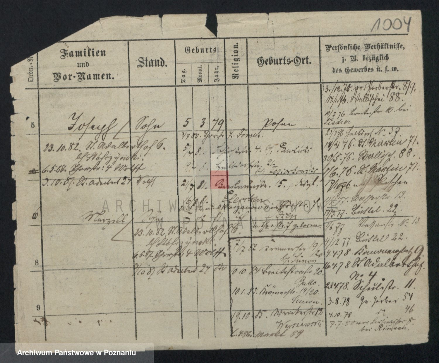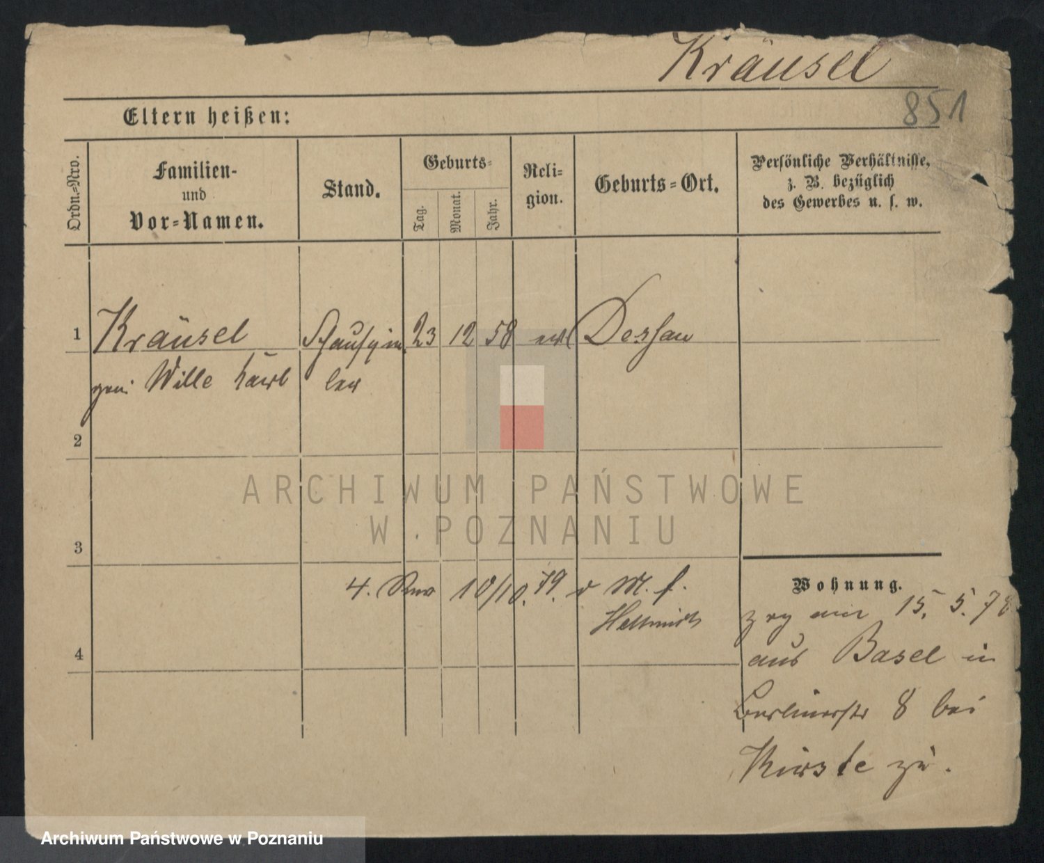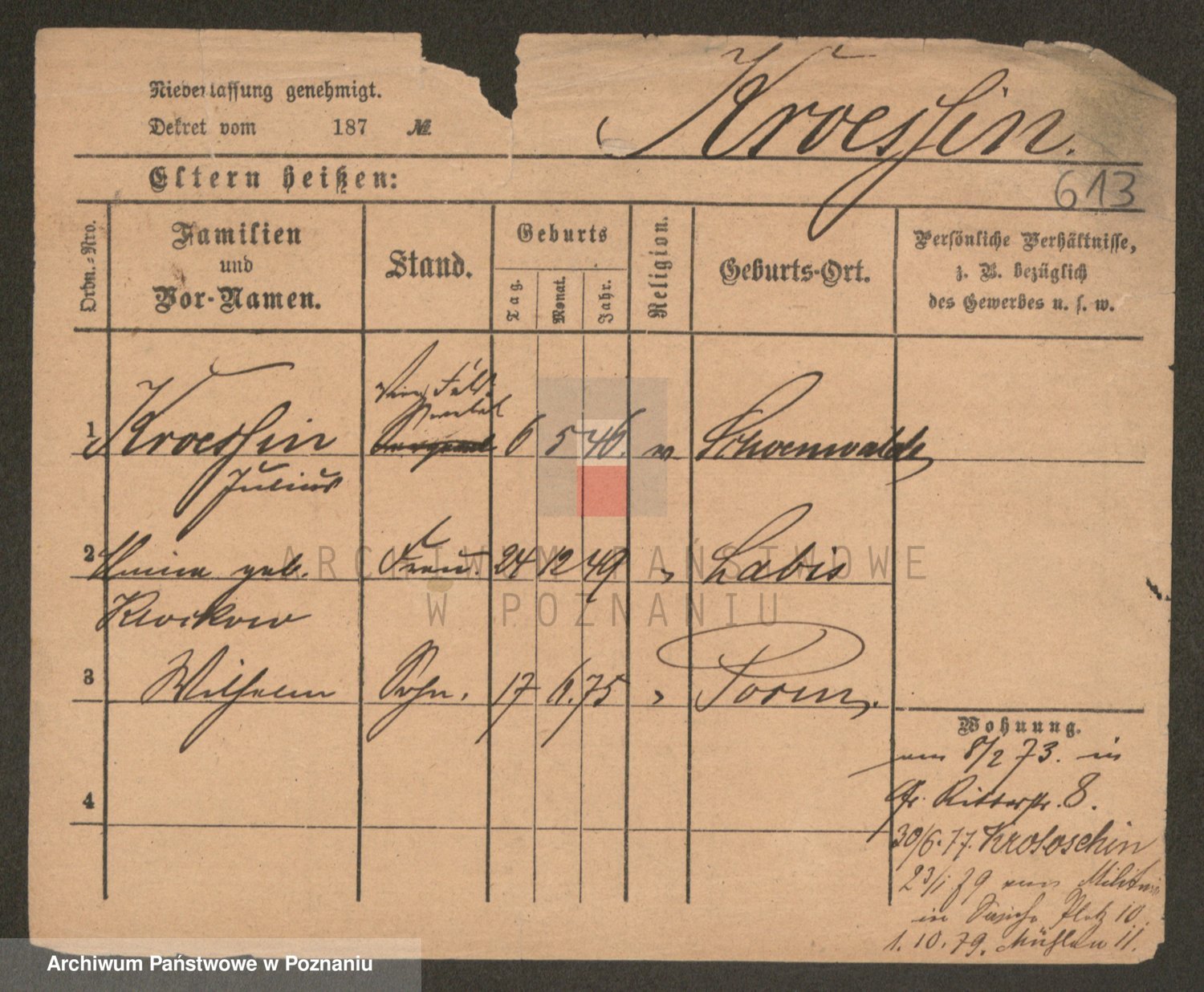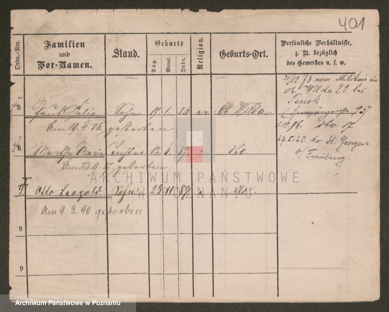 Podgląd karty osobowej dostępny jest po kliknięciu na nazwisko lub ikonkę karty. Można dokonywać powiększenia (ikony na górze) lub przechodzić między kolejnymi skanami (strzałki po bokach).