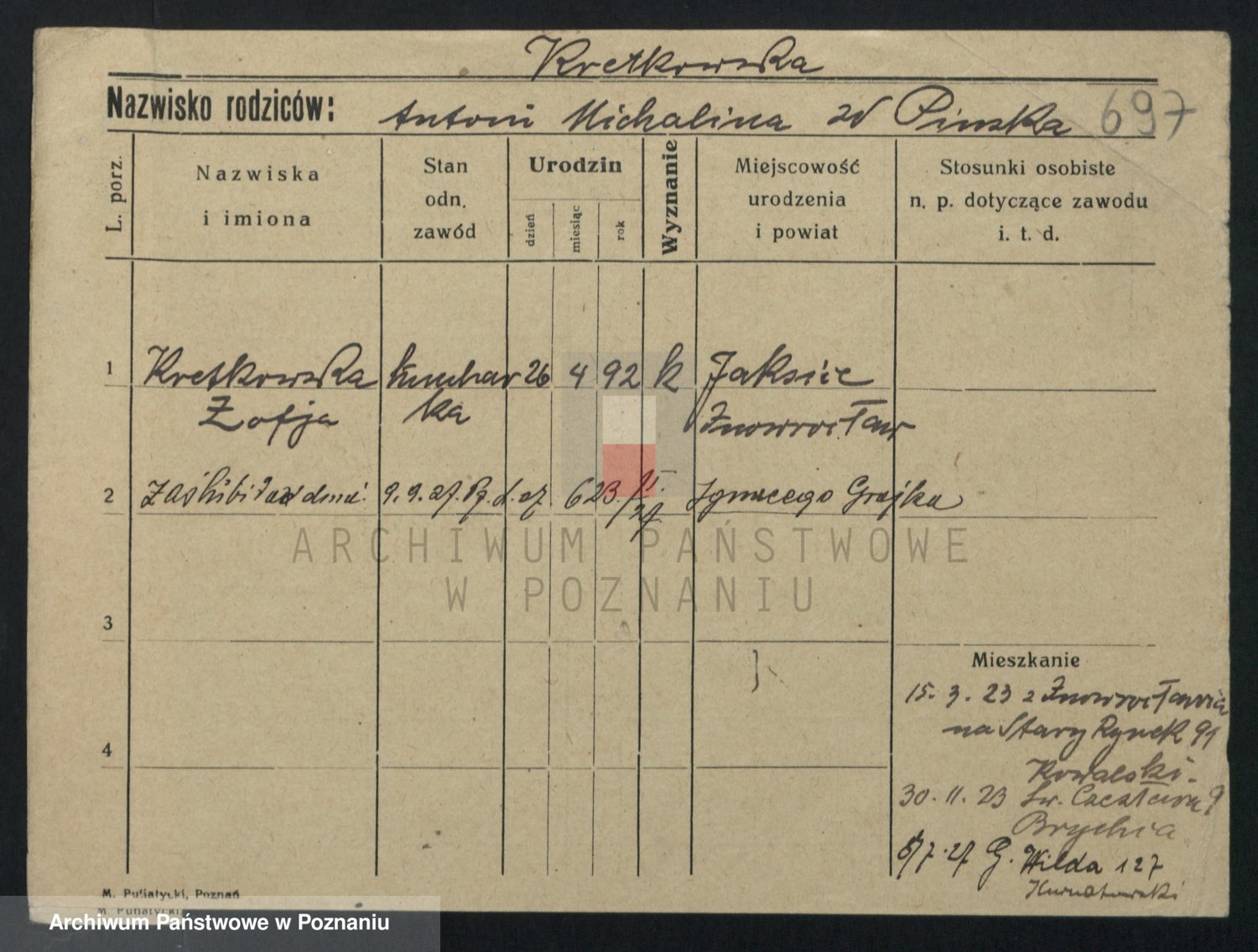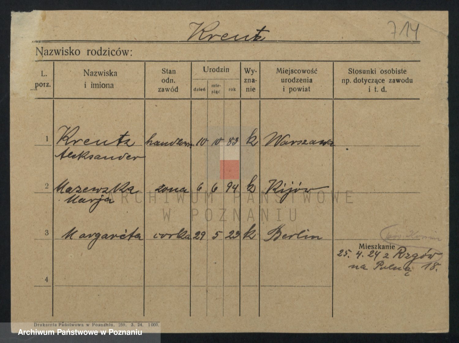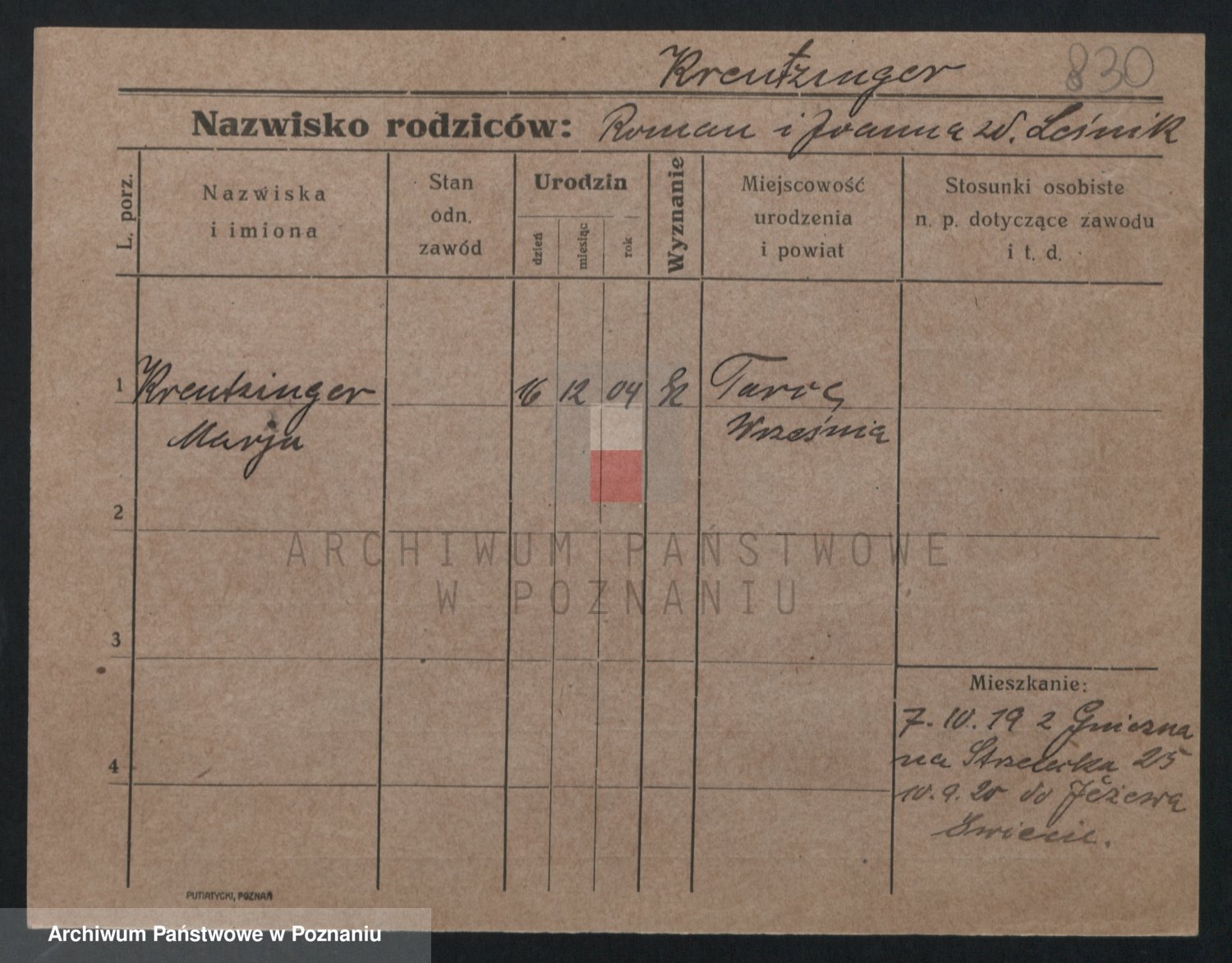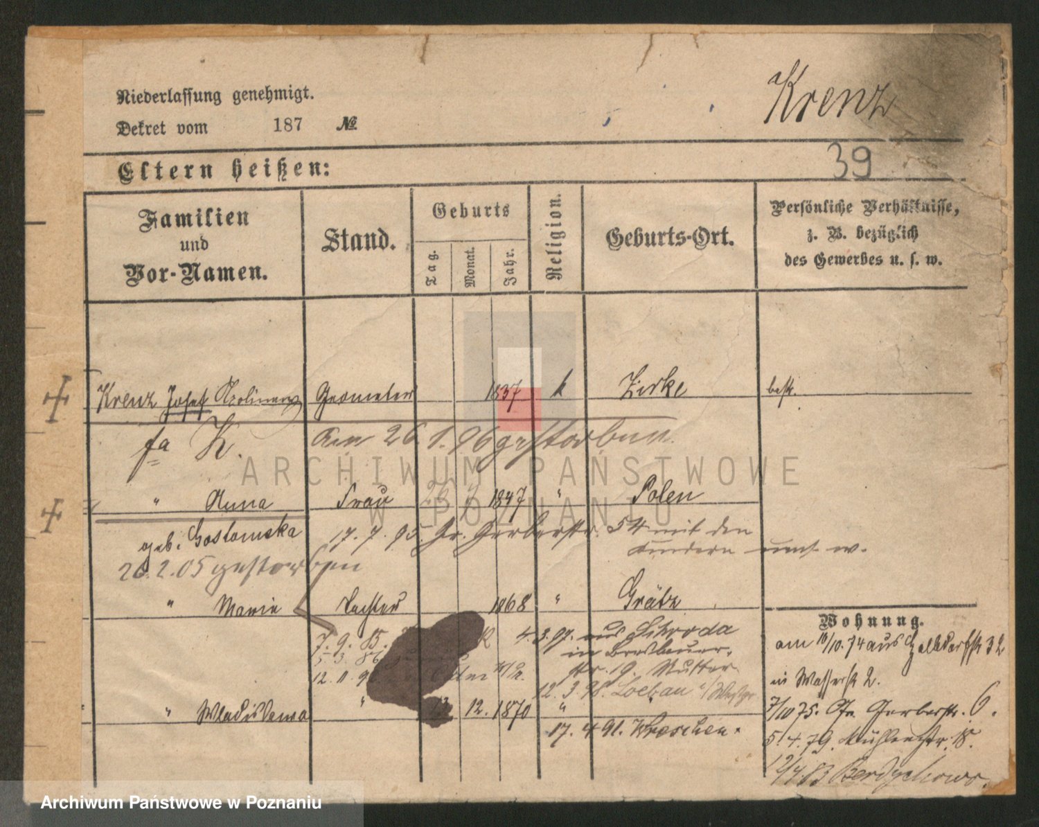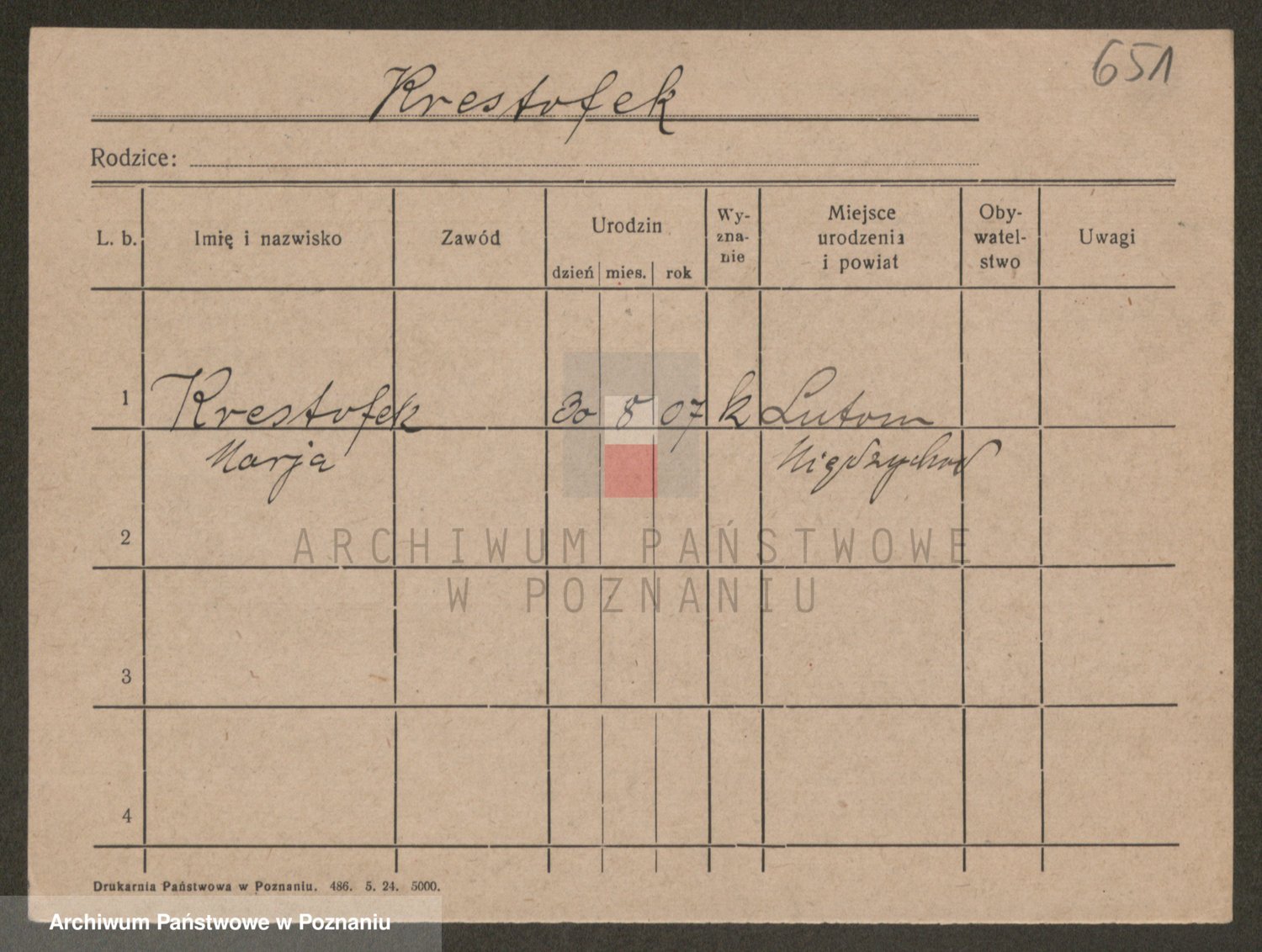 Kręska v. Z d. Krzyżanowska, Marie