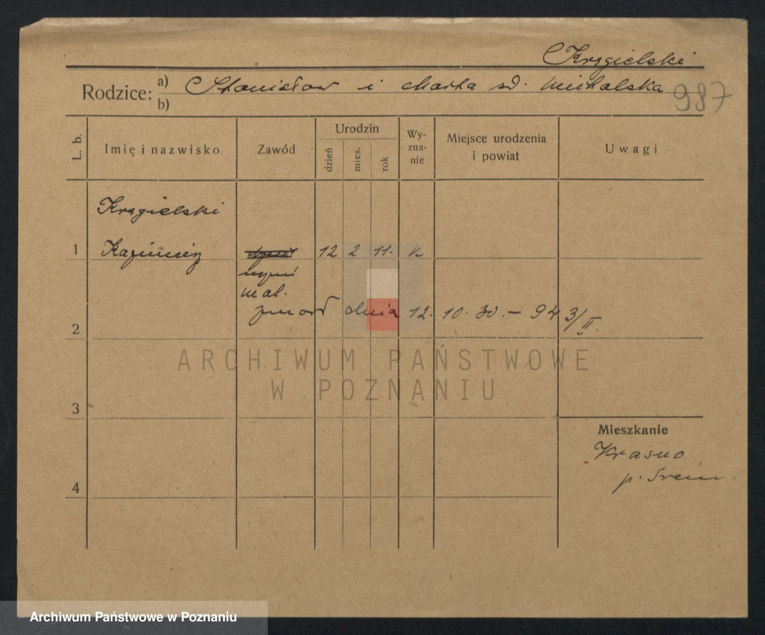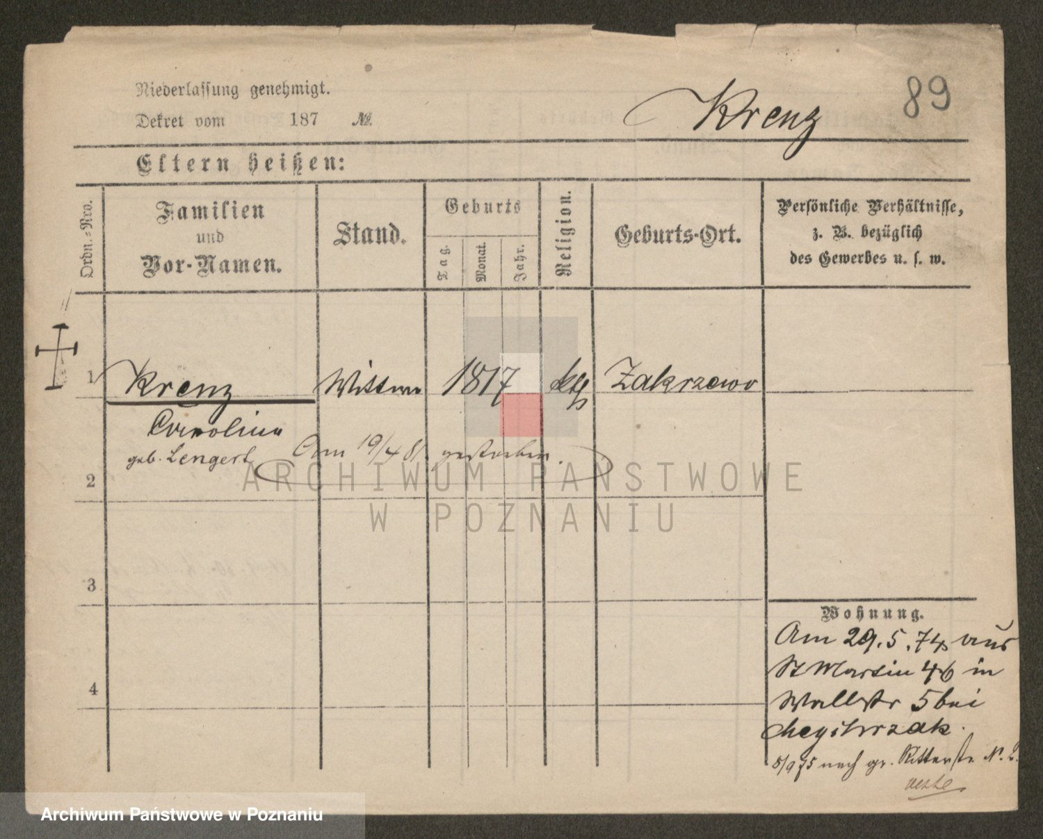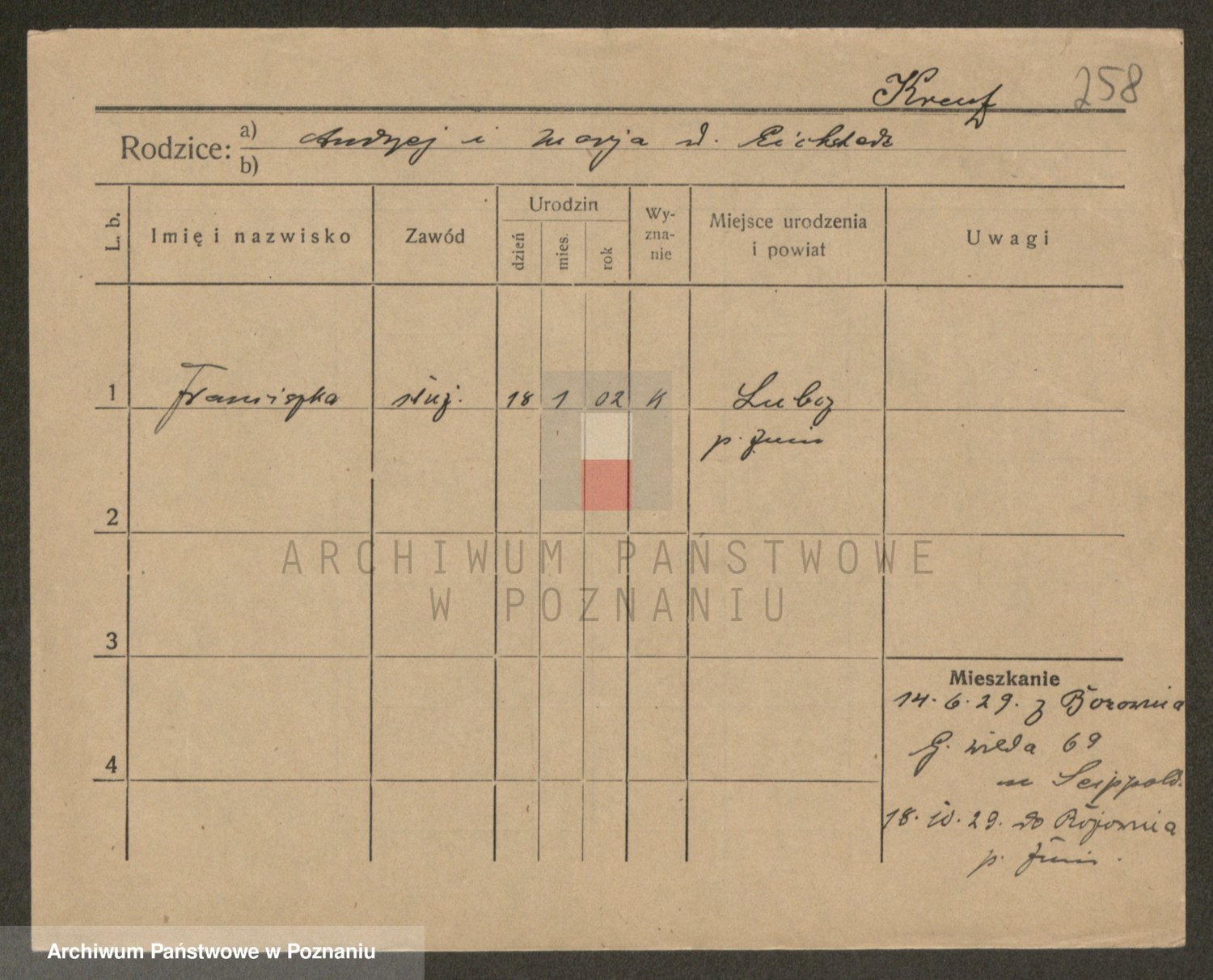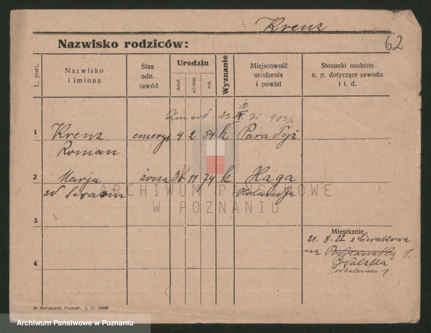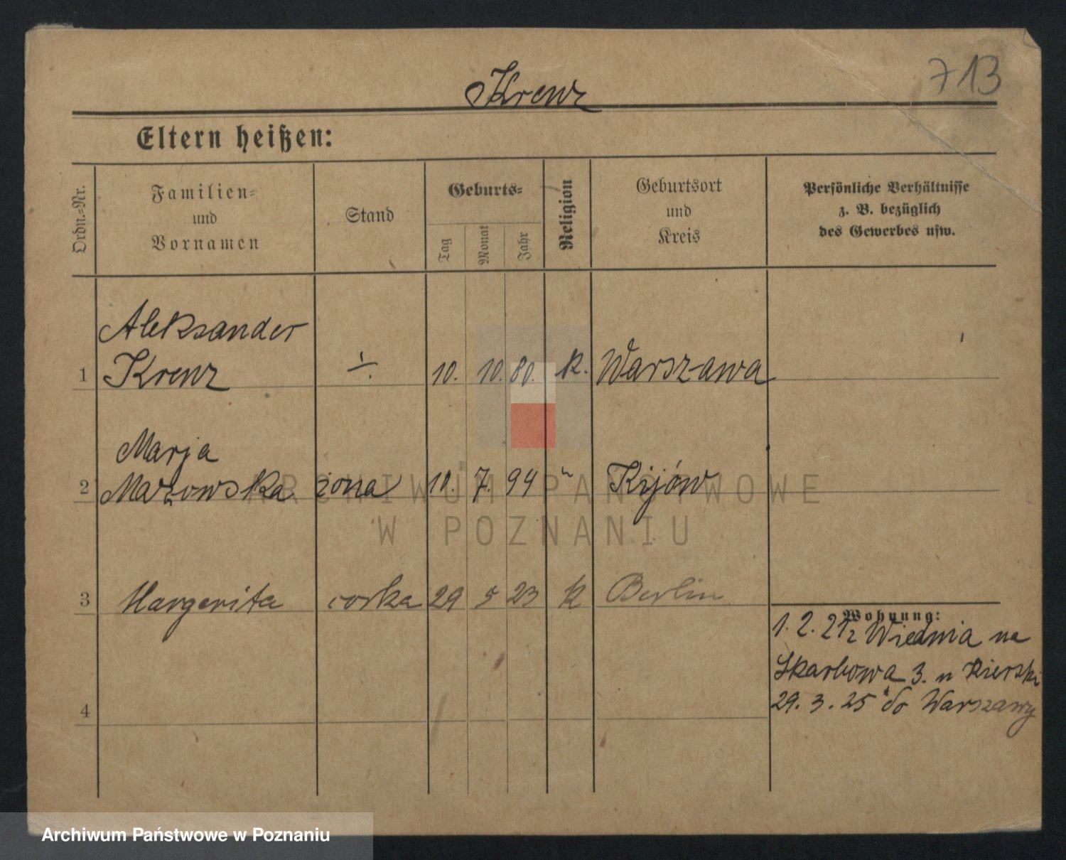 Kręska v. Z d. Krzyżanowska, Marie