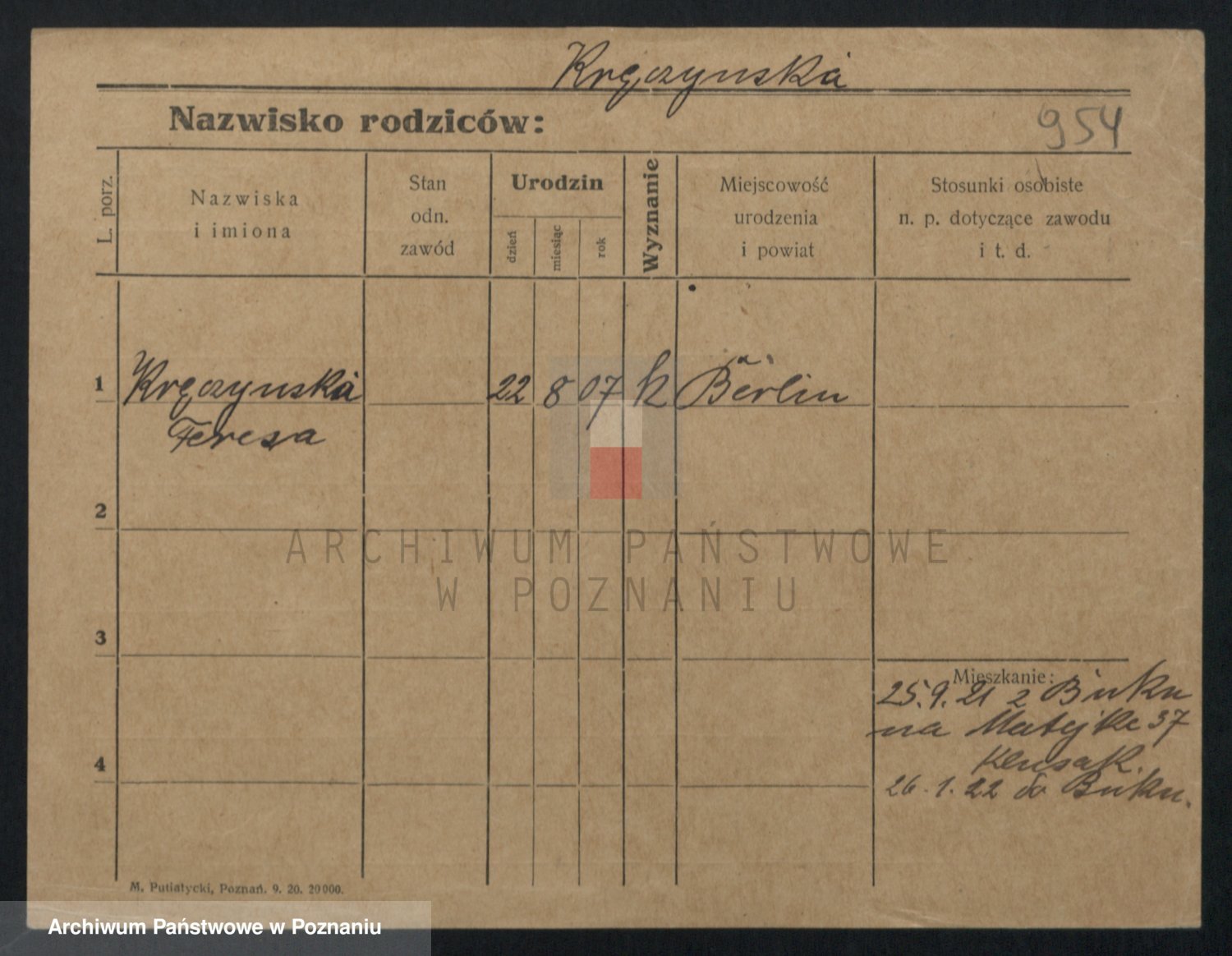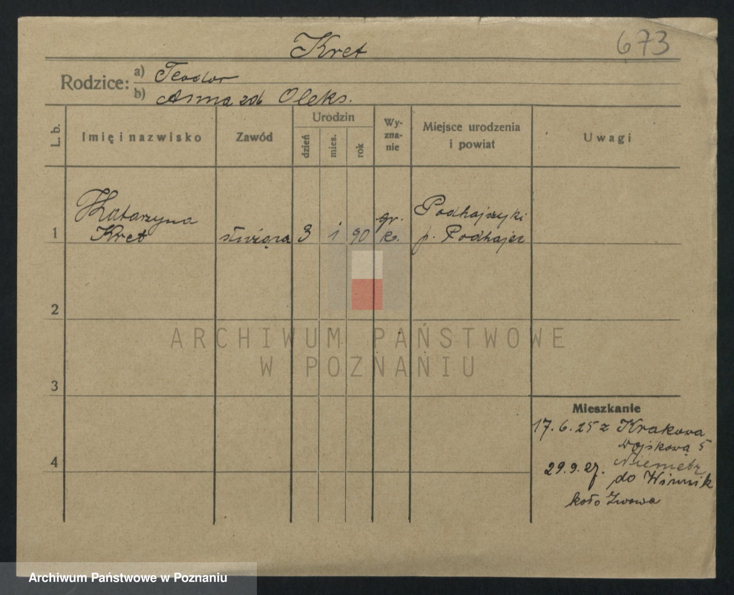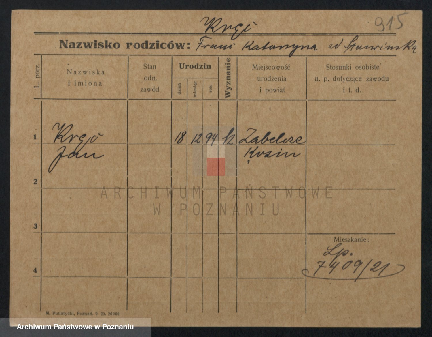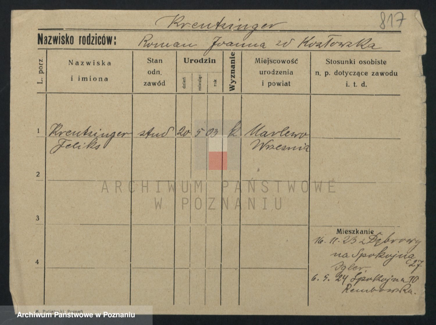 Kręska v. Z d. Krzyżanowska, Marie