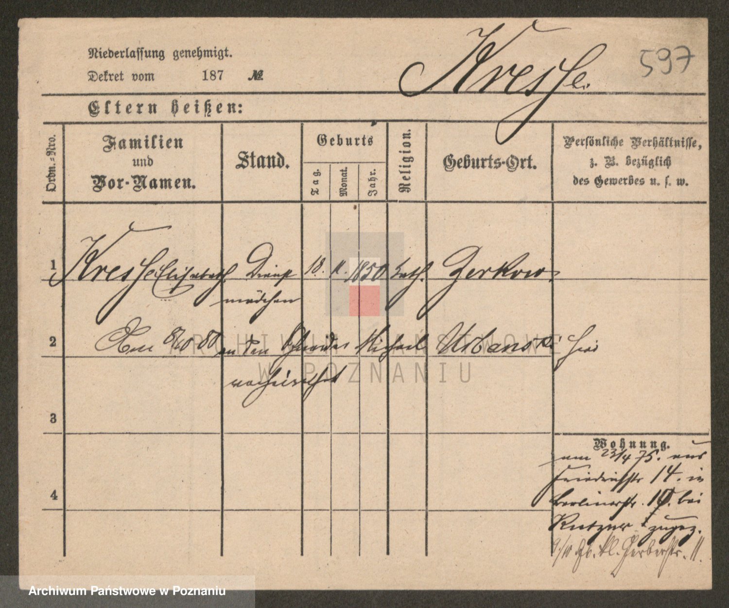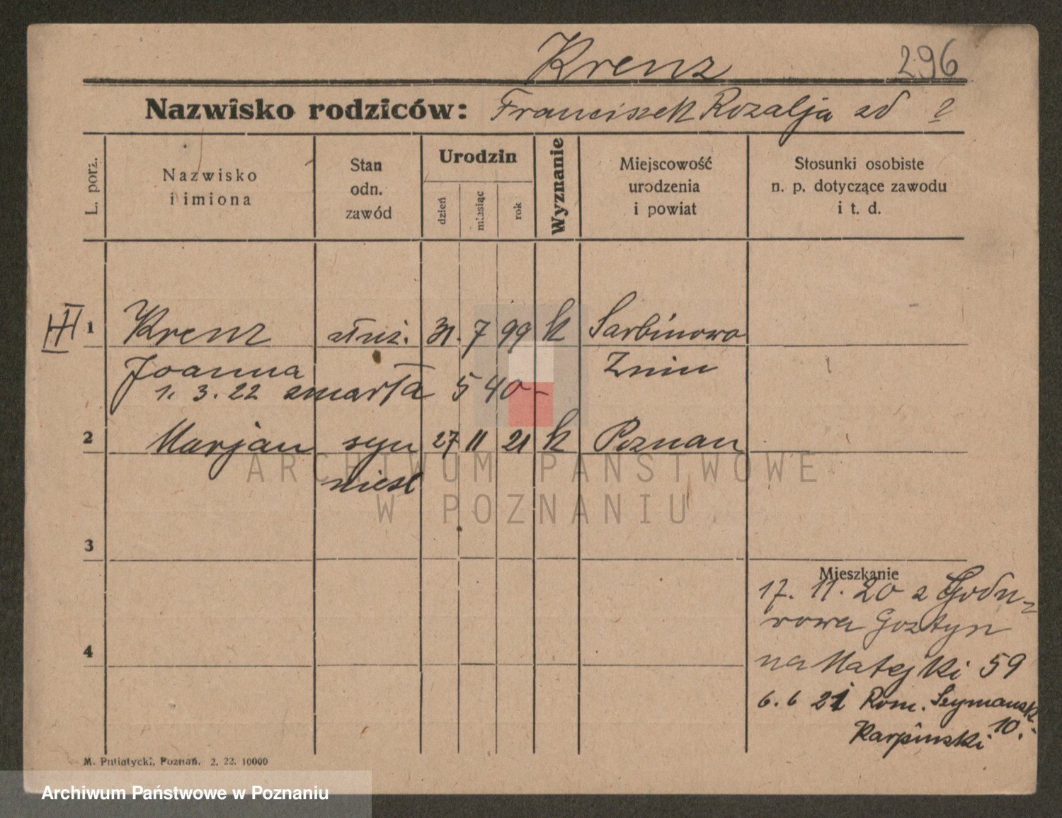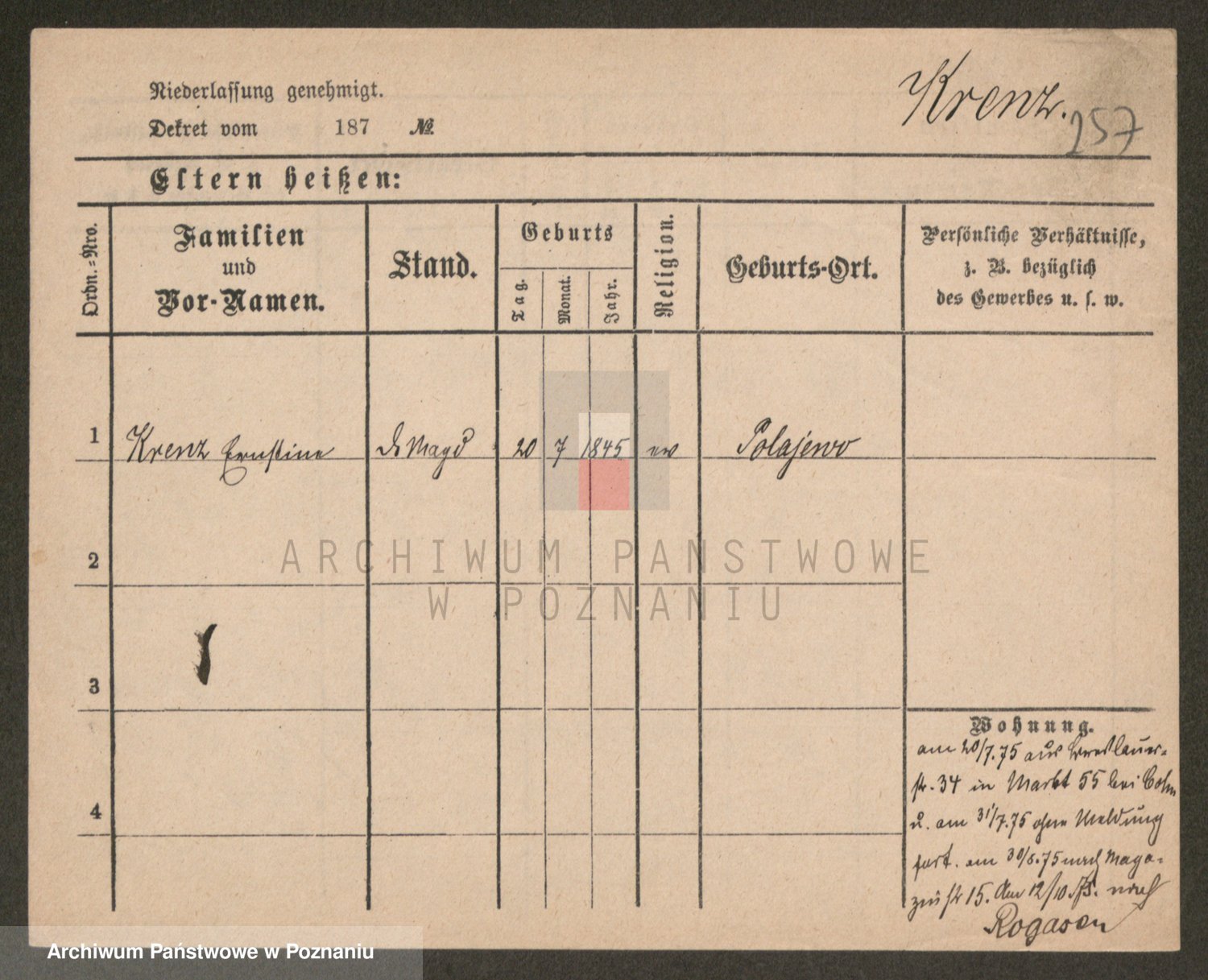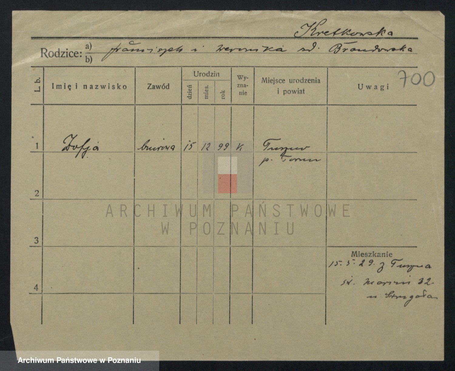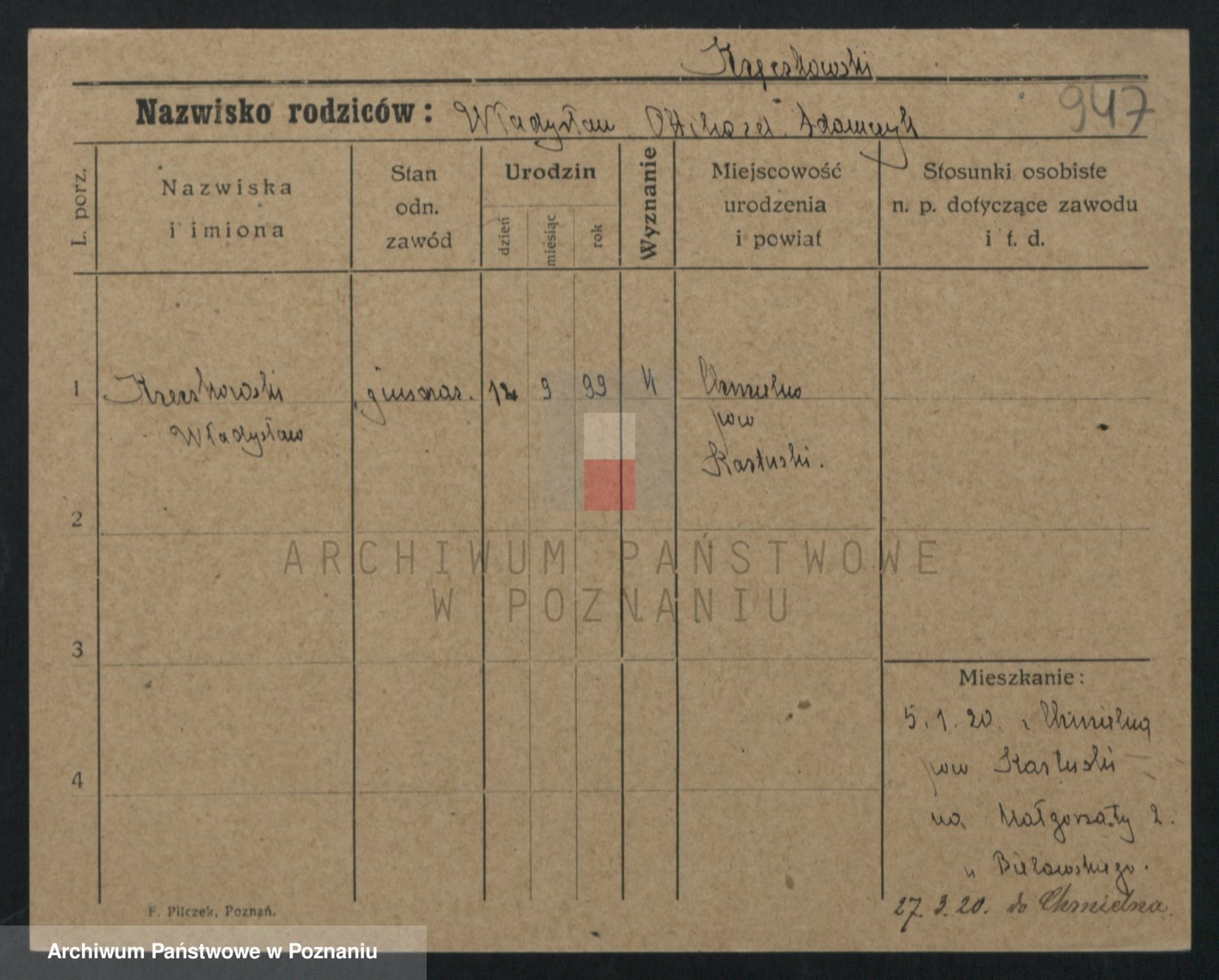 Kręska v. Z d. Krzyżanowska, Marie