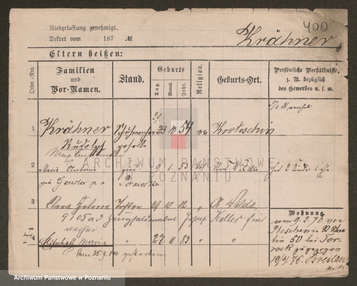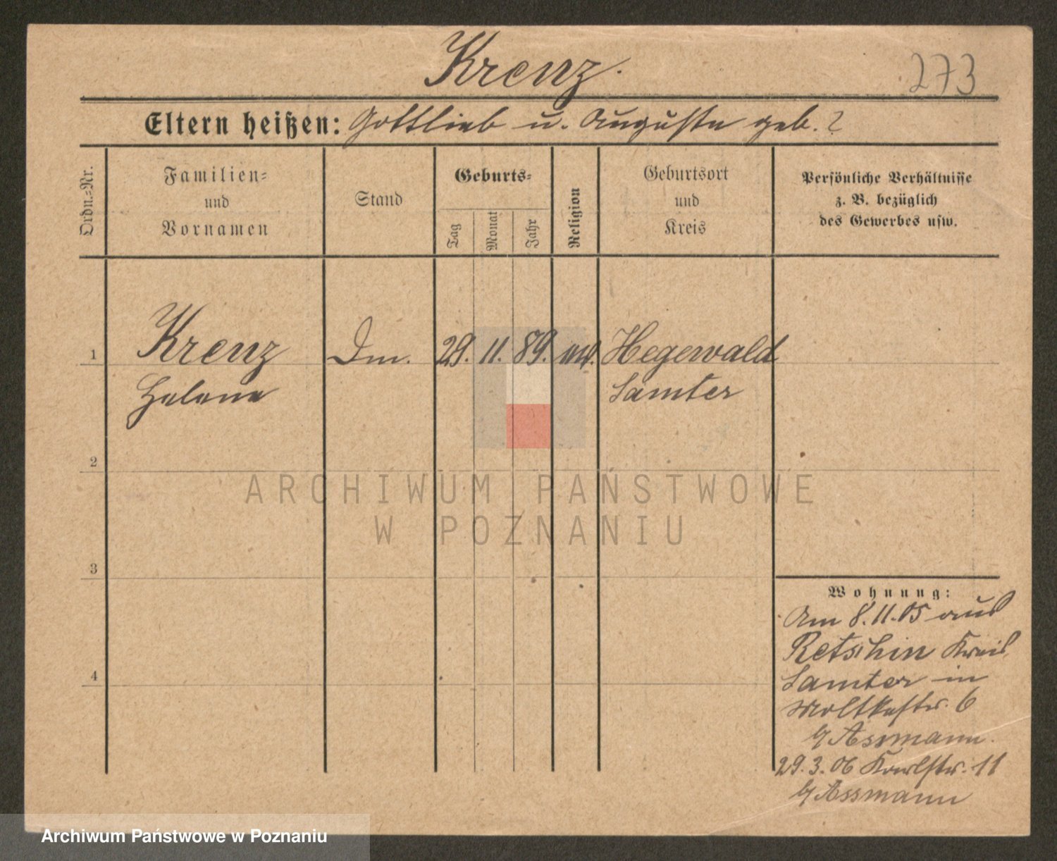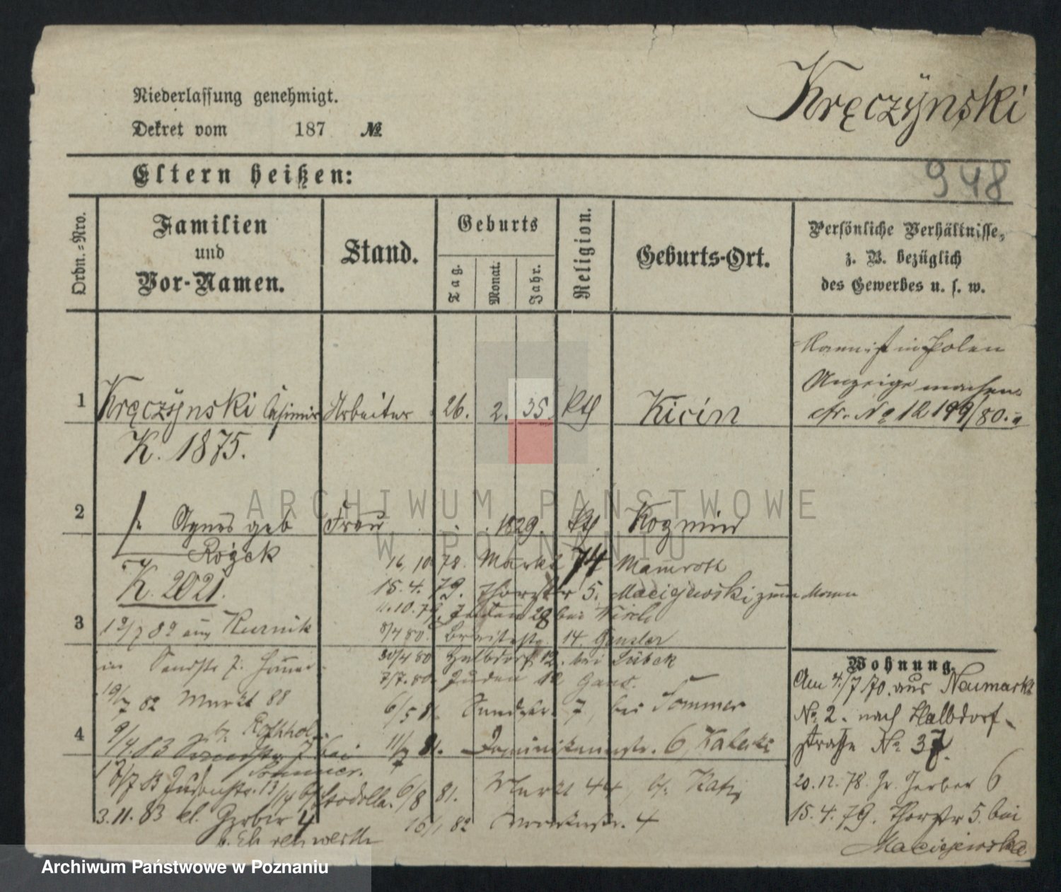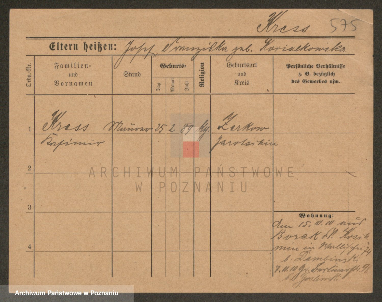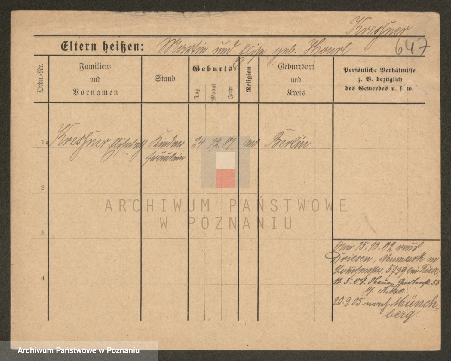 Kręska v. Z d. Krzyżanowska, Marie