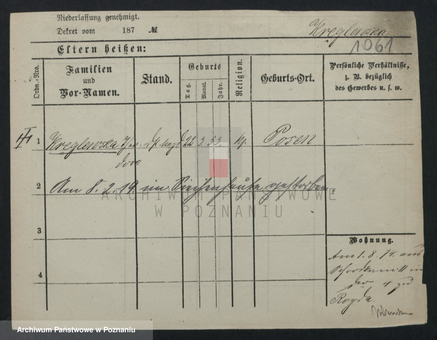 Kręglewska z d. Wawrocka, Wiktorie
