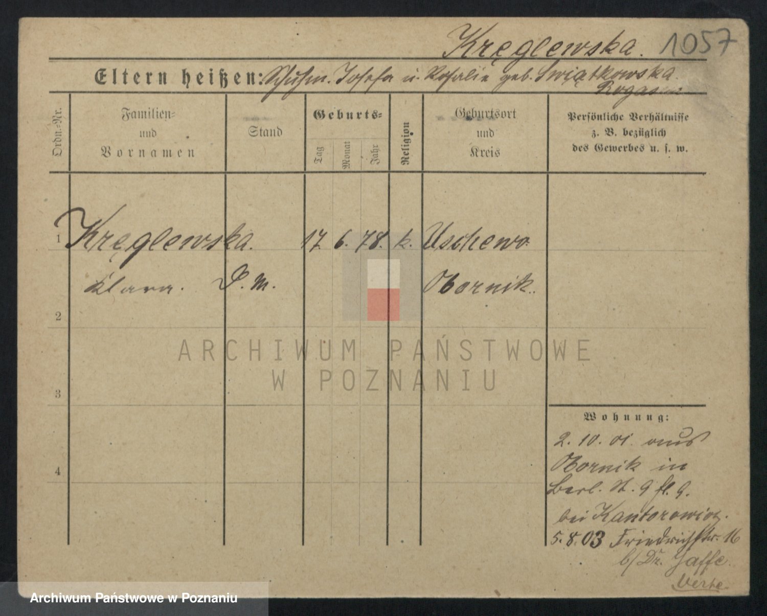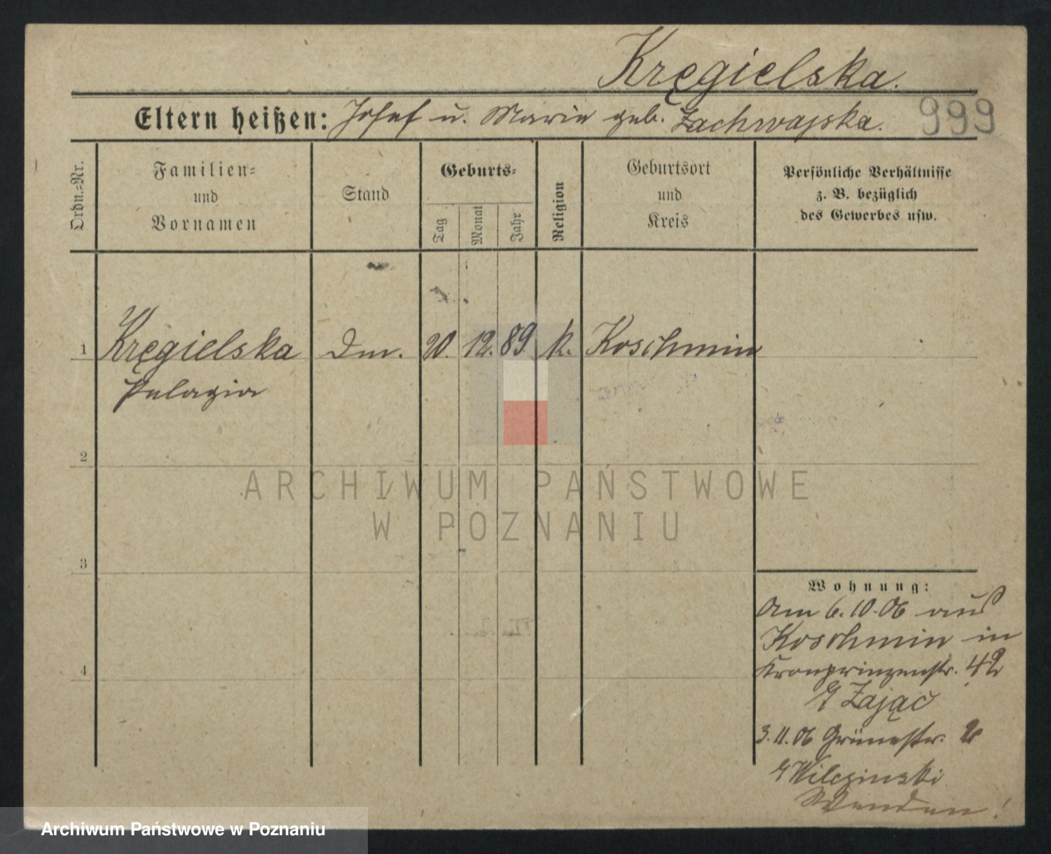 Kręglewski z d. Wroniewicz, Katharina