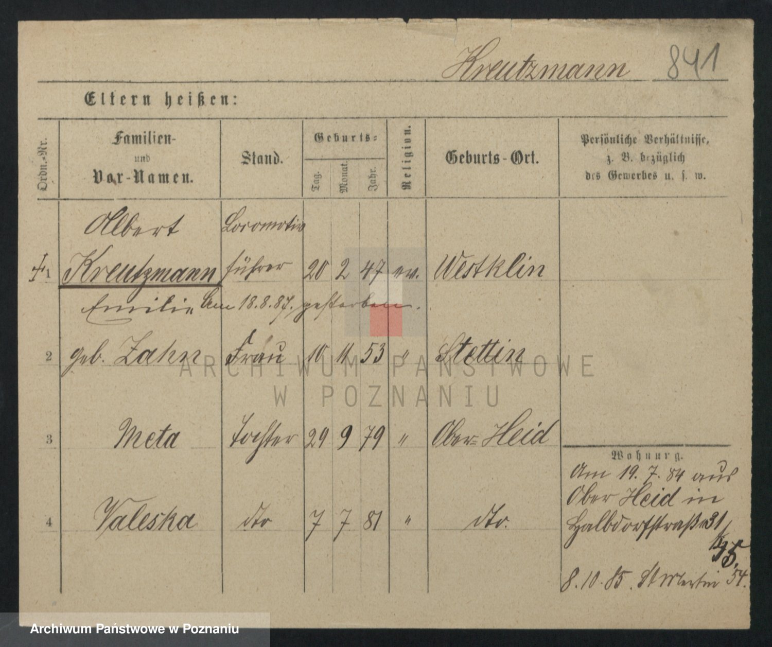 Krenz z d. Albrecht, Henriette Emilie