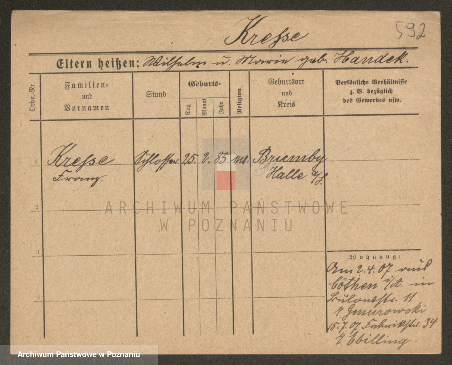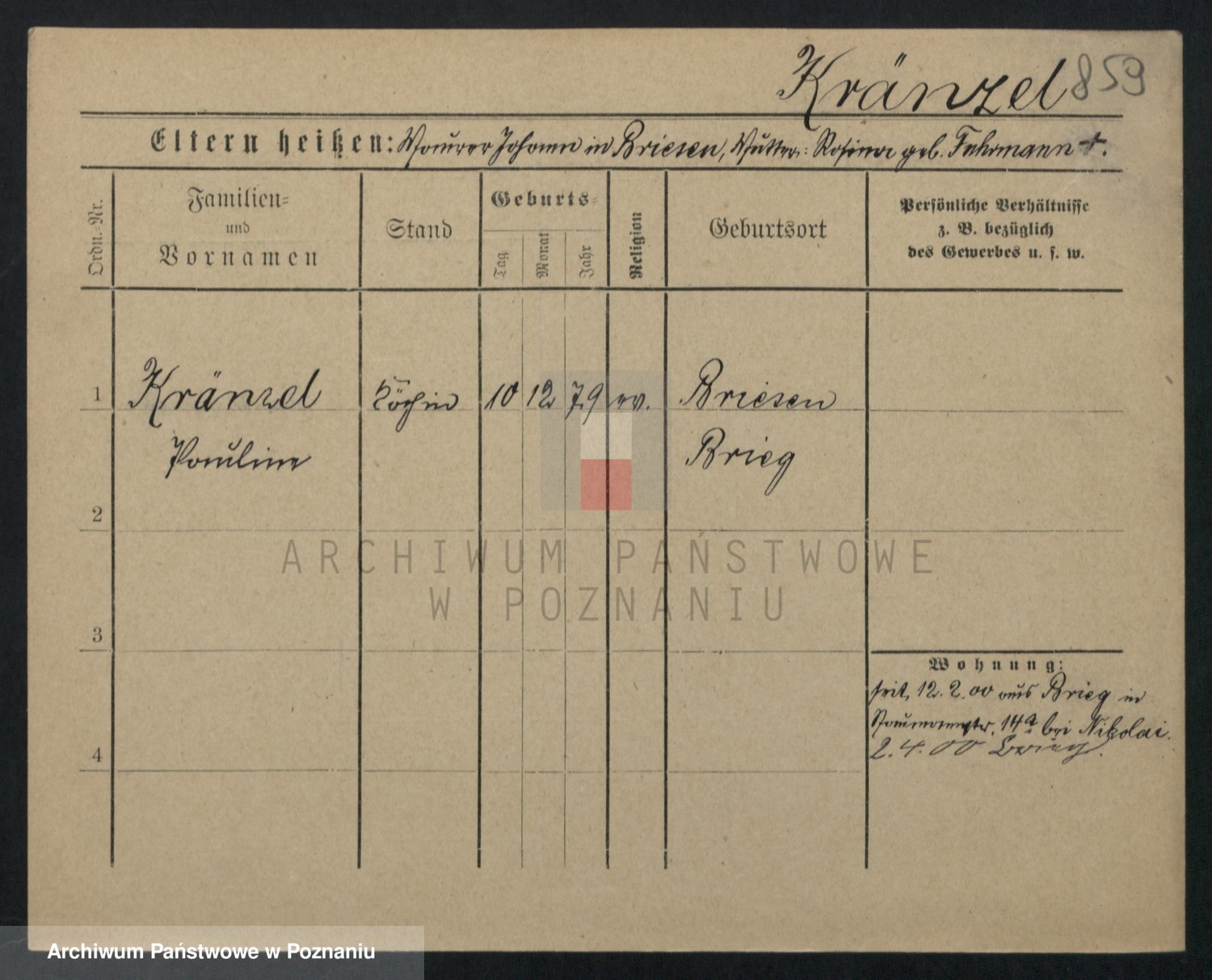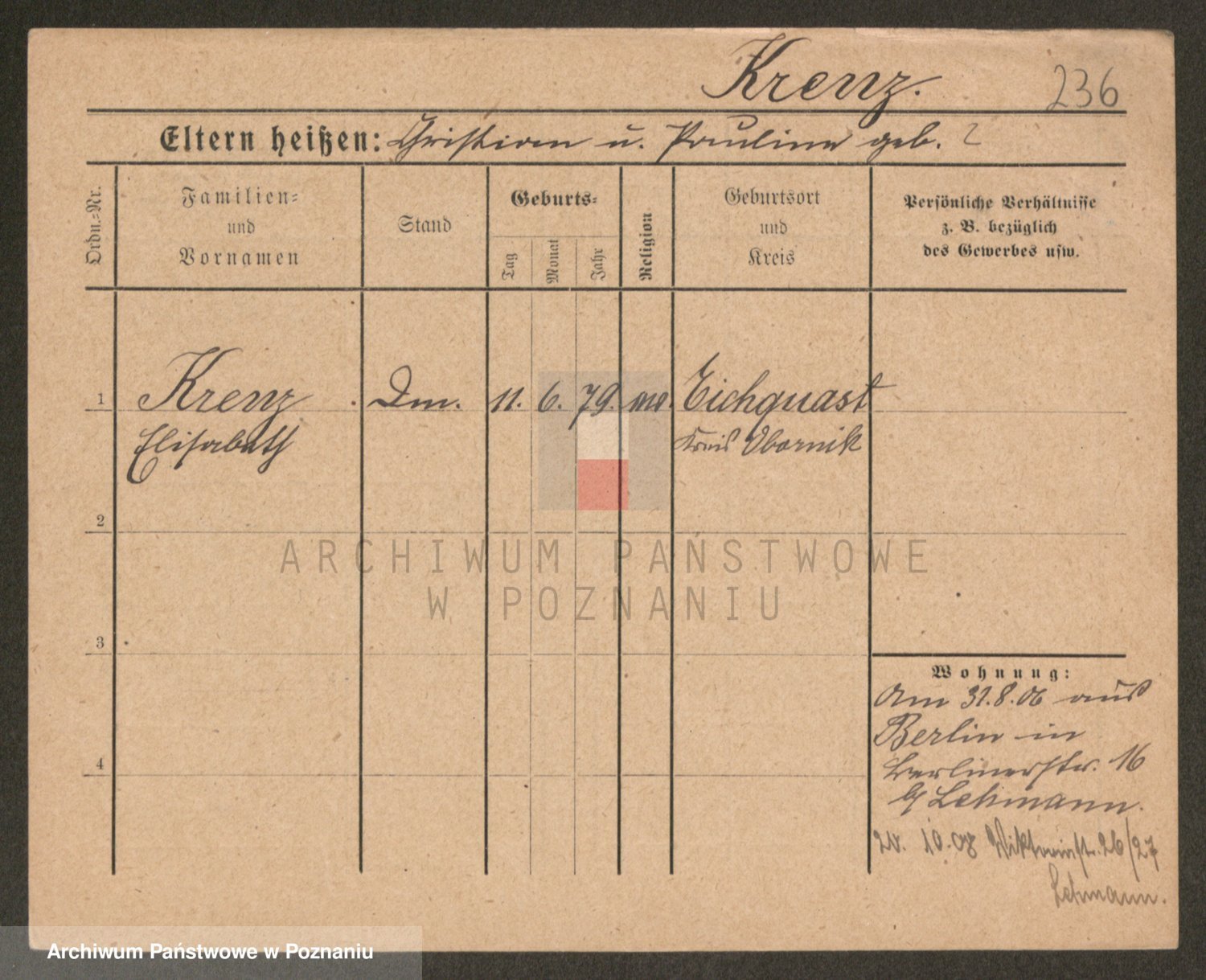 Krenz z d. Kunze, Hedwig Ida Emma