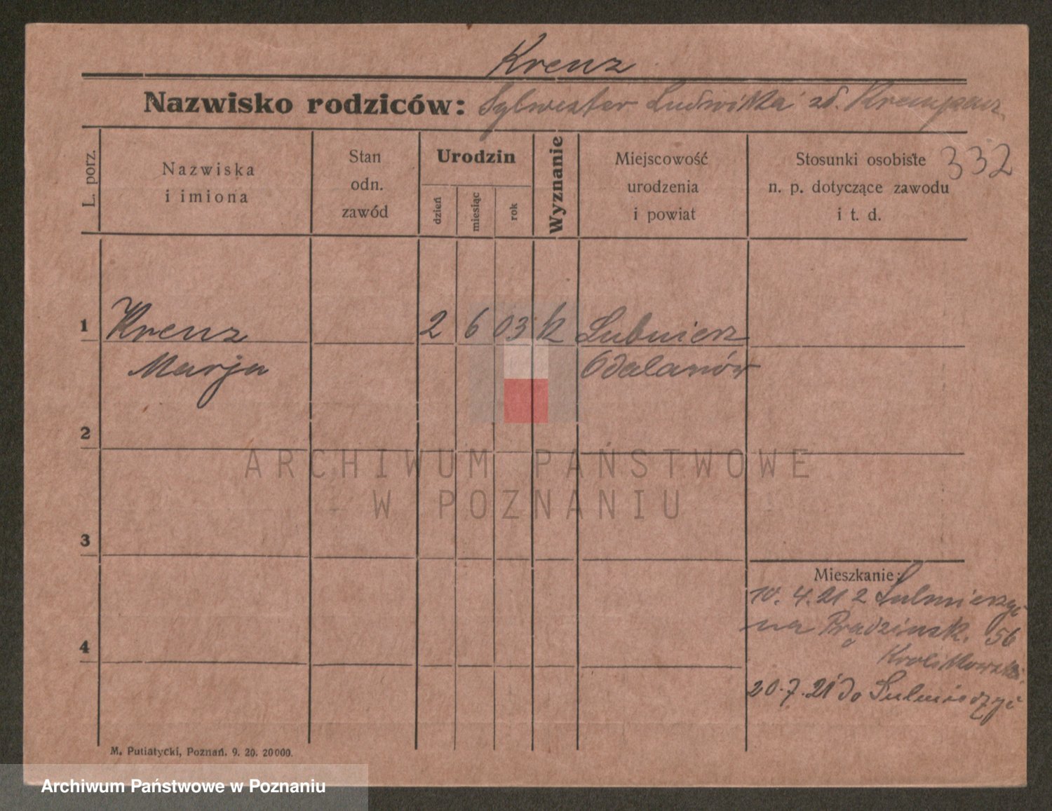 Krenz z d. Gaczych, Marja