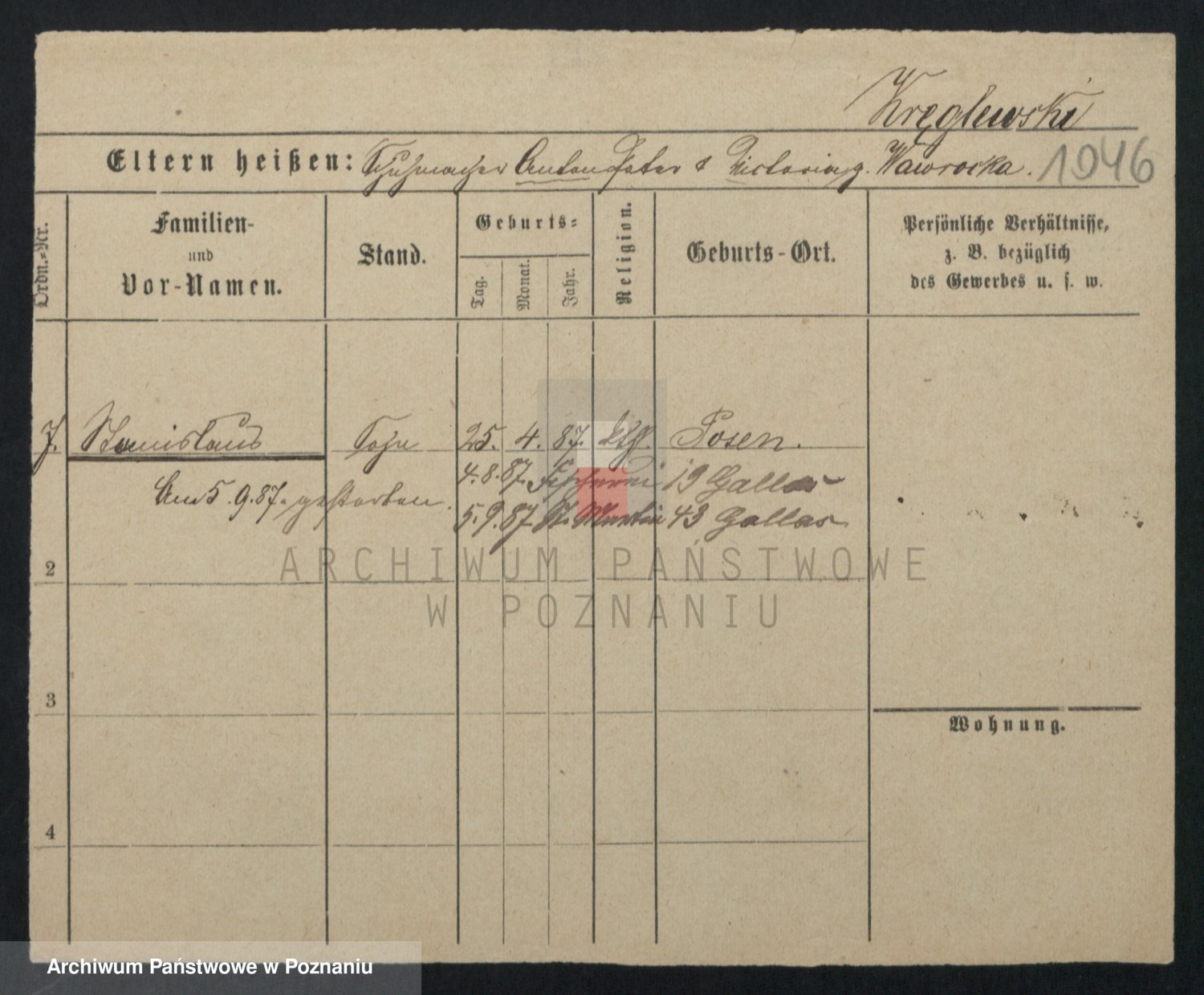 Kręglewski z d. Krzywinska, Stanisława