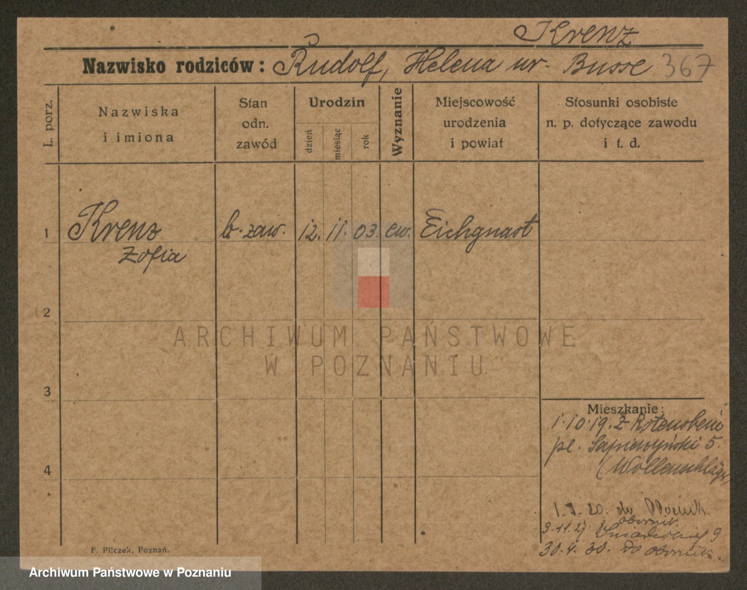 Krenz z d. Szymaniewska, Sofie