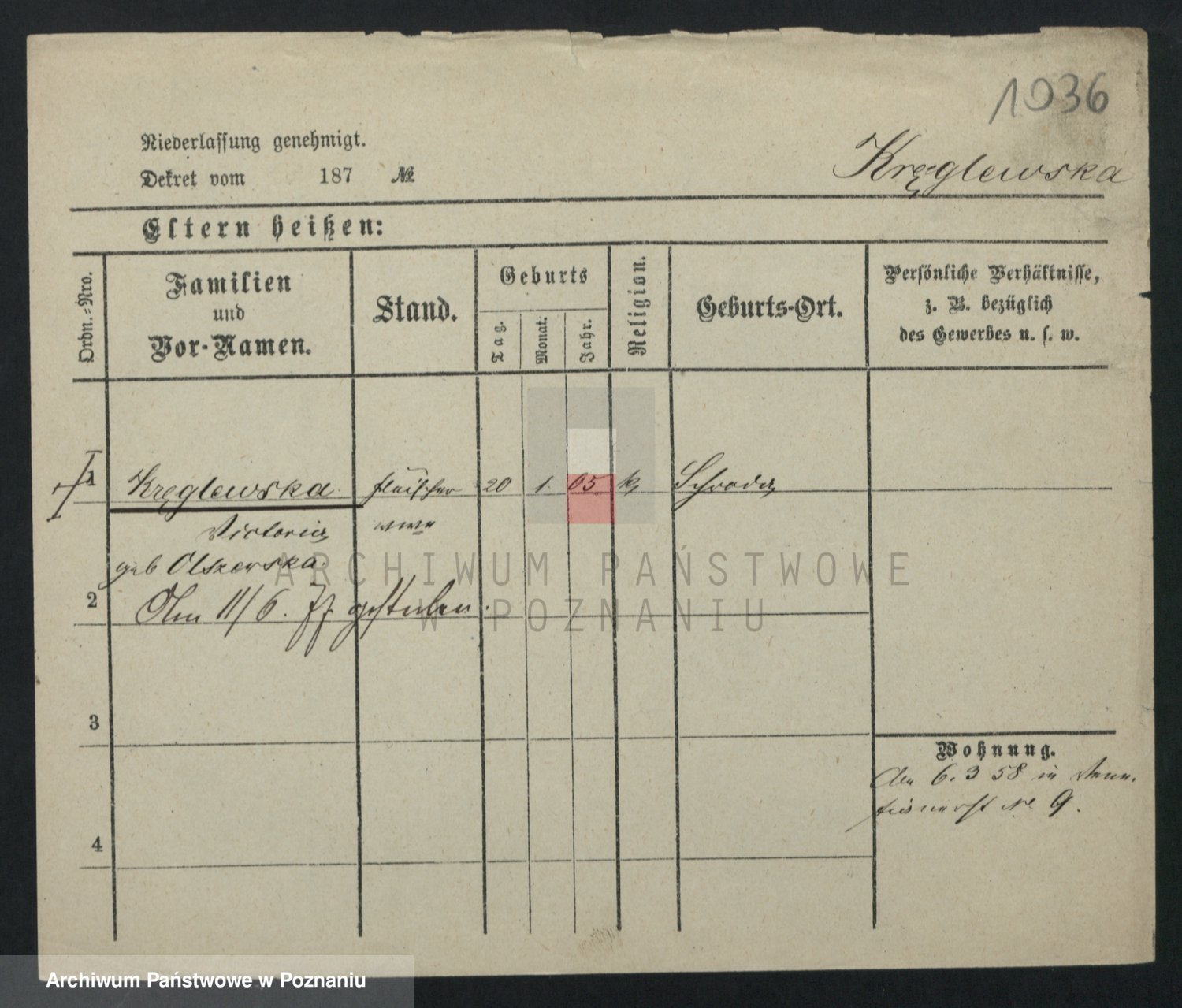 Kręglewski z d. Olszewska, Wictoria