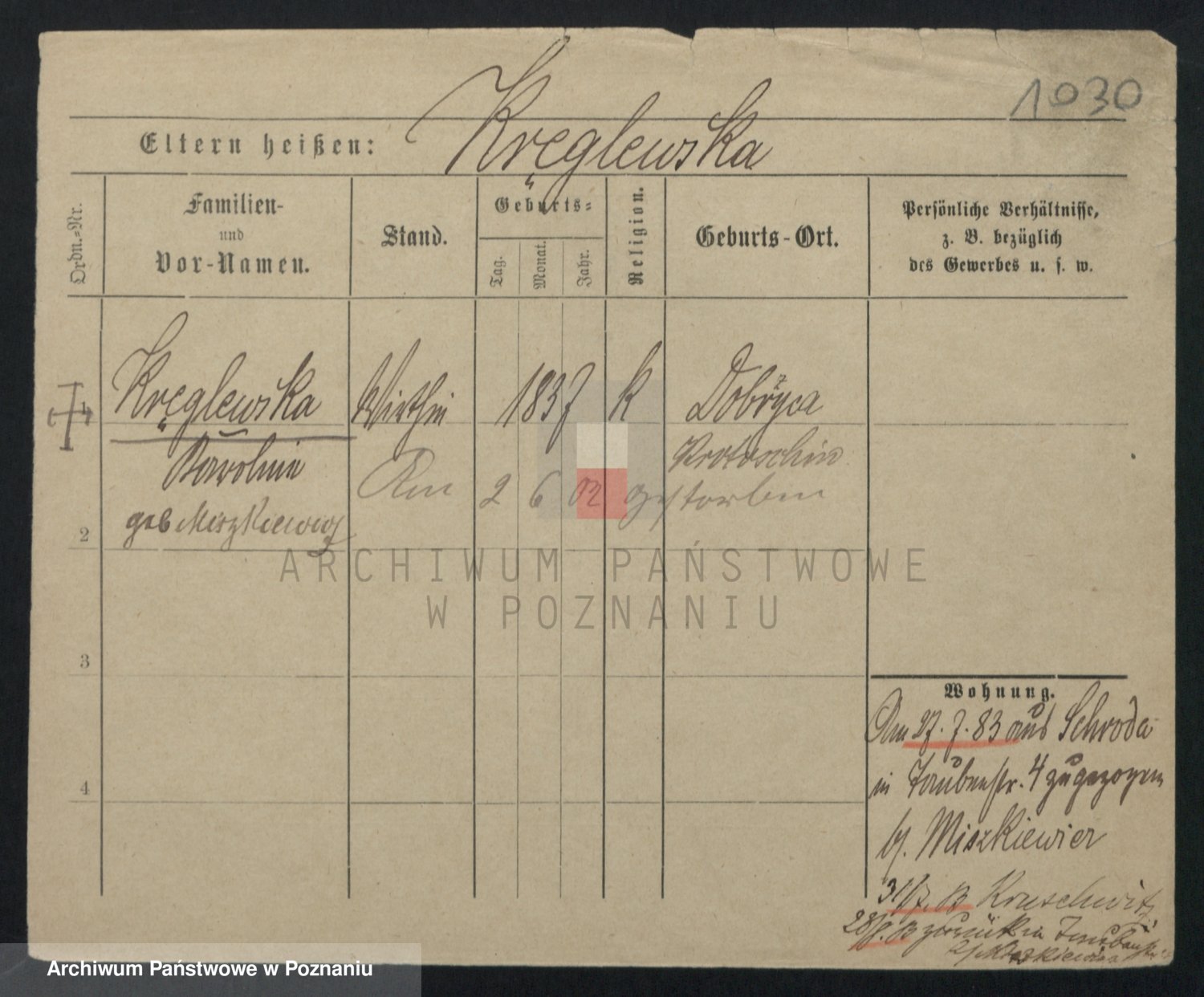 Kręglewska z d. Miszkiewicz, Karoline