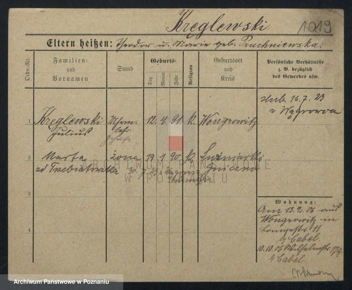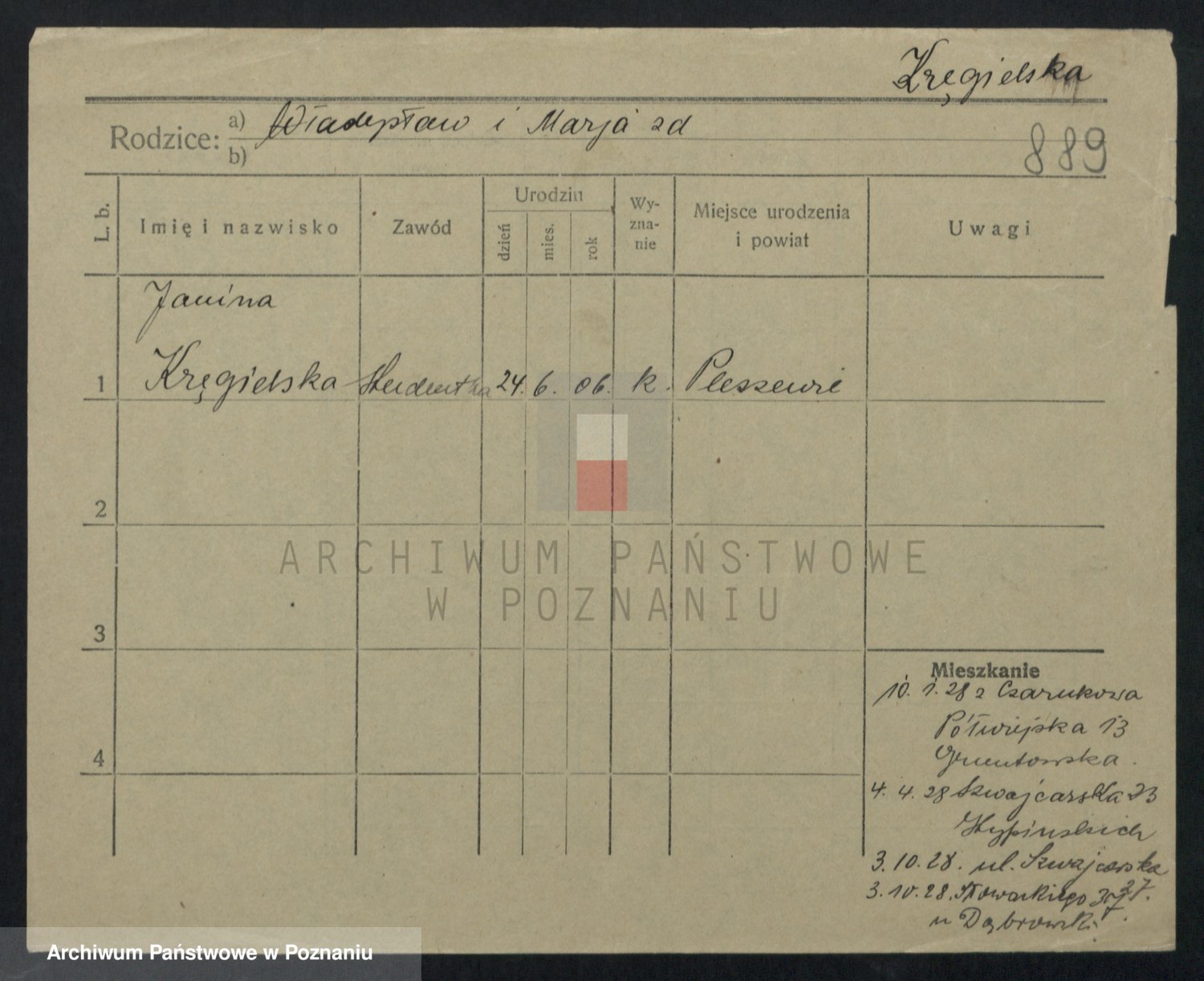 Kręglewska z d. Pruchniewska, Marja