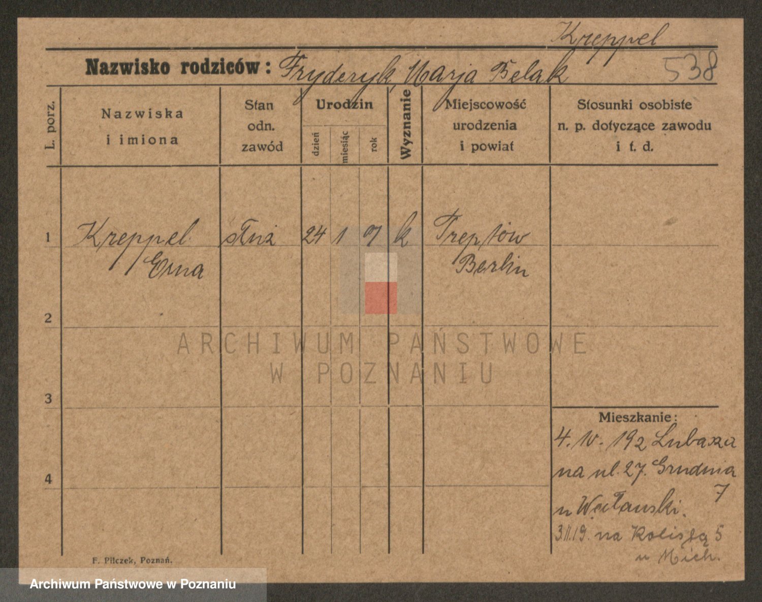 Krenz, Anna Frieda