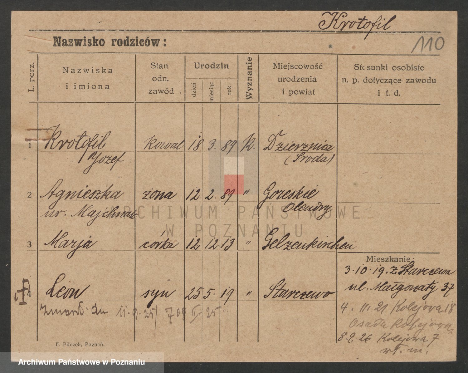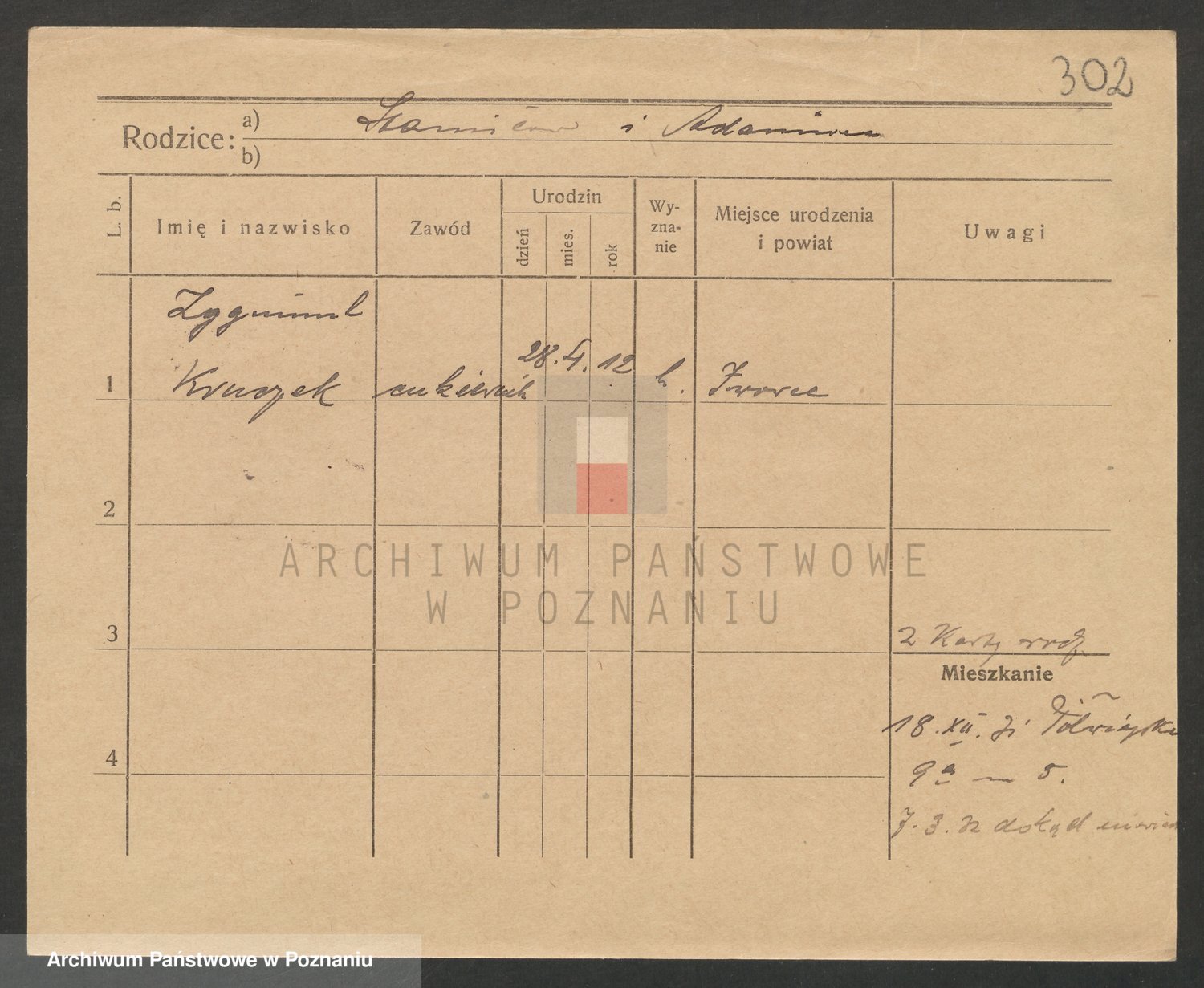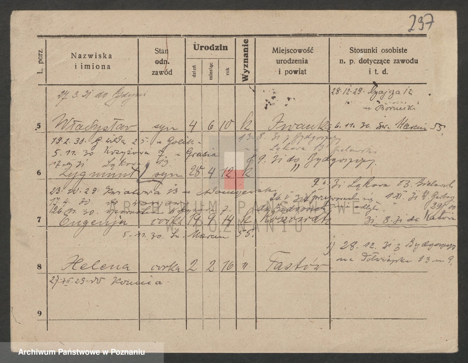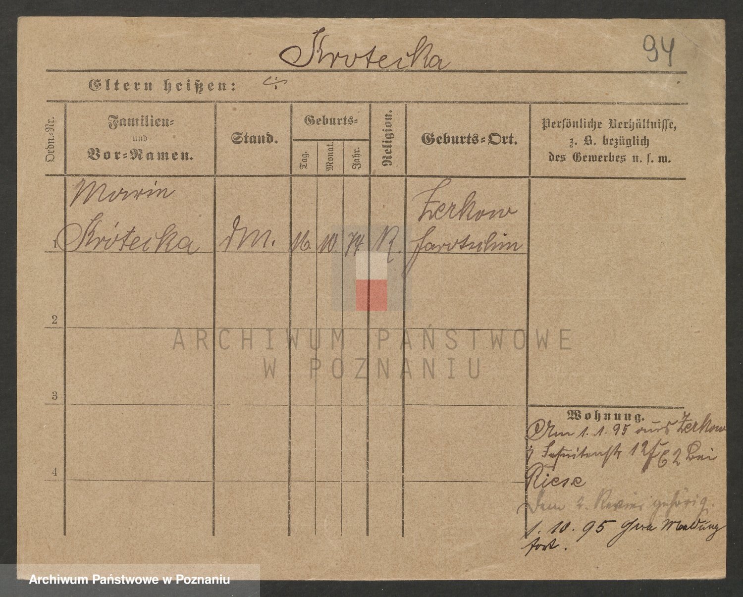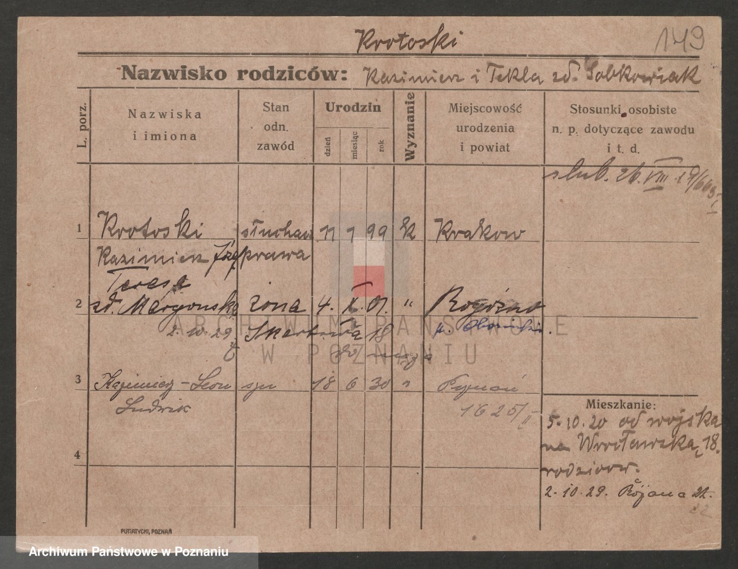Podgląd karty osobowej dostępny jest po kliknięciu na nazwisko lub ikonkę karty. Można dokonywać powiększenia (ikony na górze) lub przechodzić między kolejnymi skanami (strzałki po bokach).