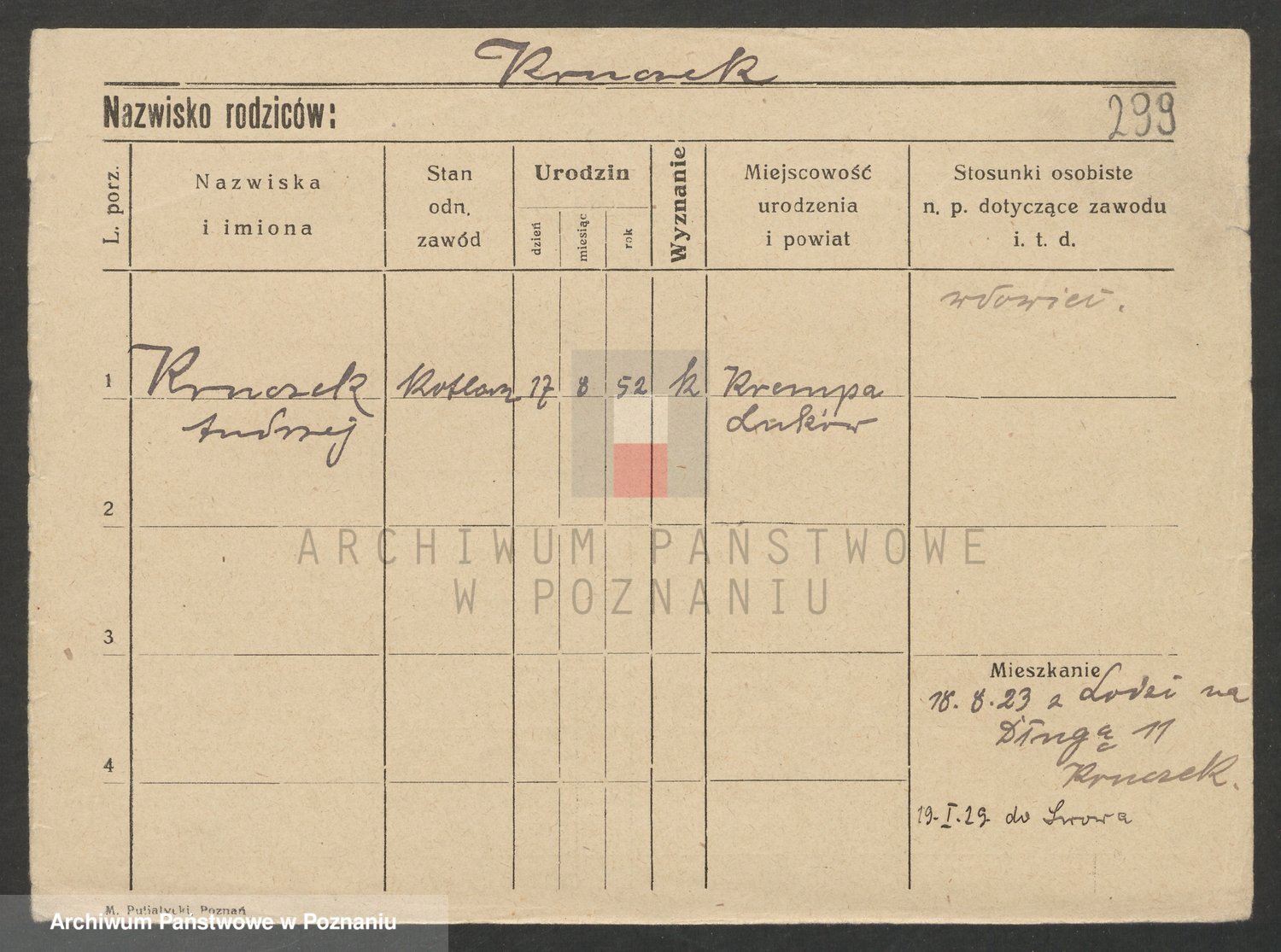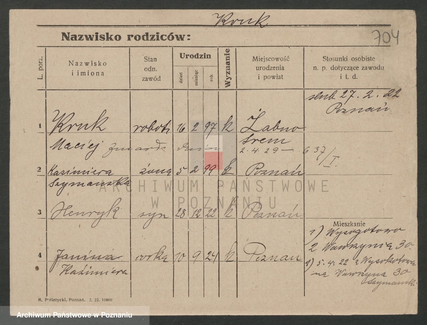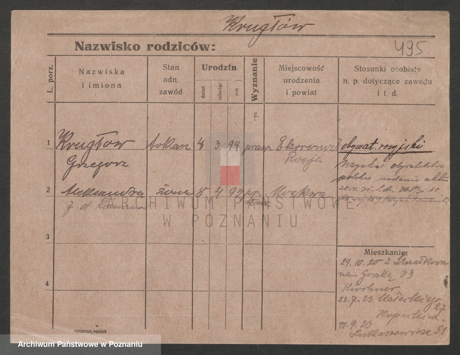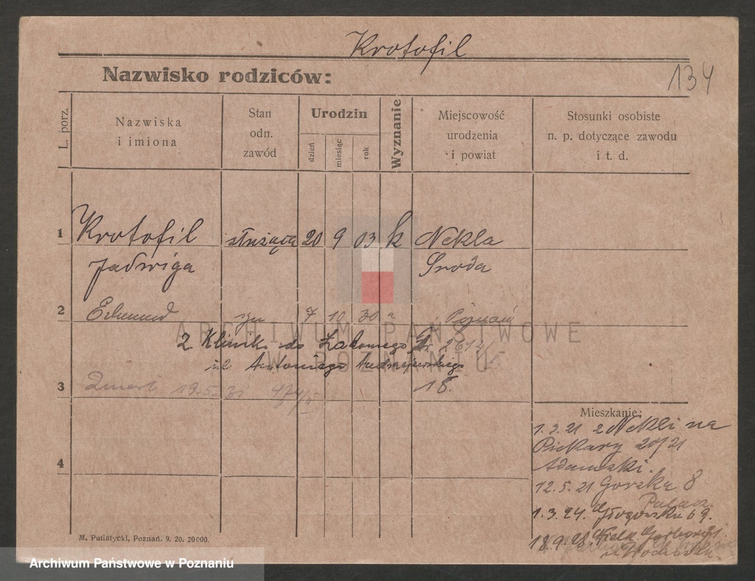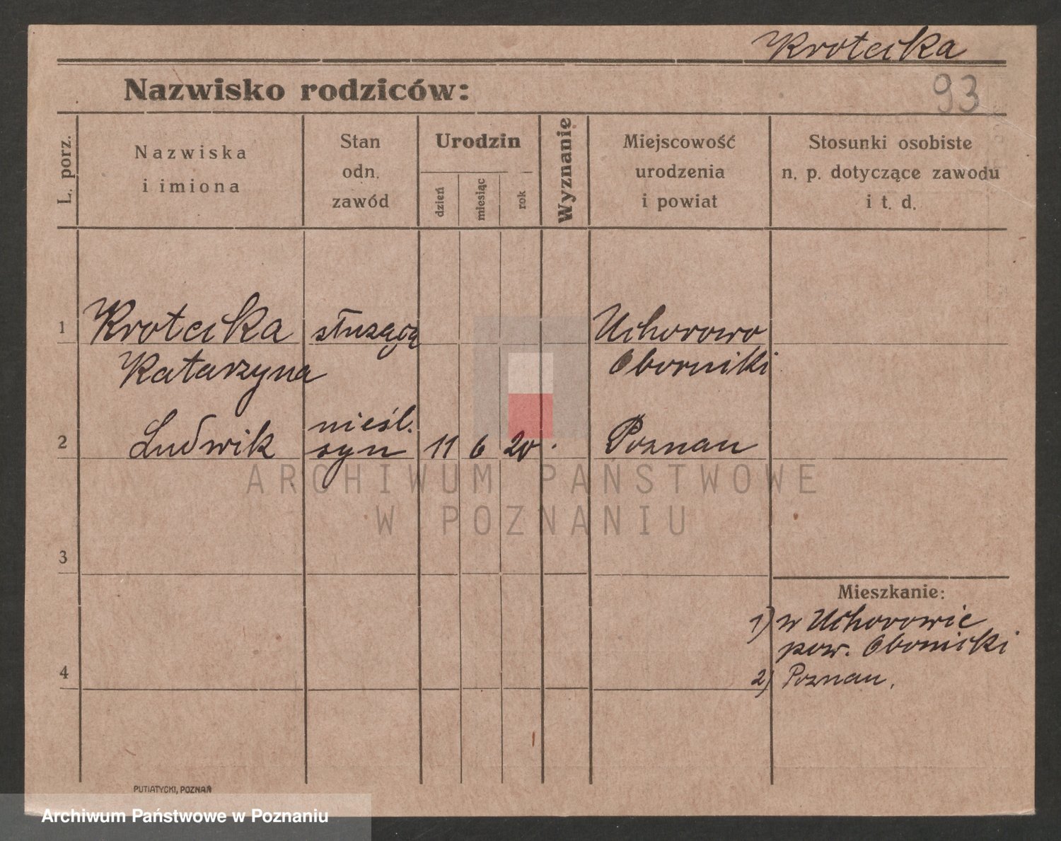 Podgląd karty osobowej dostępny jest po kliknięciu na nazwisko lub ikonkę karty. Można dokonywać powiększenia (ikony na górze) lub przechodzić między kolejnymi skanami (strzałki po bokach).