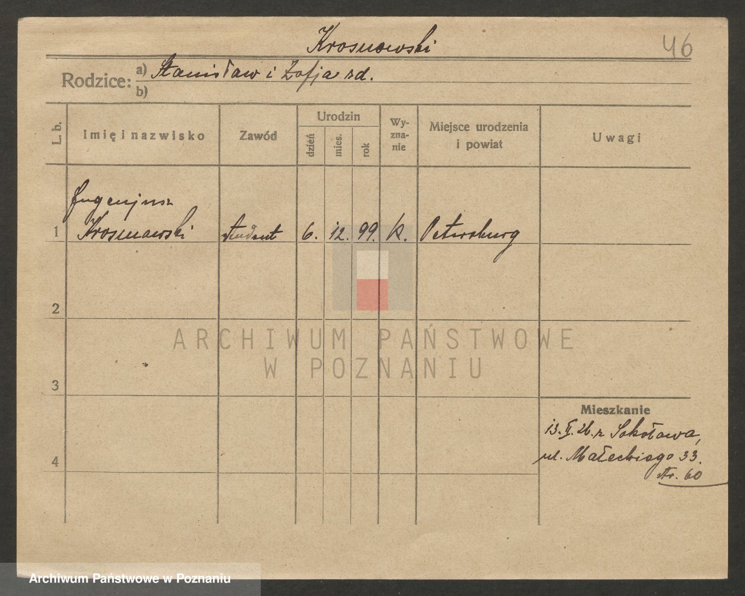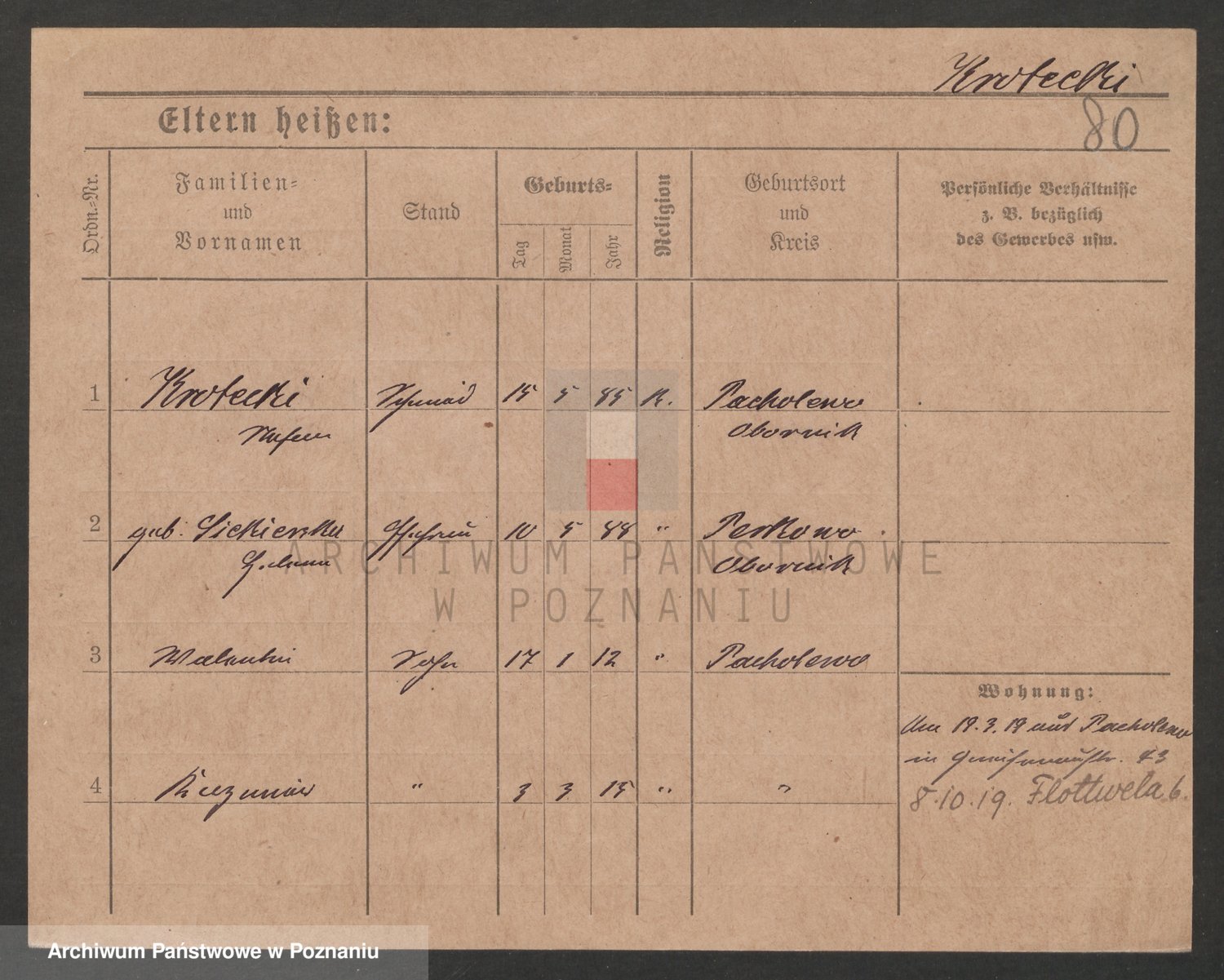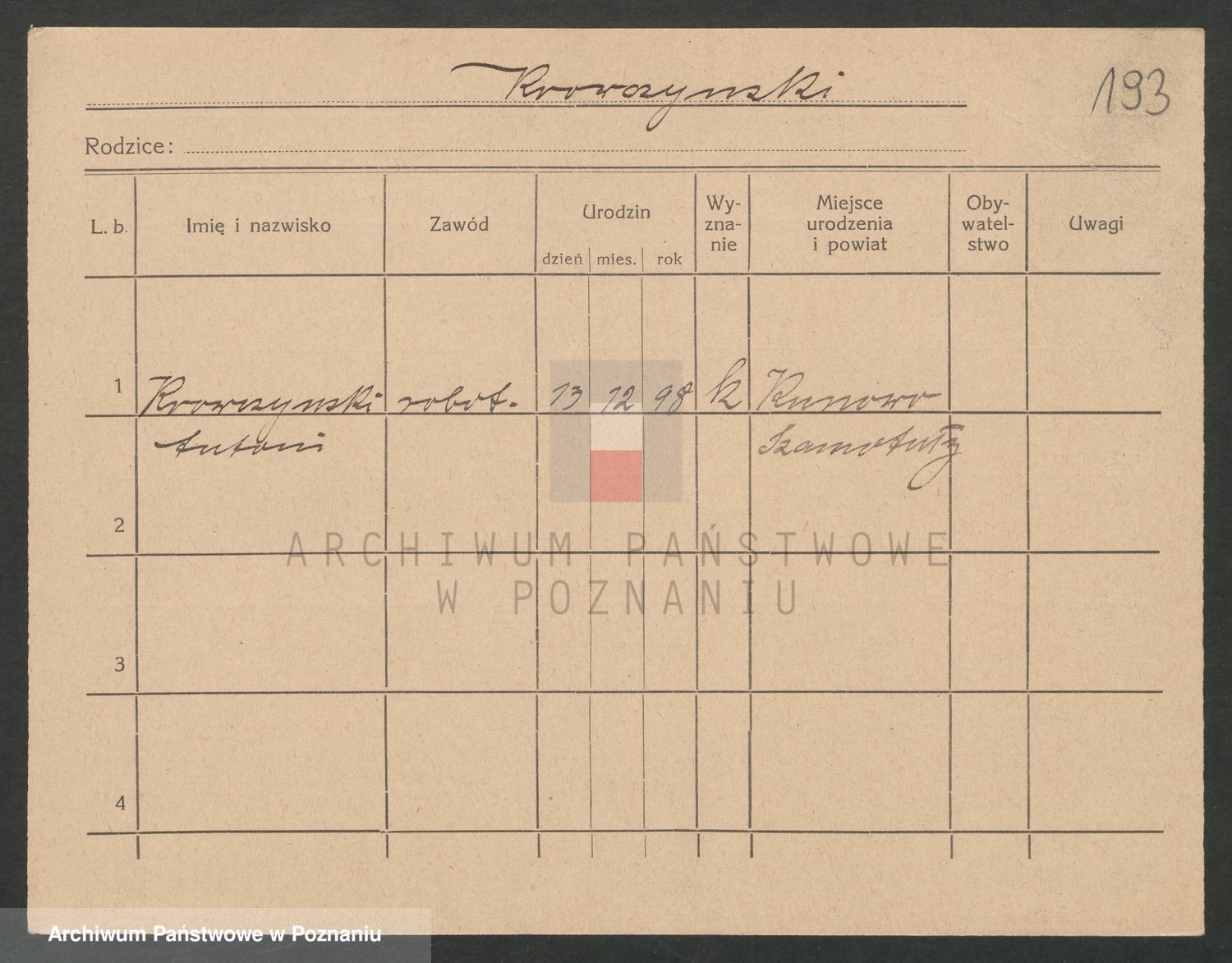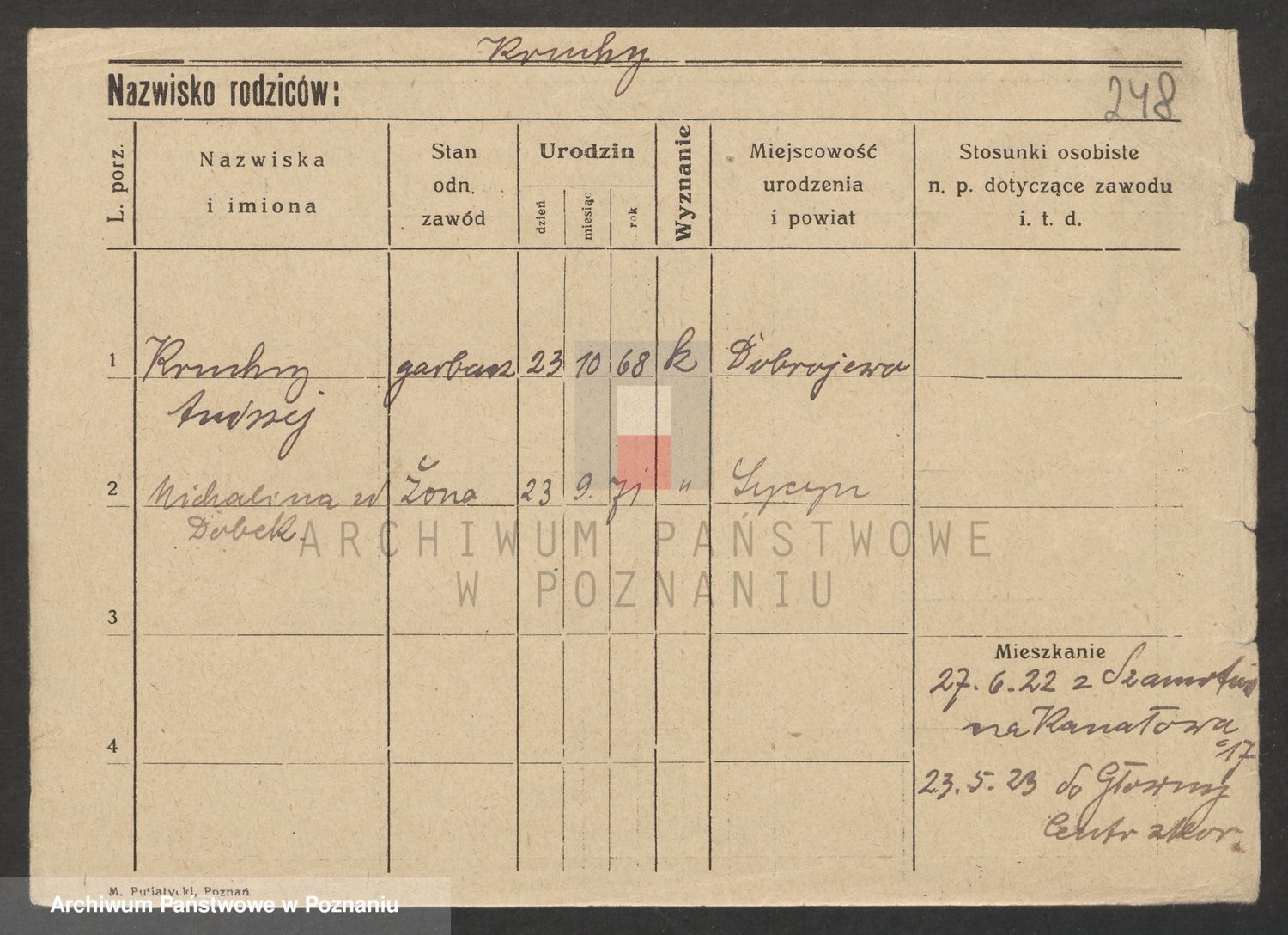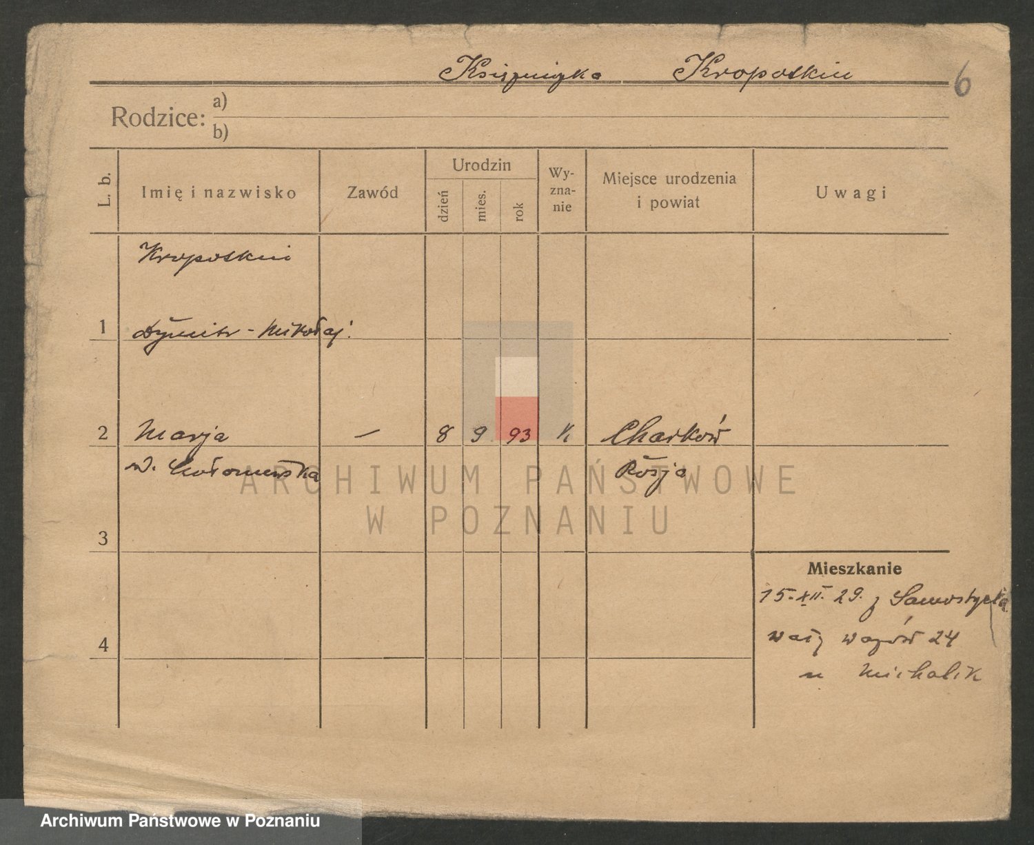 Podgląd karty osobowej dostępny jest po kliknięciu na nazwisko lub ikonkę karty. Można dokonywać powiększenia (ikony na górze) lub przechodzić między kolejnymi skanami (strzałki po bokach).