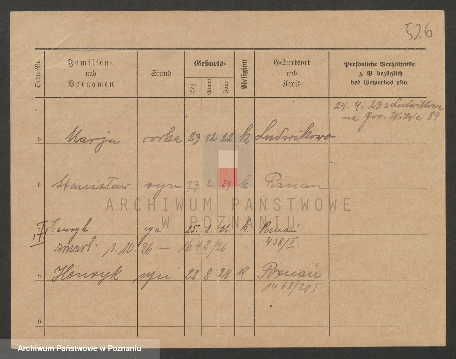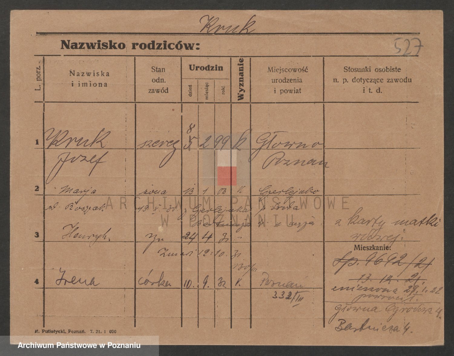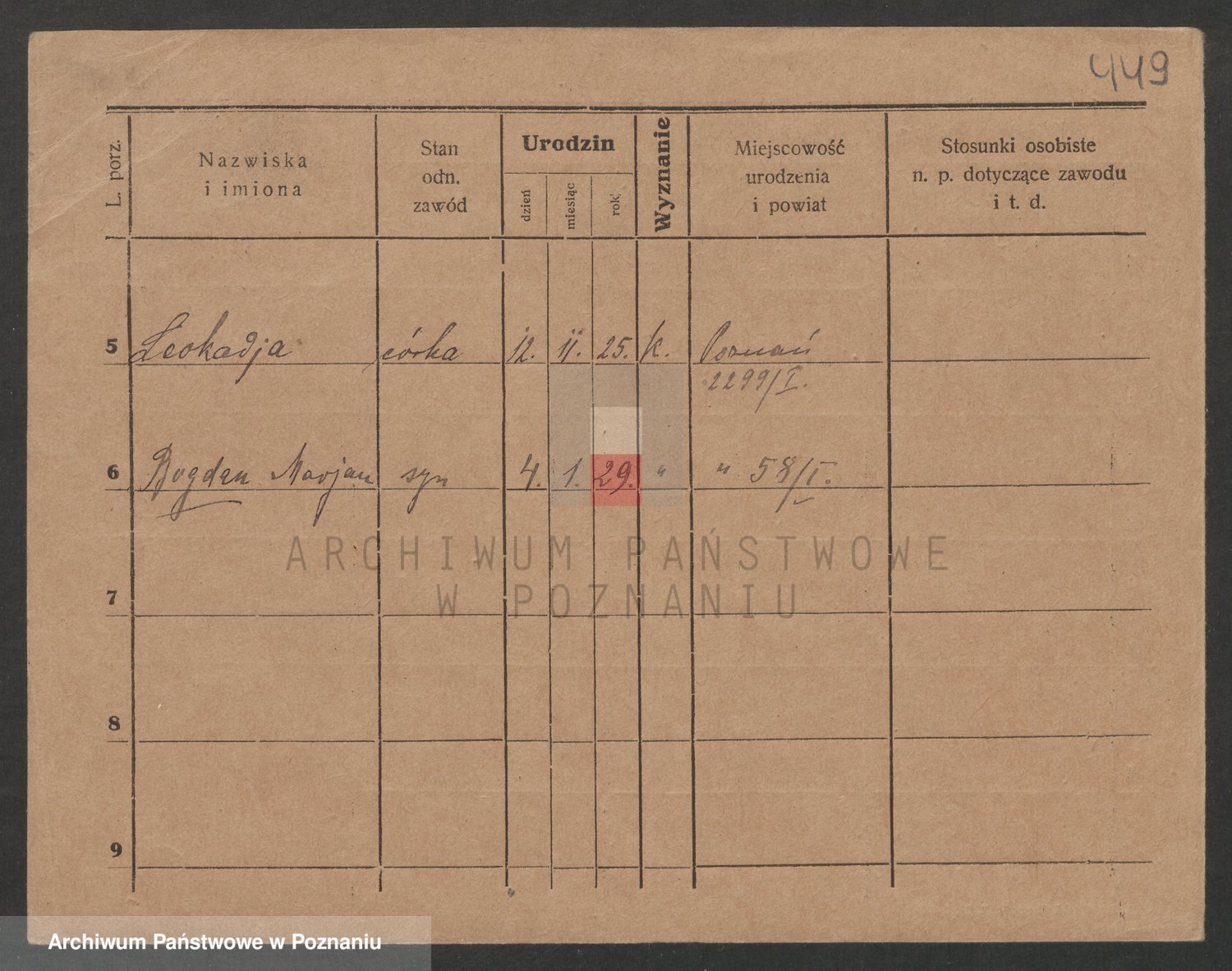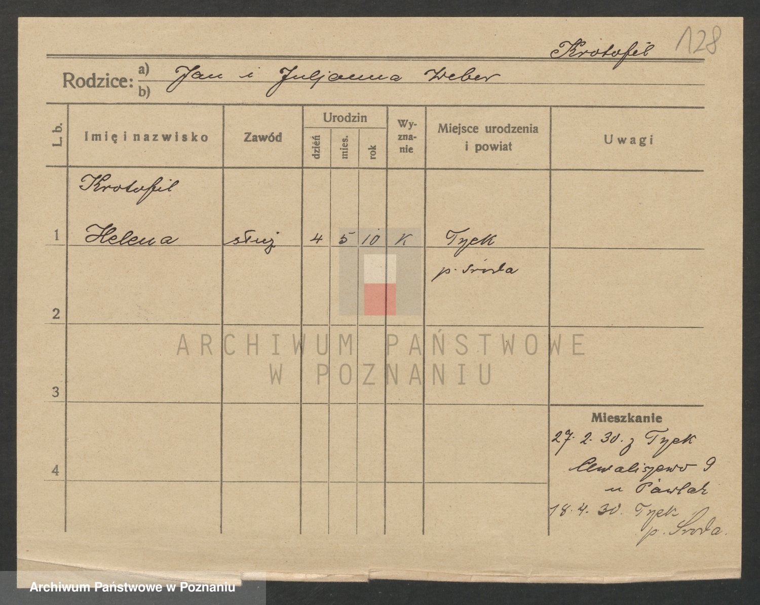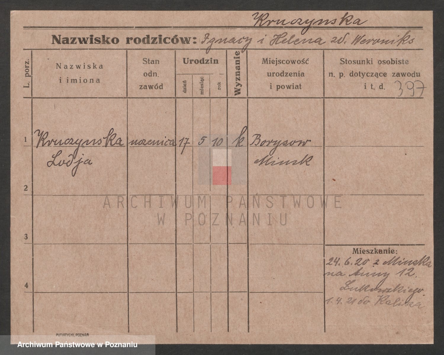 Podgląd karty osobowej dostępny jest po kliknięciu na nazwisko lub ikonkę karty. Można dokonywać powiększenia (ikony na górze) lub przechodzić między kolejnymi skanami (strzałki po bokach).