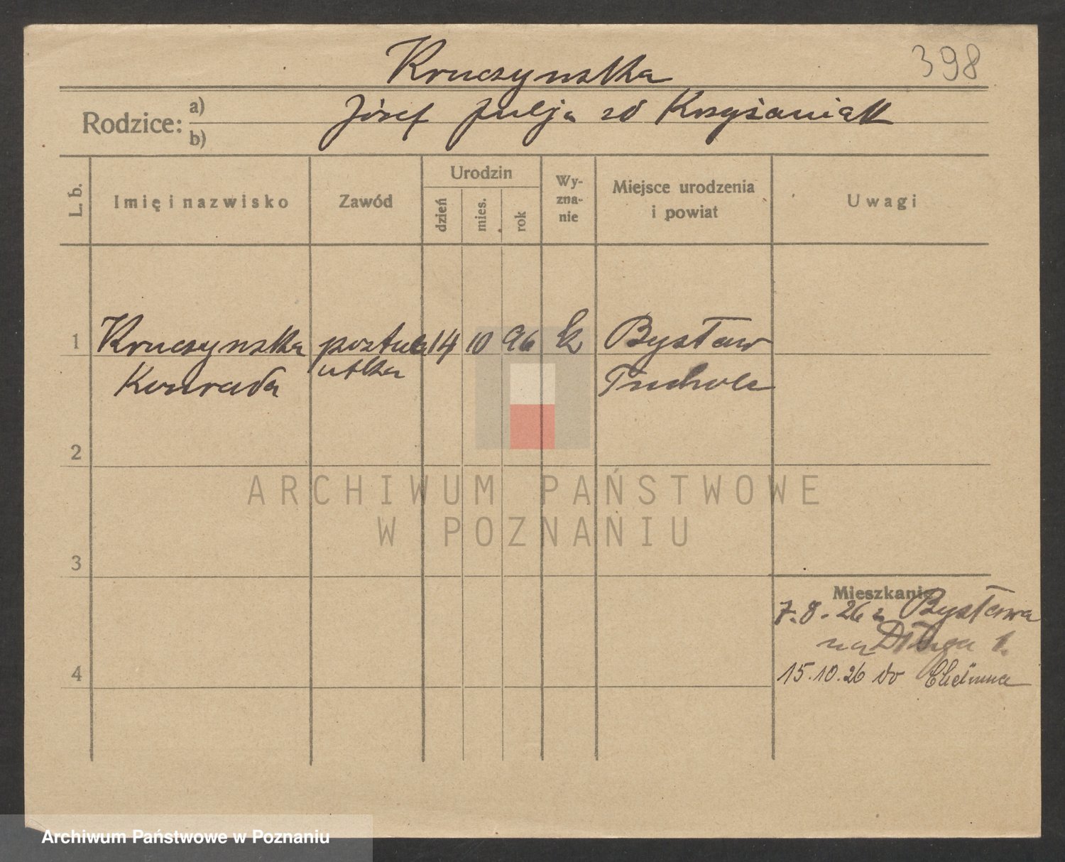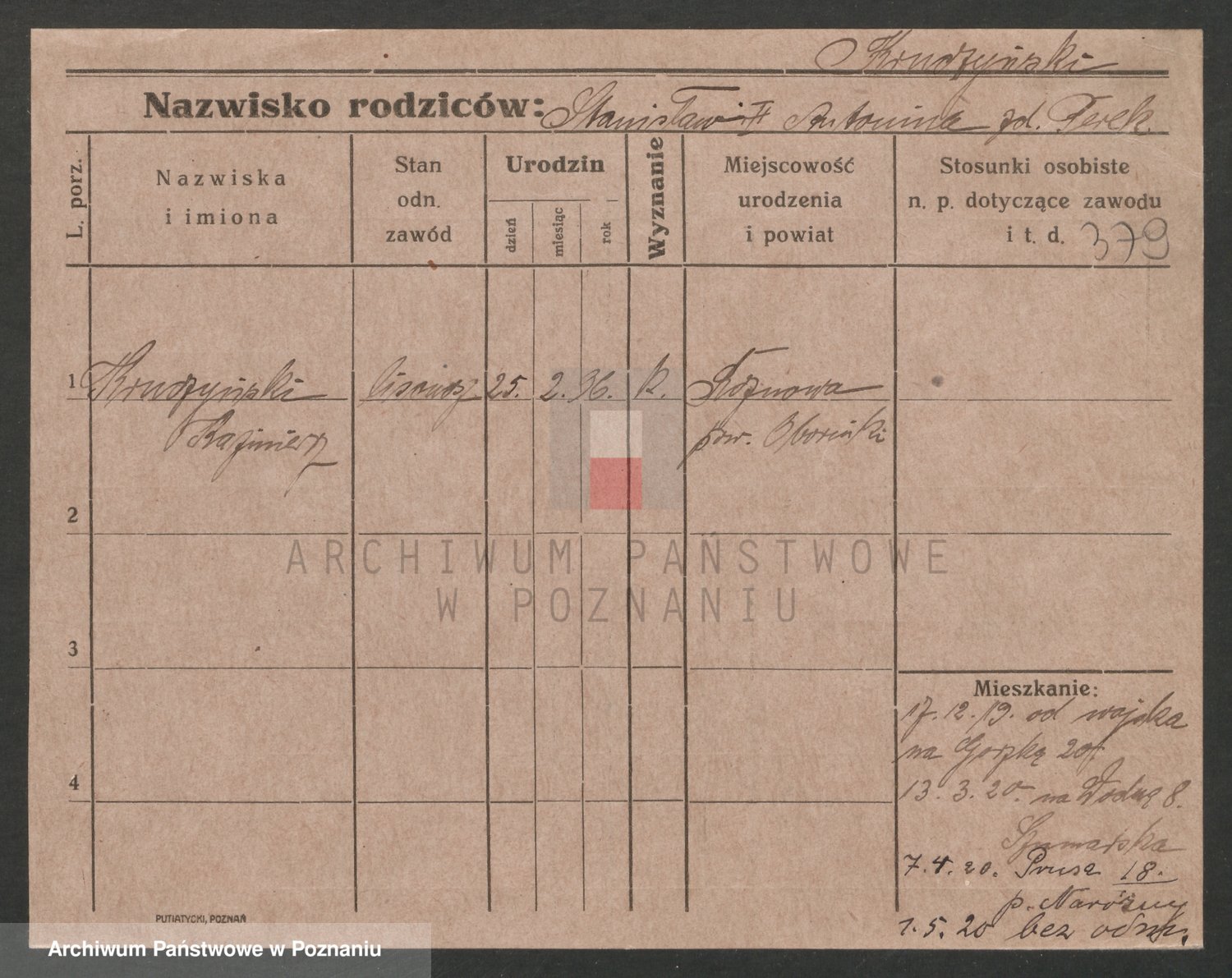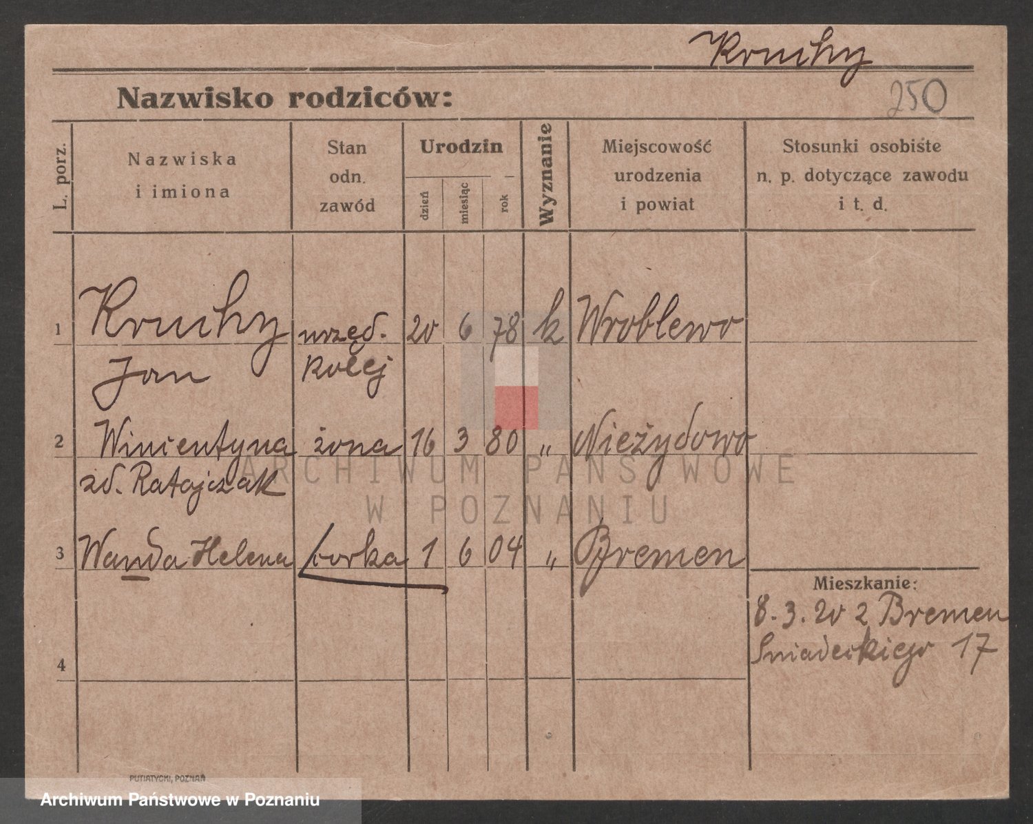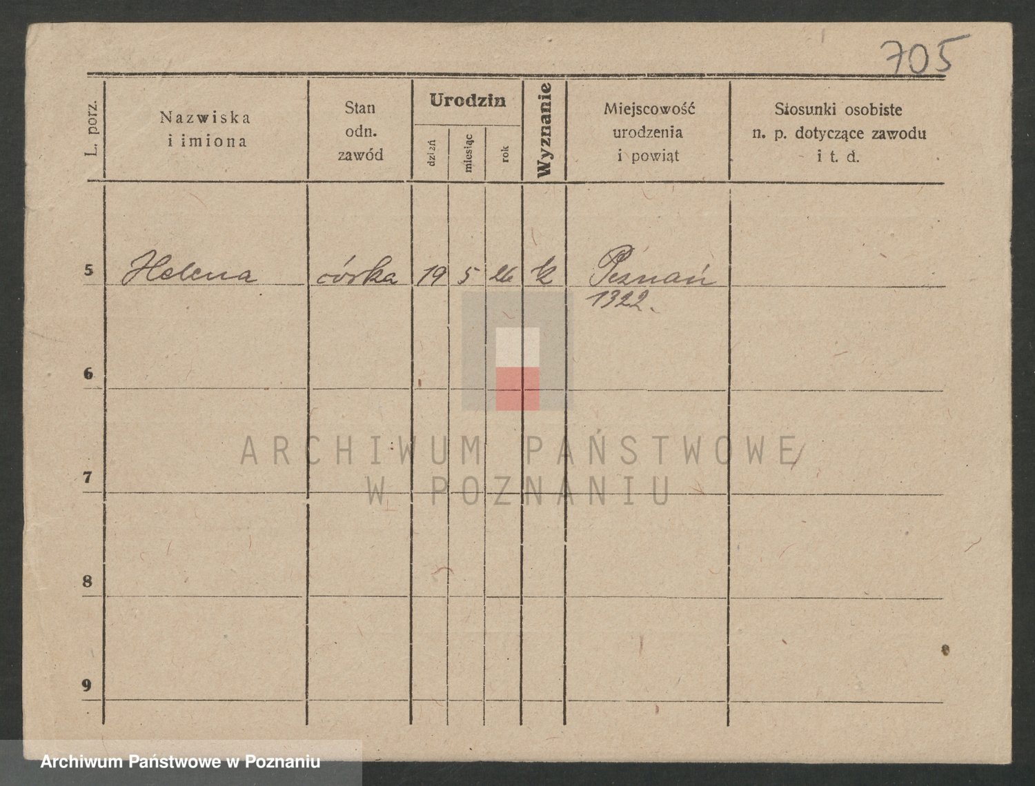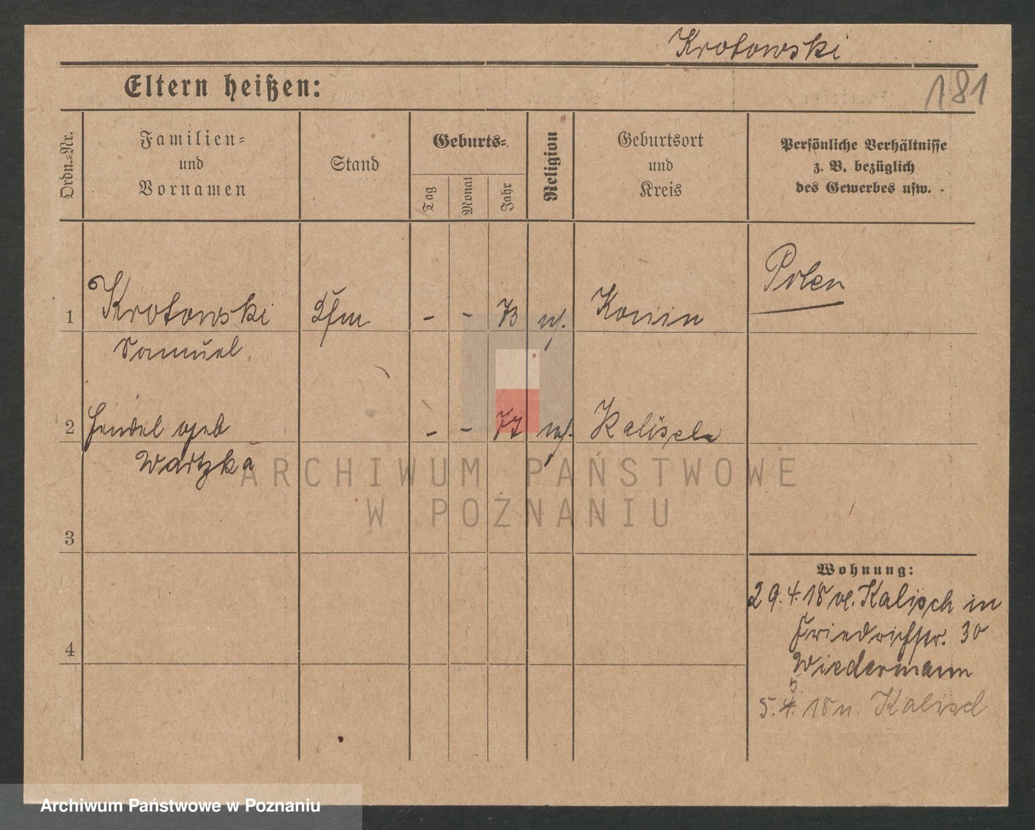 Podgląd karty osobowej dostępny jest po kliknięciu na nazwisko lub ikonkę karty. Można dokonywać powiększenia (ikony na górze) lub przechodzić między kolejnymi skanami (strzałki po bokach).