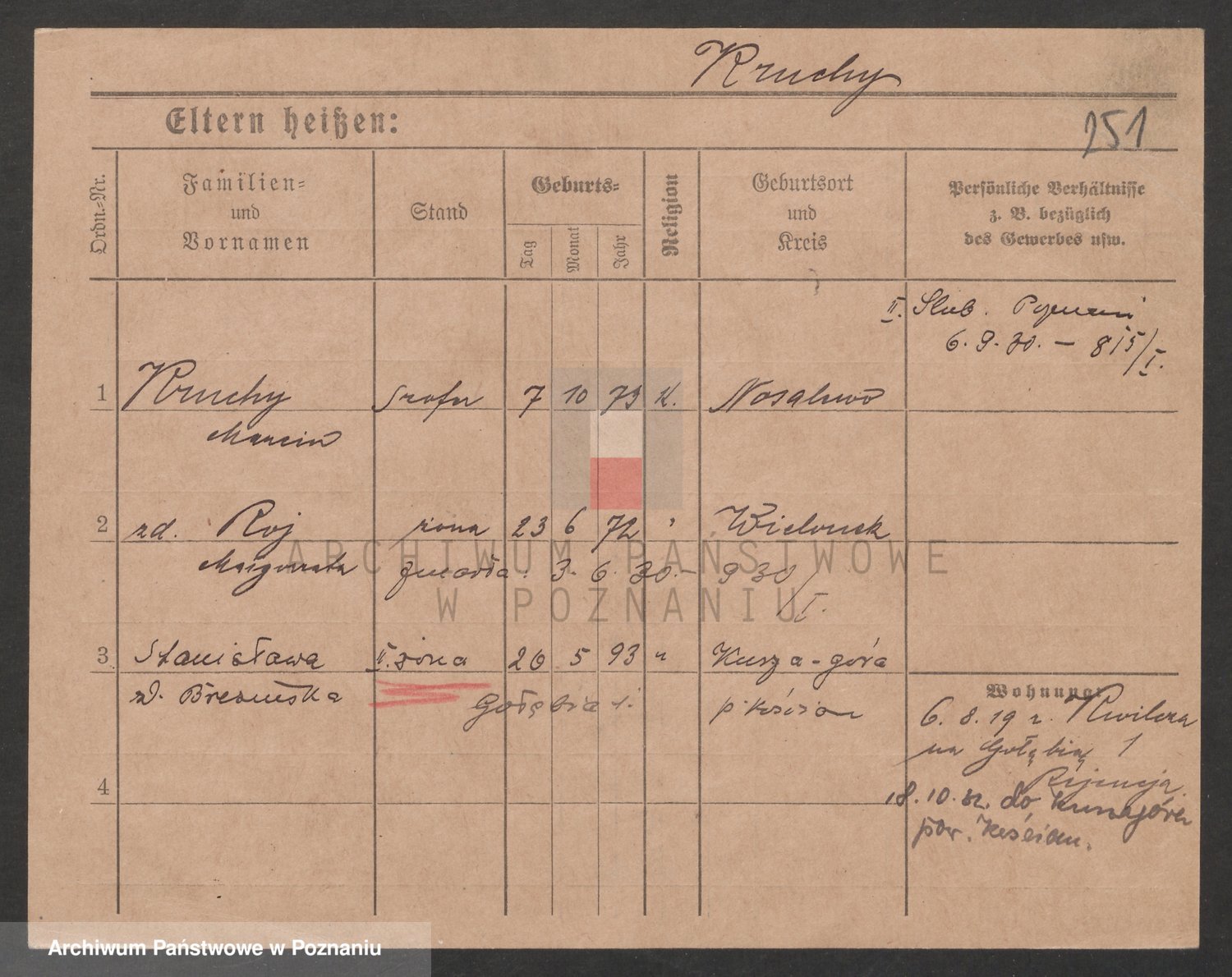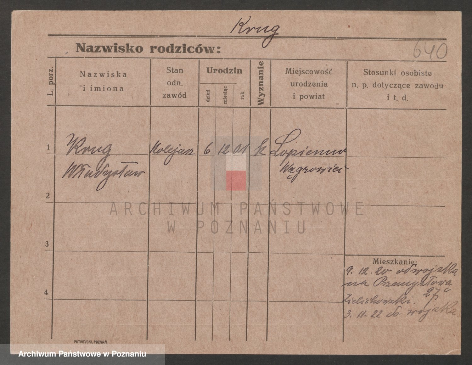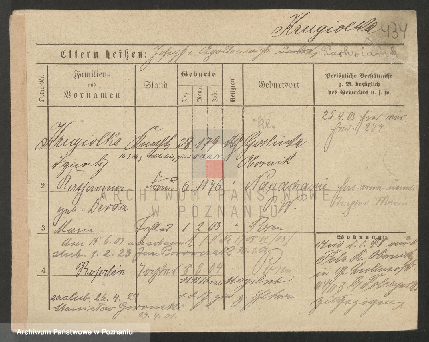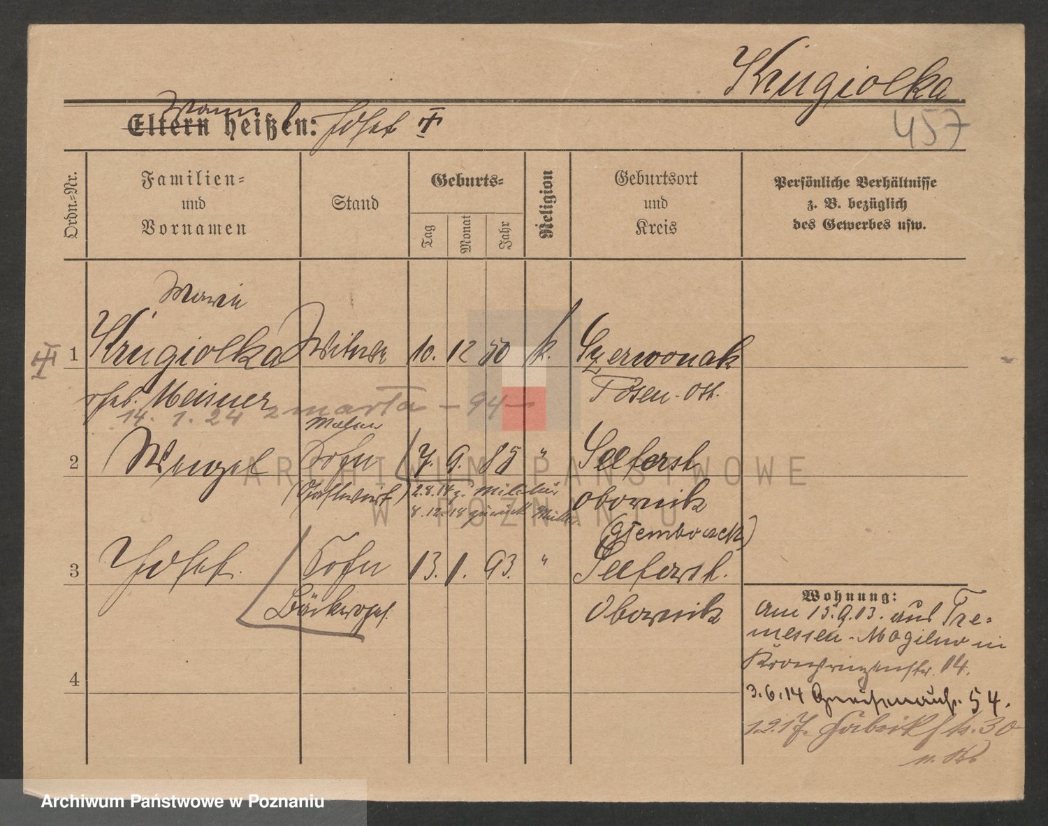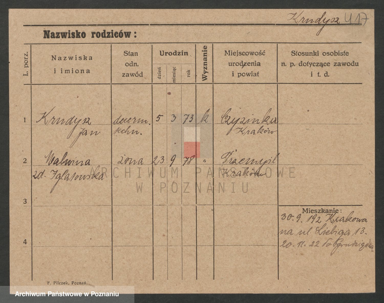 Podgląd karty osobowej dostępny jest po kliknięciu na nazwisko lub ikonkę karty. Można dokonywać powiększenia (ikony na górze) lub przechodzić między kolejnymi skanami (strzałki po bokach).