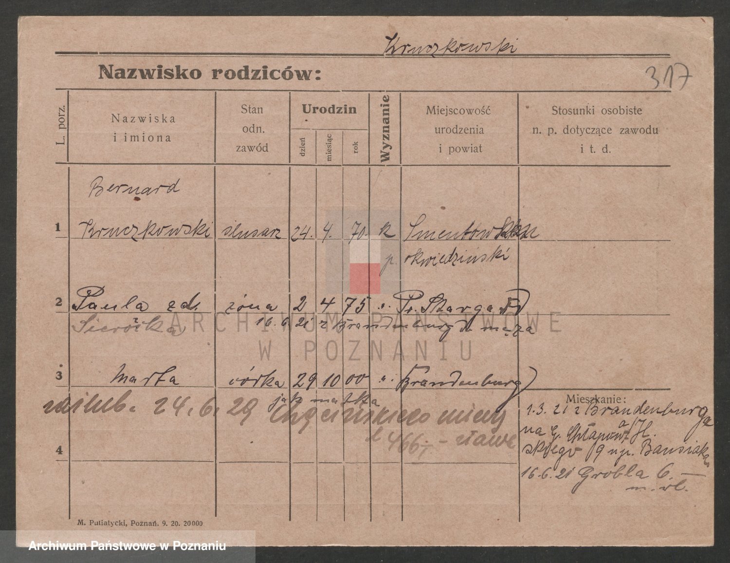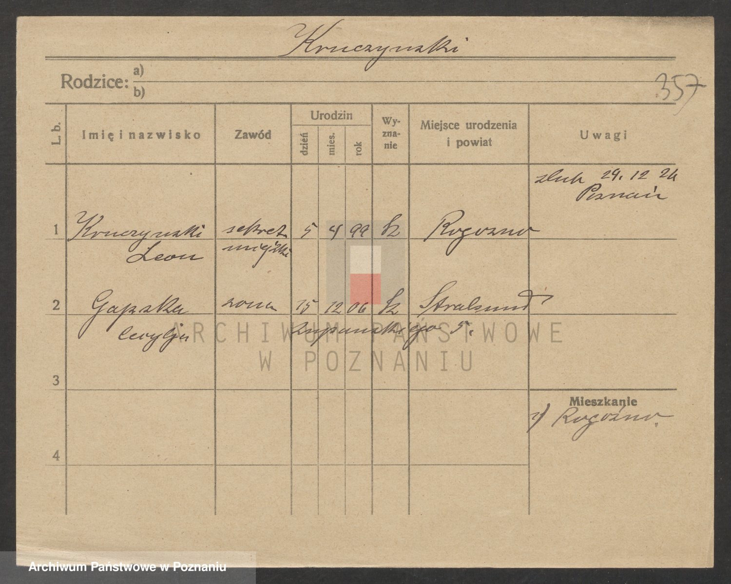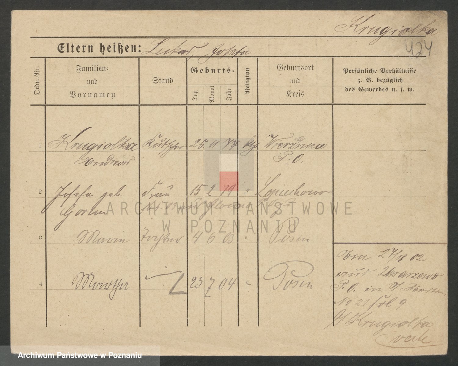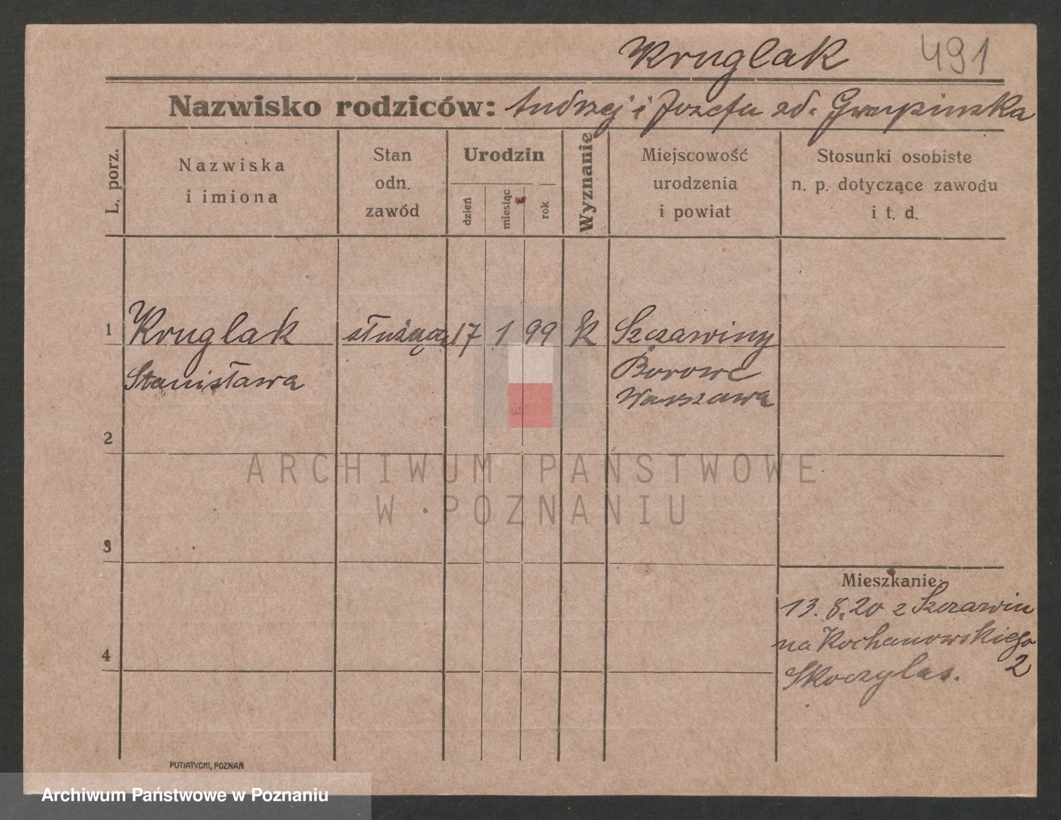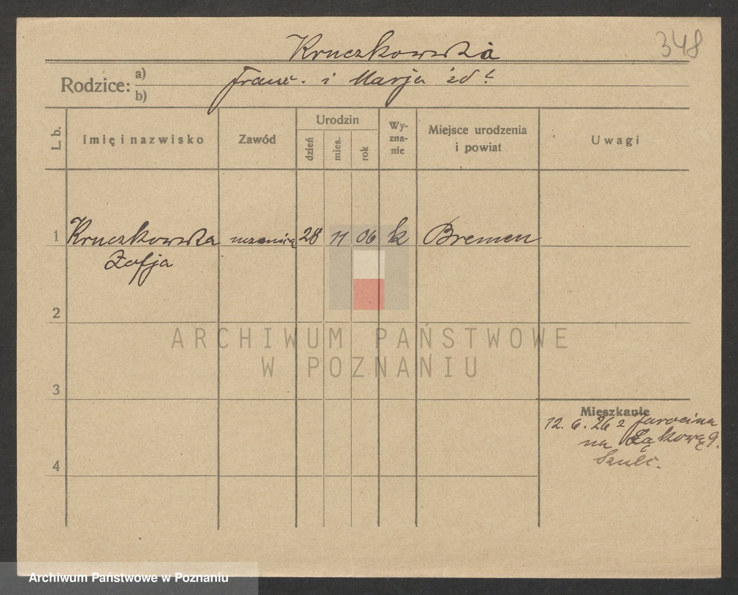Podgląd karty osobowej dostępny jest po kliknięciu na nazwisko lub ikonkę karty. Można dokonywać powiększenia (ikony na górze) lub przechodzić między kolejnymi skanami (strzałki po bokach).