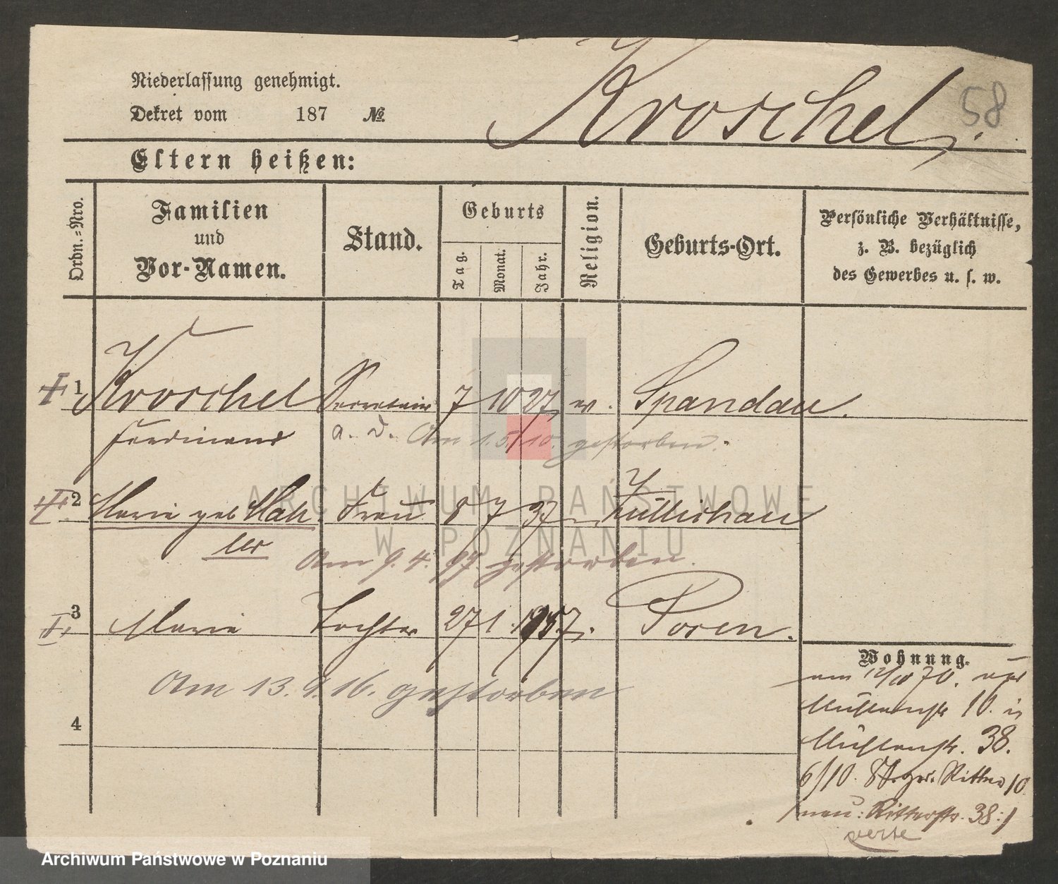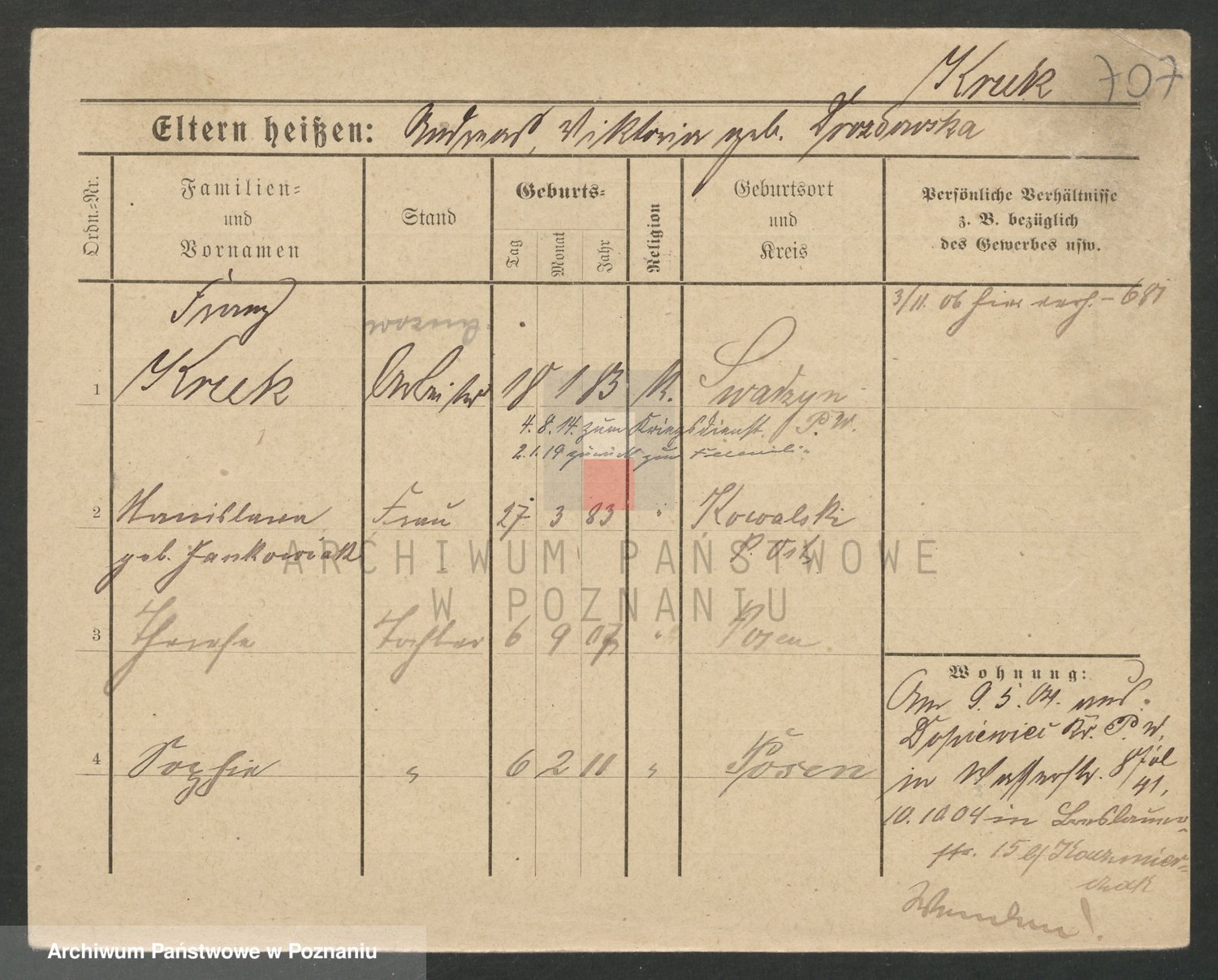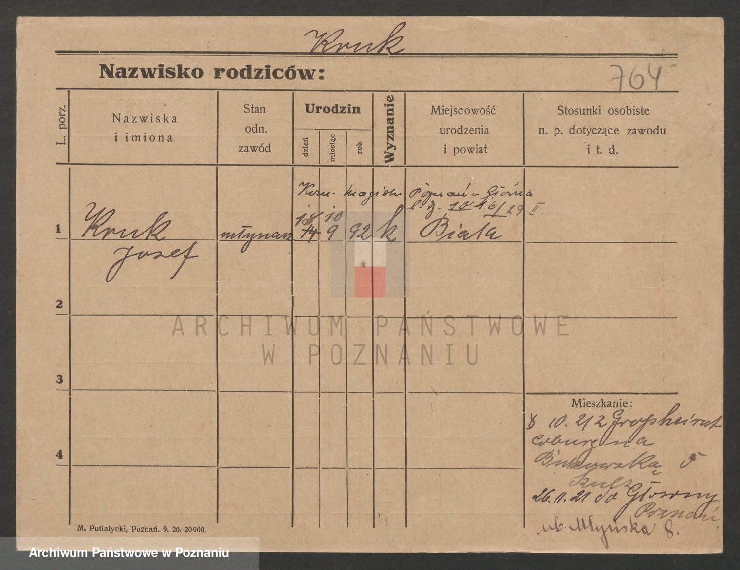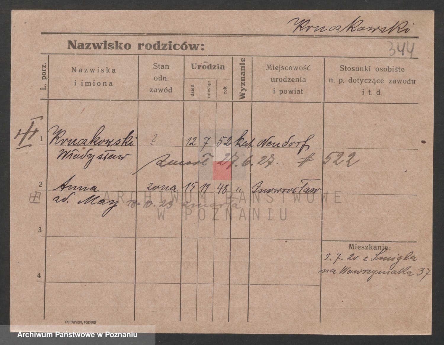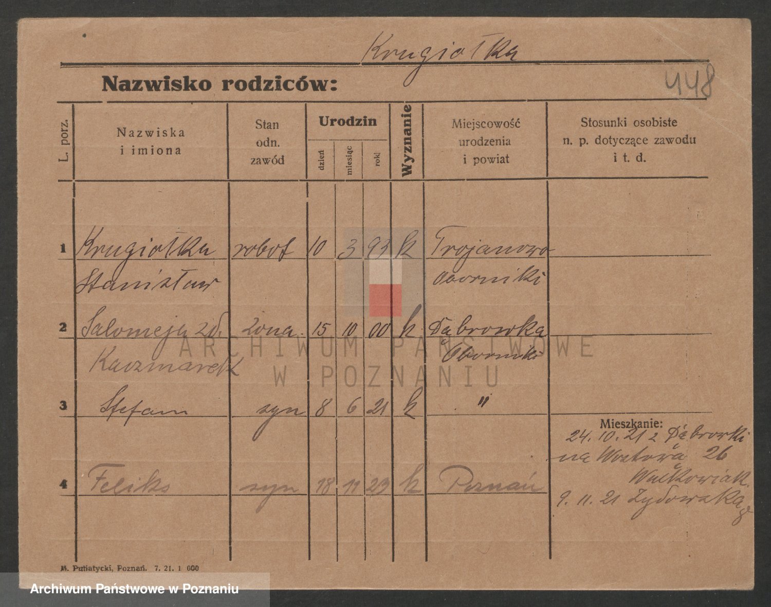 Podgląd karty osobowej dostępny jest po kliknięciu na nazwisko lub ikonkę karty. Można dokonywać powiększenia (ikony na górze) lub przechodzić między kolejnymi skanami (strzałki po bokach).
