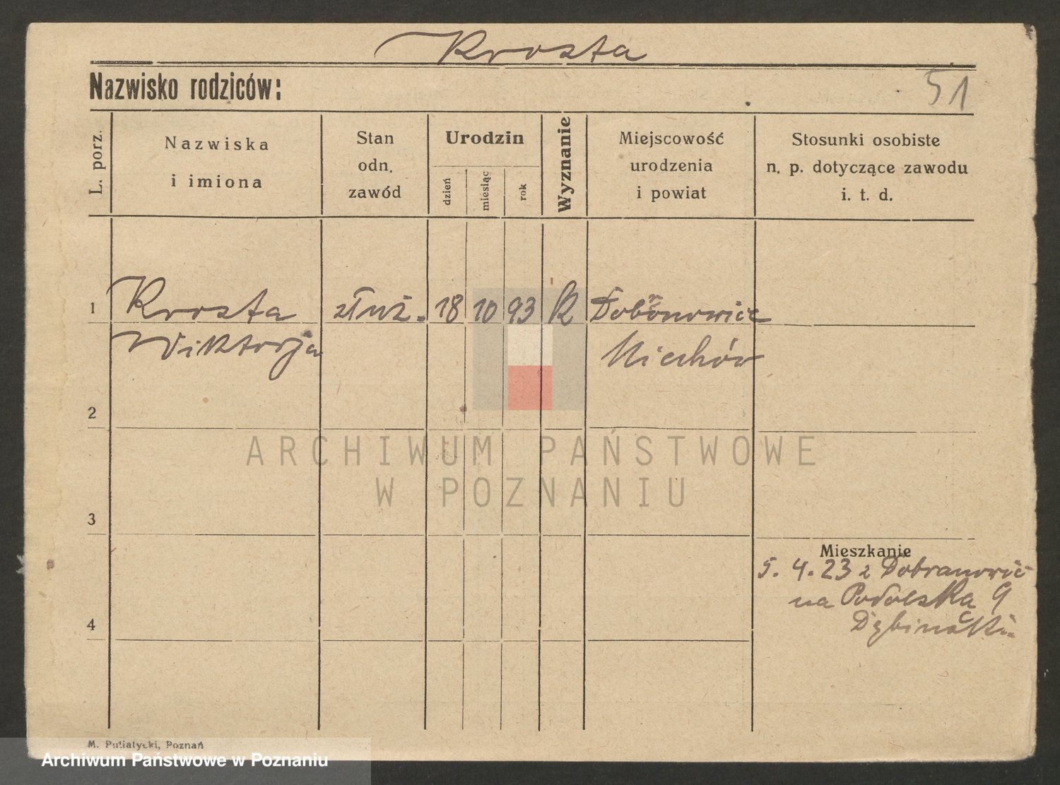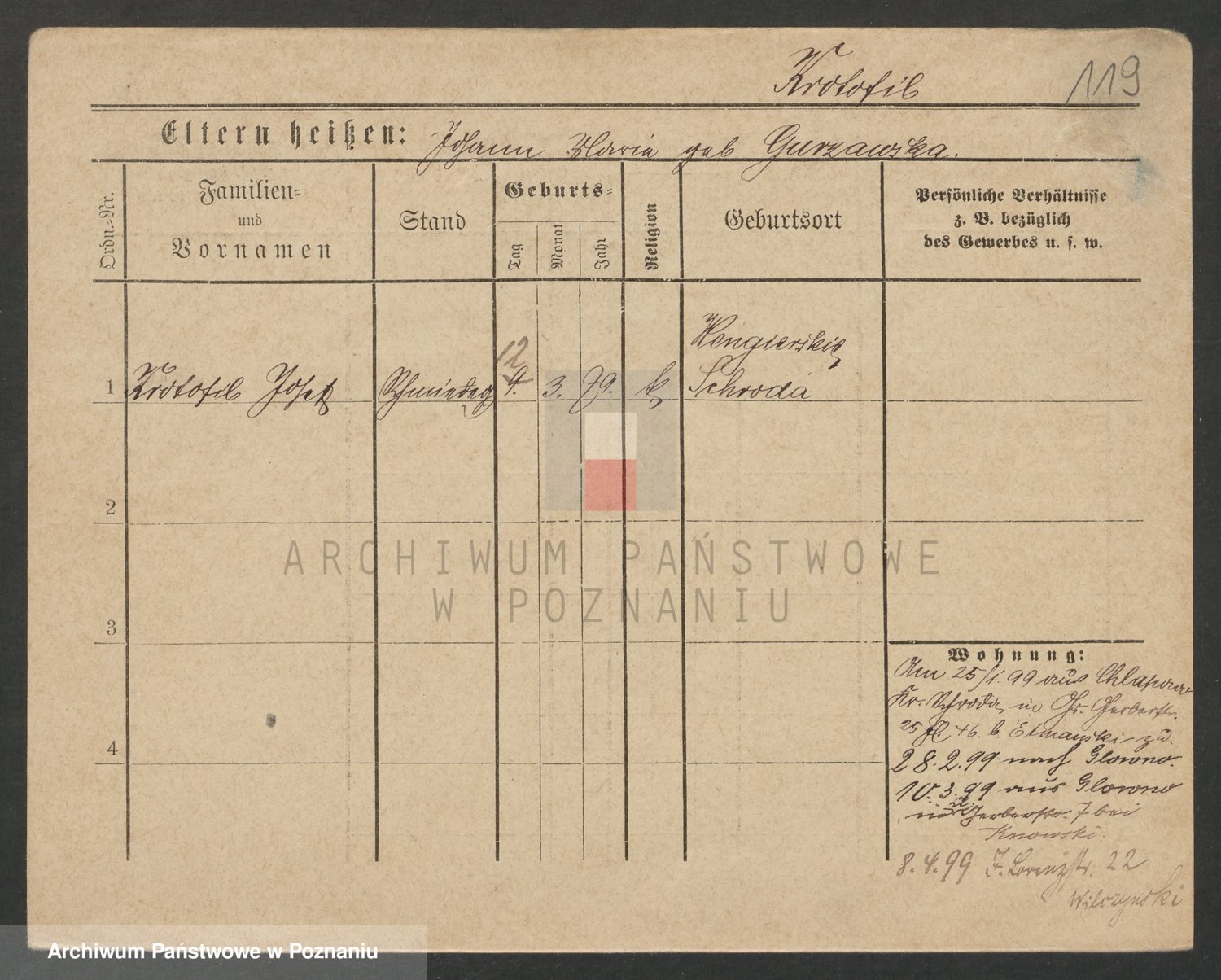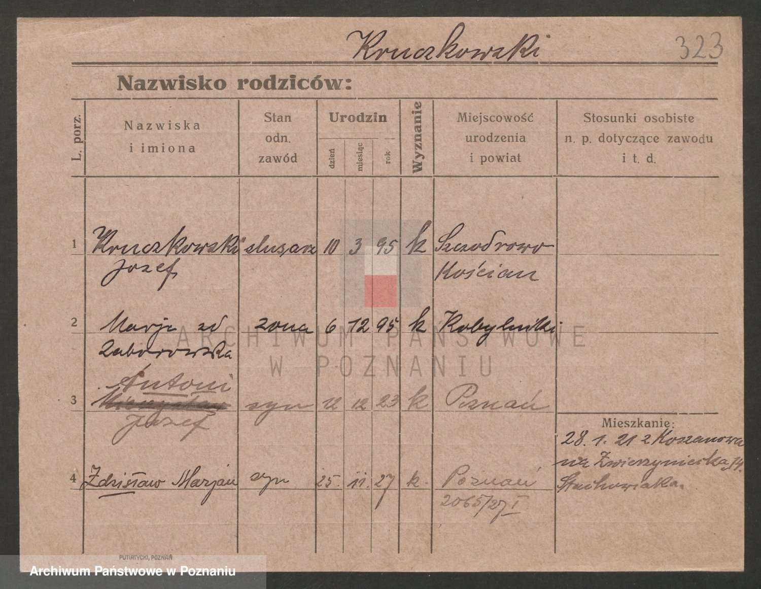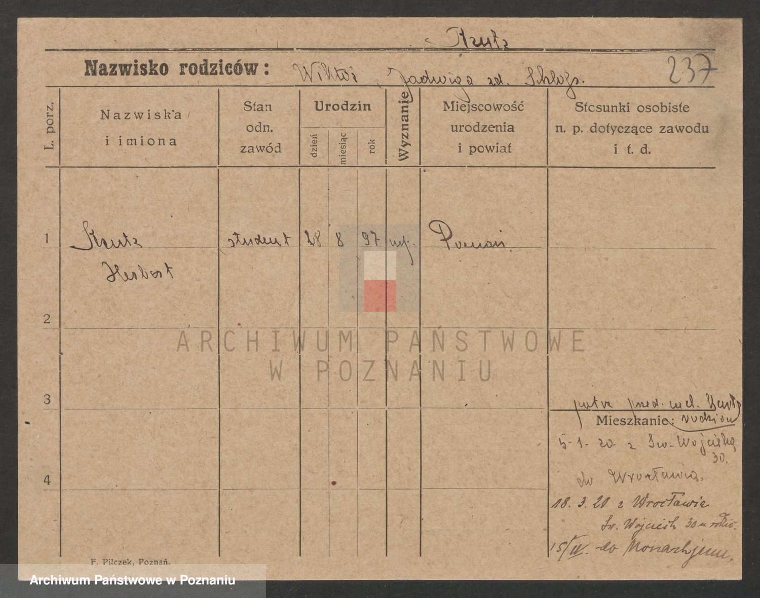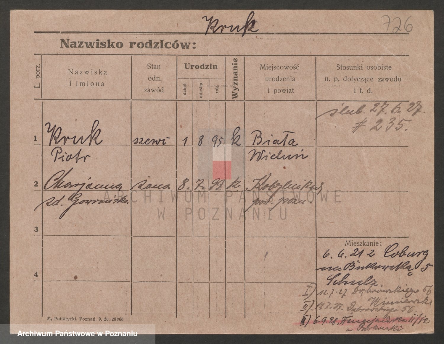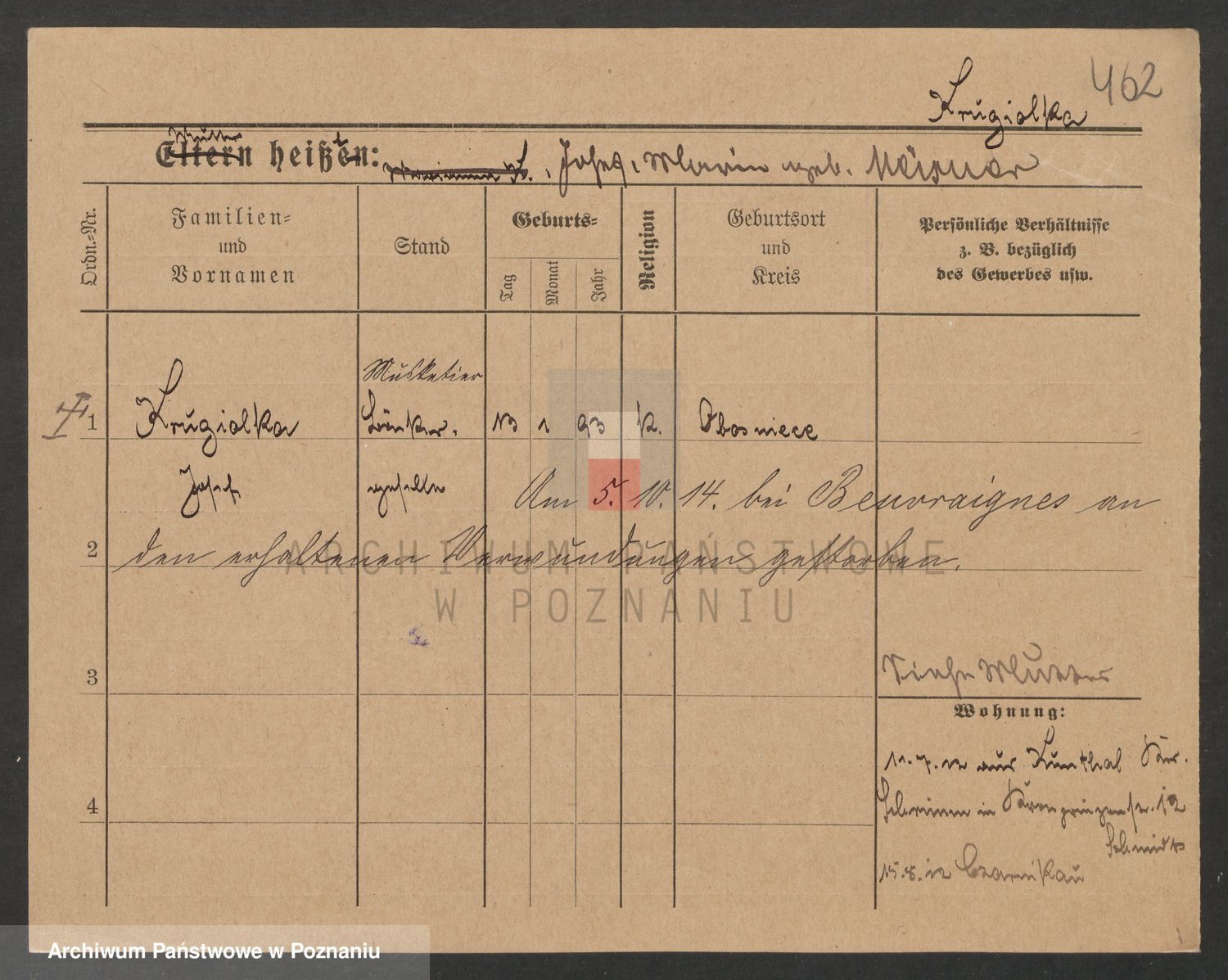 Podgląd karty osobowej dostępny jest po kliknięciu na nazwisko lub ikonkę karty. Można dokonywać powiększenia (ikony na górze) lub przechodzić między kolejnymi skanami (strzałki po bokach).