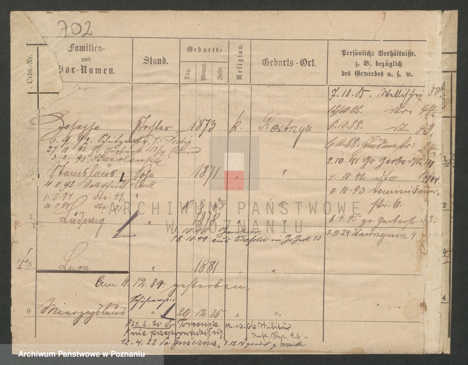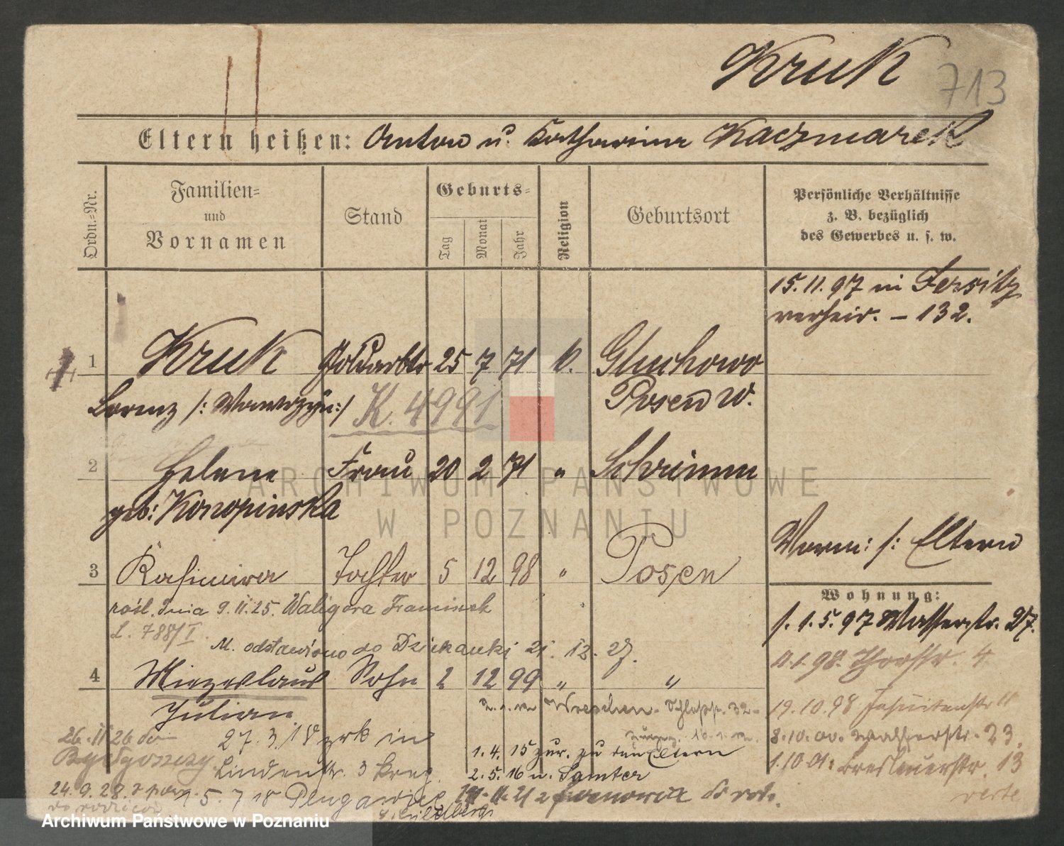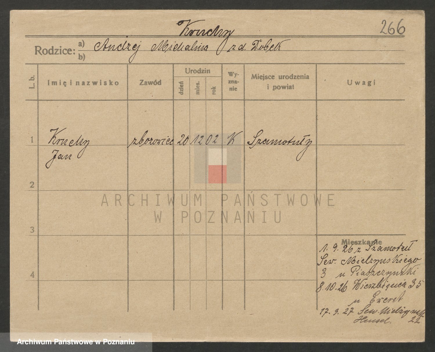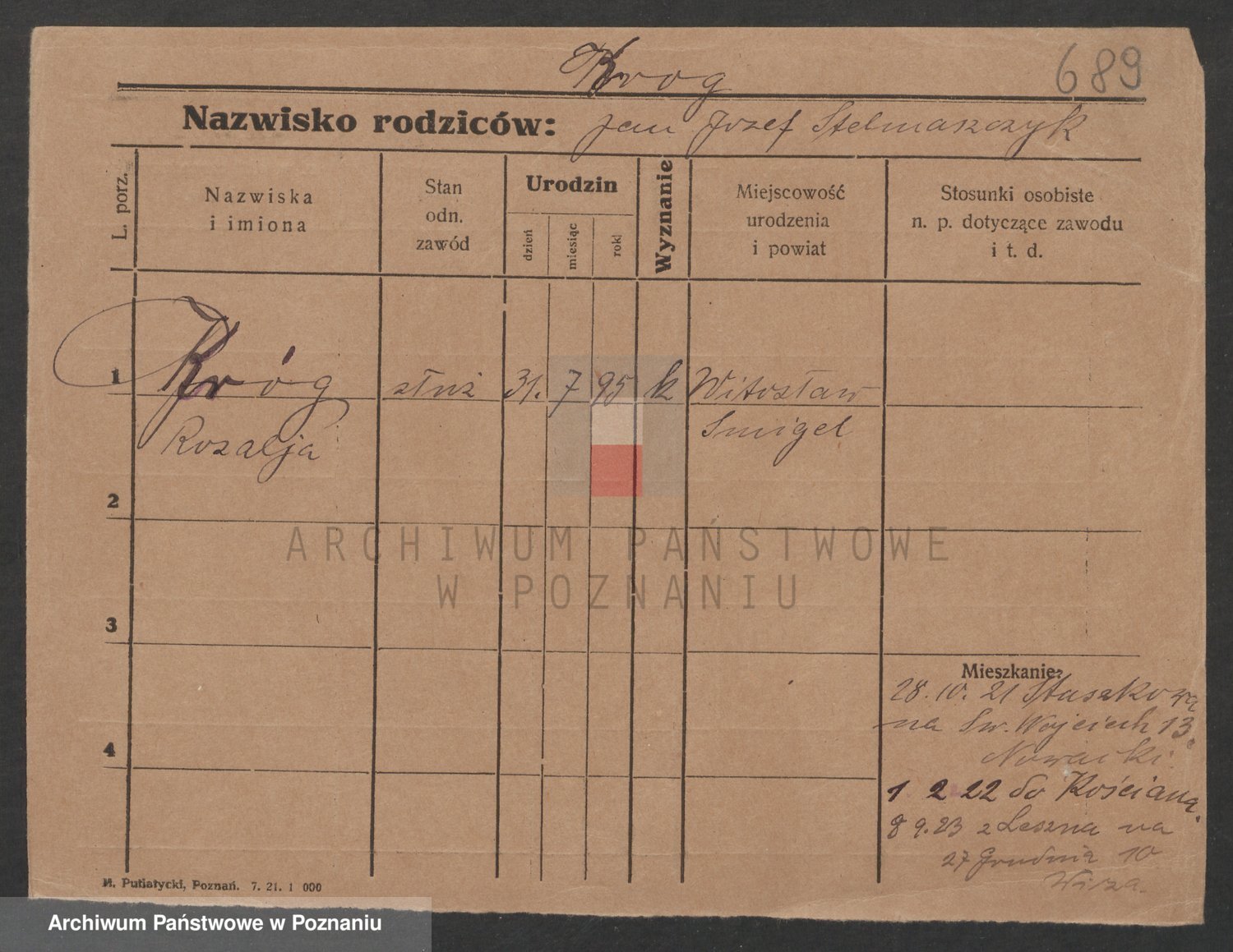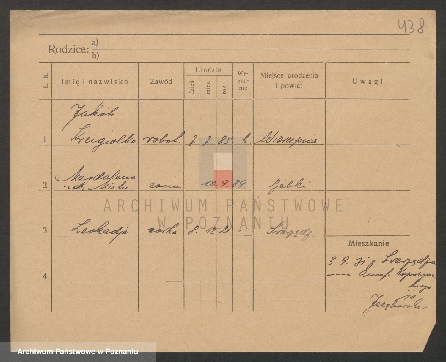 Podgląd karty osobowej dostępny jest po kliknięciu na nazwisko lub ikonkę karty. Można dokonywać powiększenia (ikony na górze) lub przechodzić między kolejnymi skanami (strzałki po bokach).