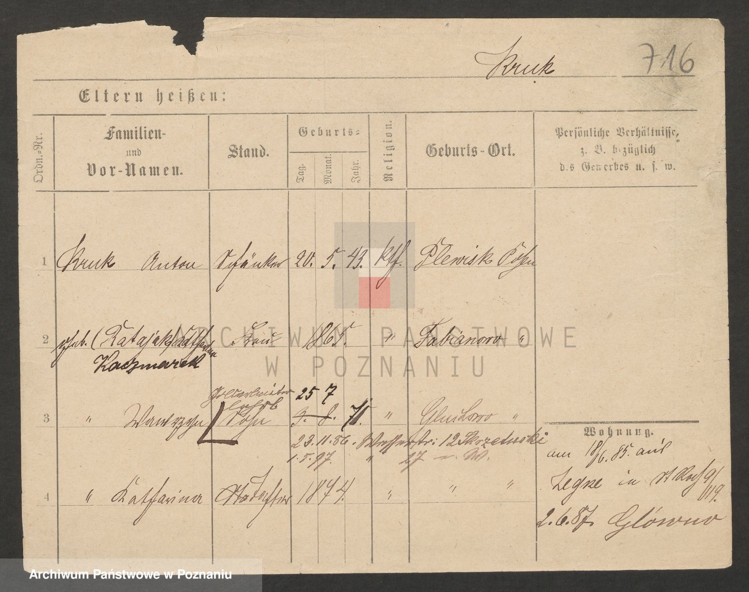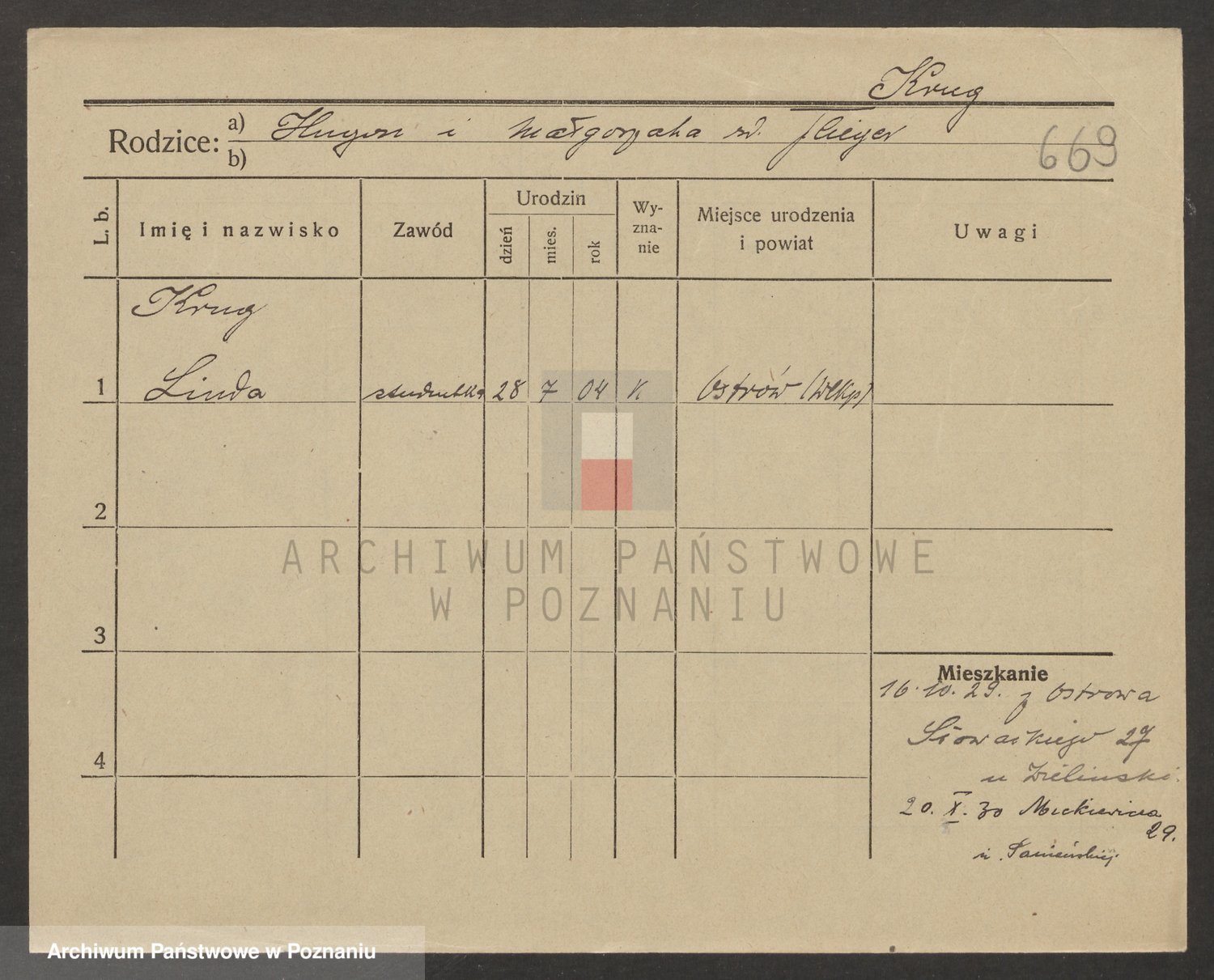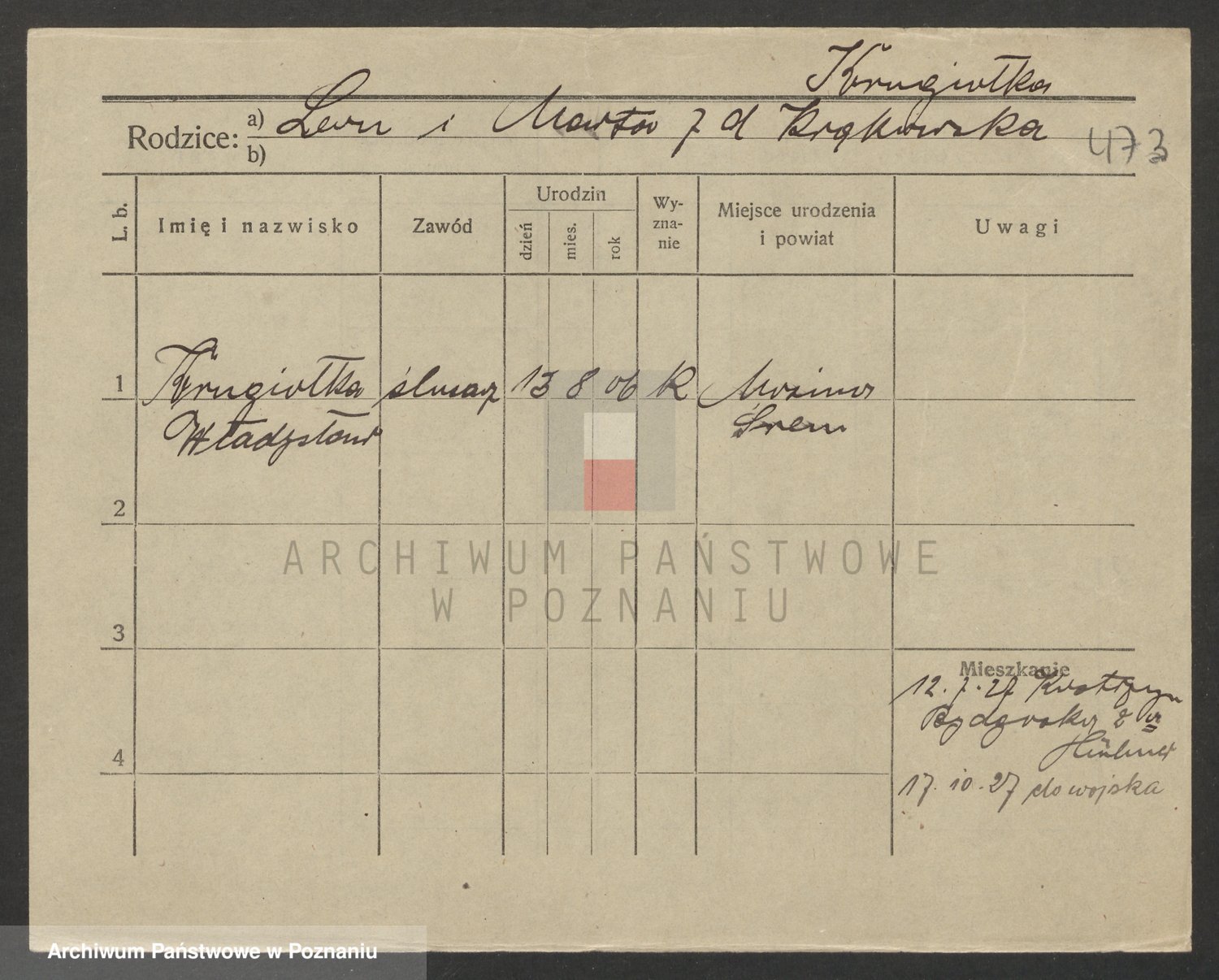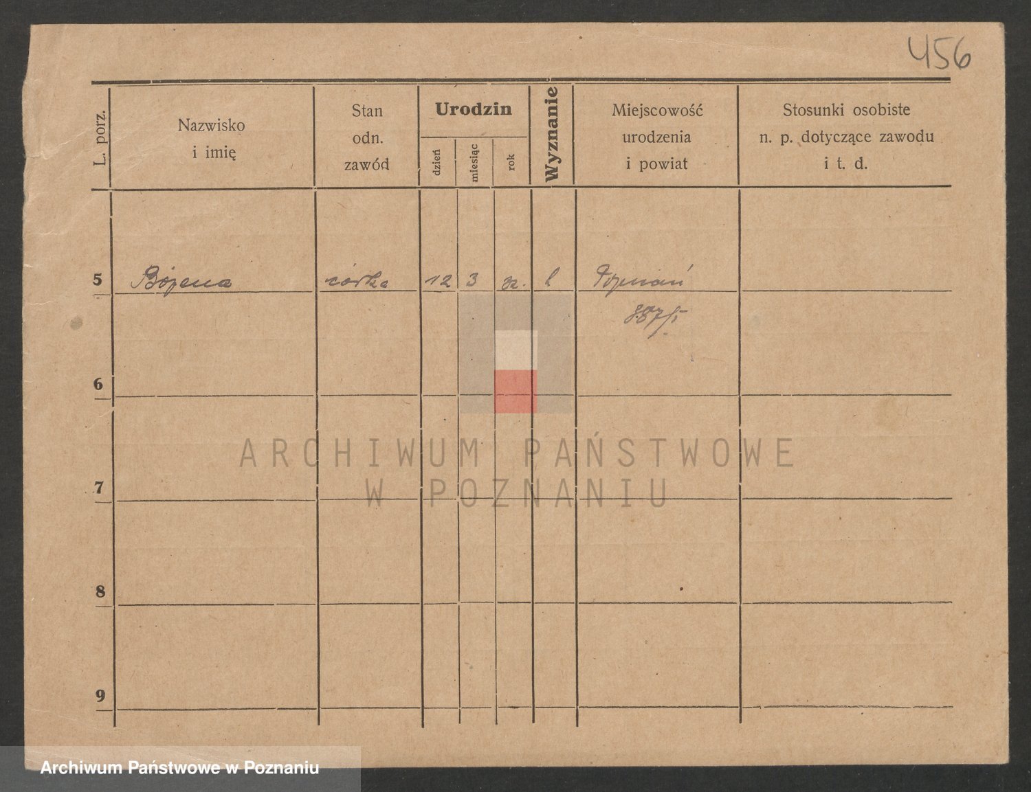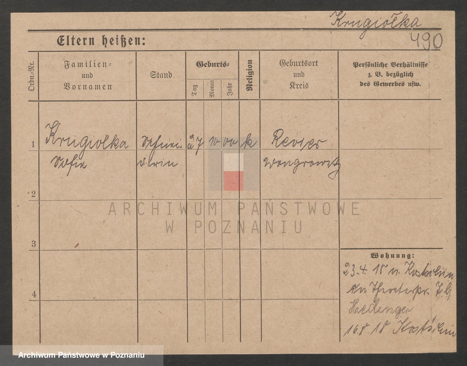 Podgląd karty osobowej dostępny jest po kliknięciu na nazwisko lub ikonkę karty. Można dokonywać powiększenia (ikony na górze) lub przechodzić między kolejnymi skanami (strzałki po bokach).