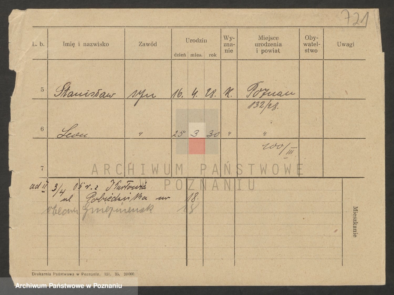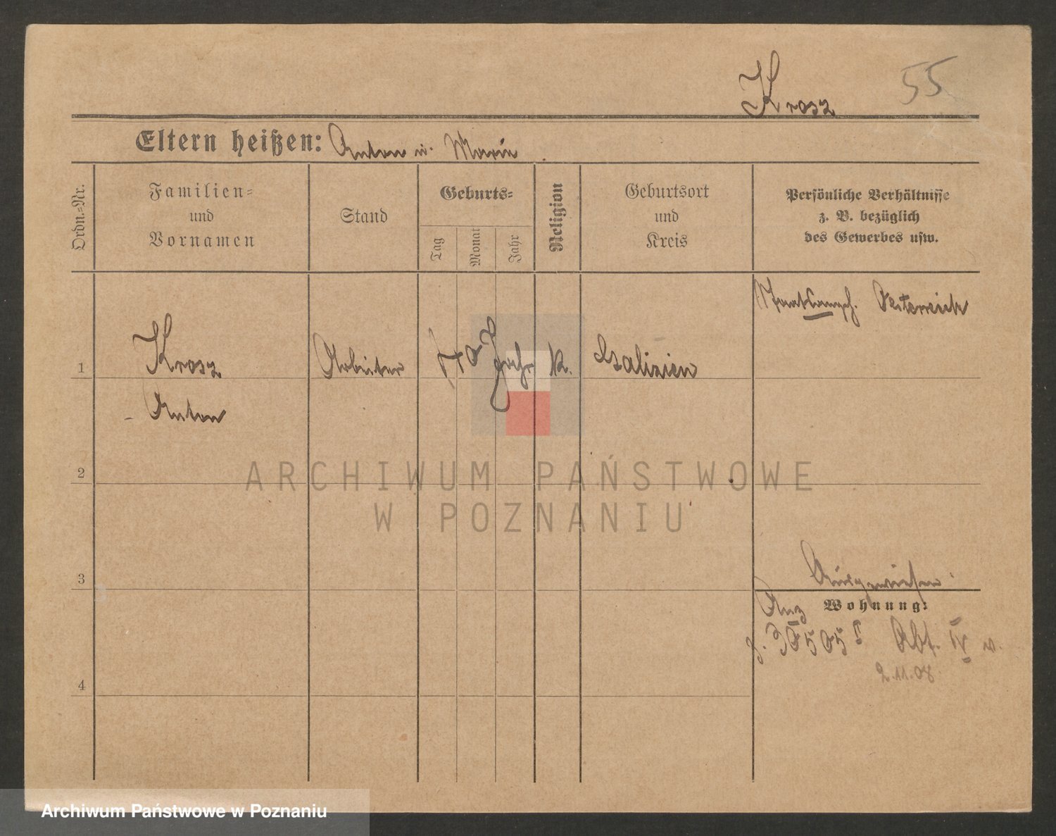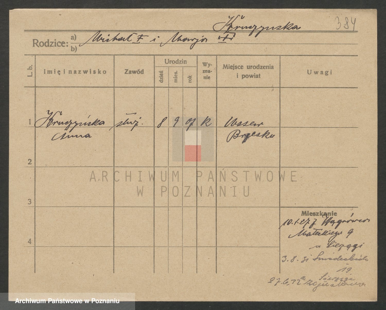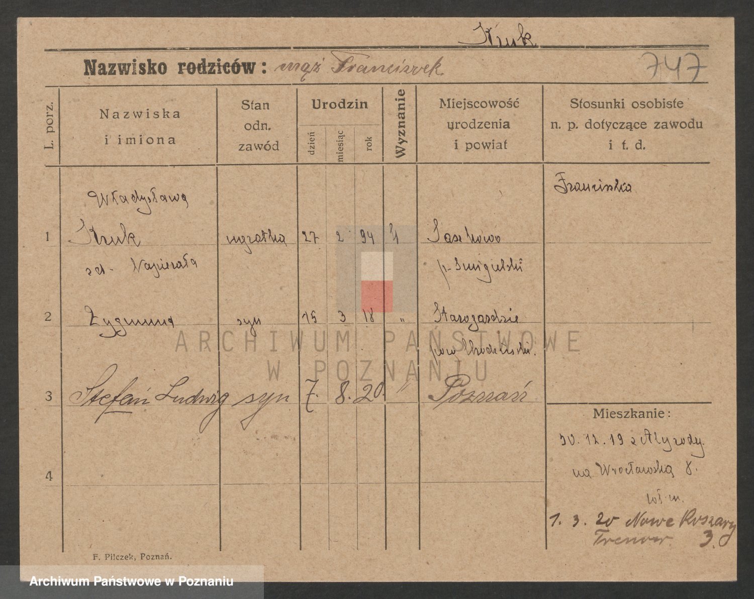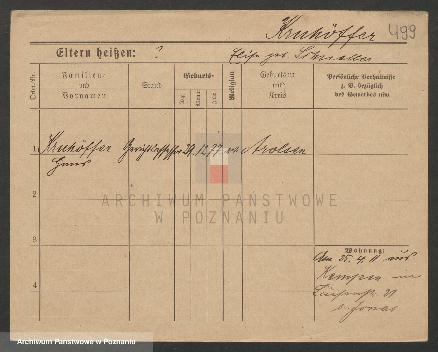 Podgląd karty osobowej dostępny jest po kliknięciu na nazwisko lub ikonkę karty. Można dokonywać powiększenia (ikony na górze) lub przechodzić między kolejnymi skanami (strzałki po bokach).