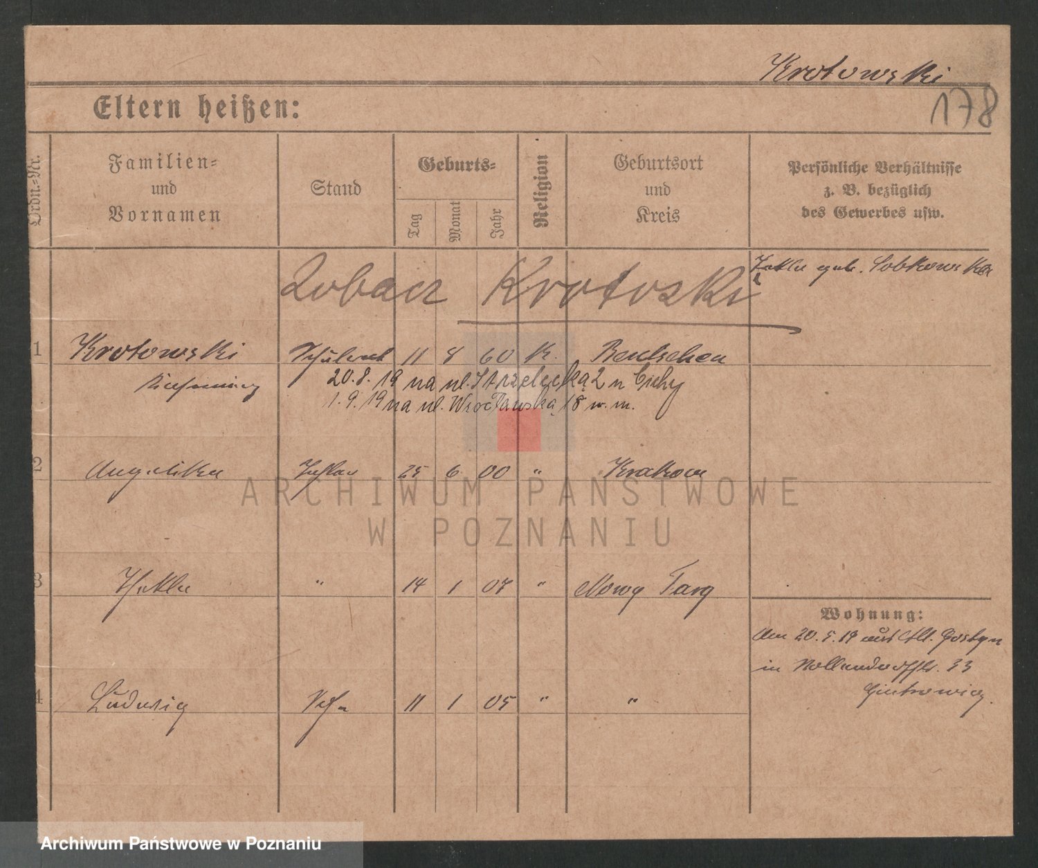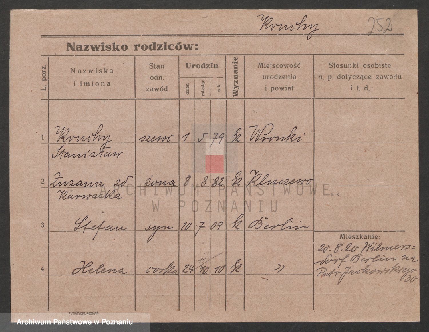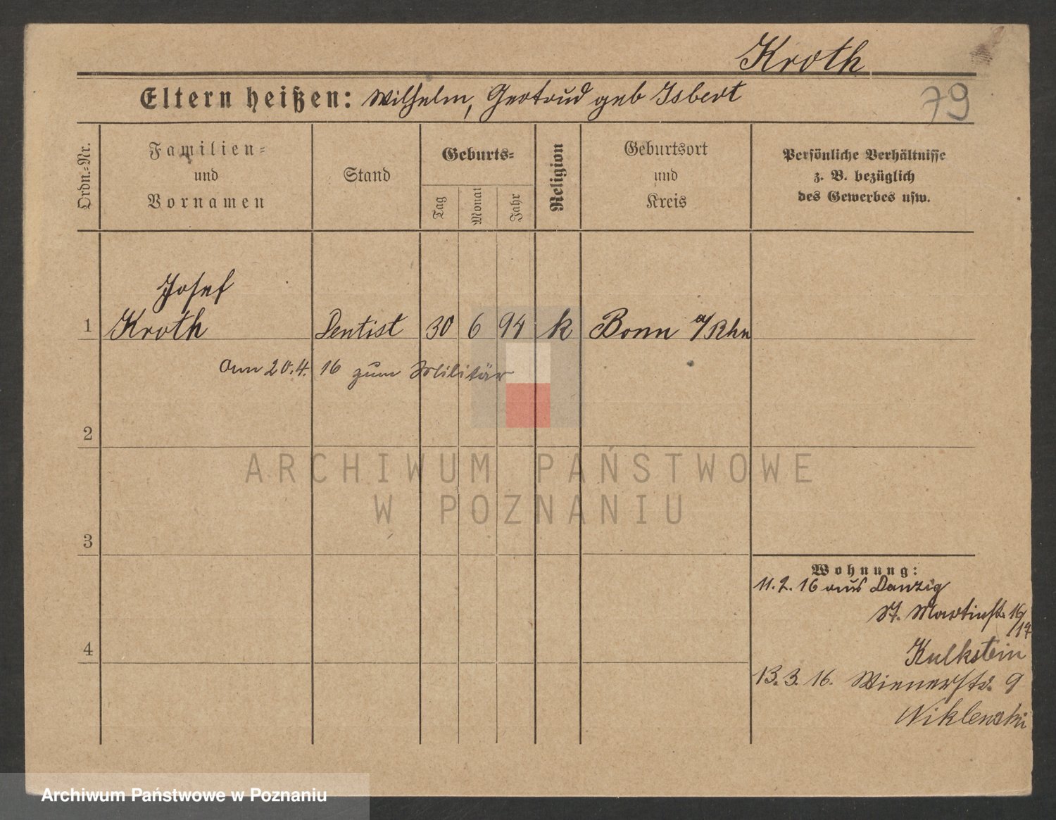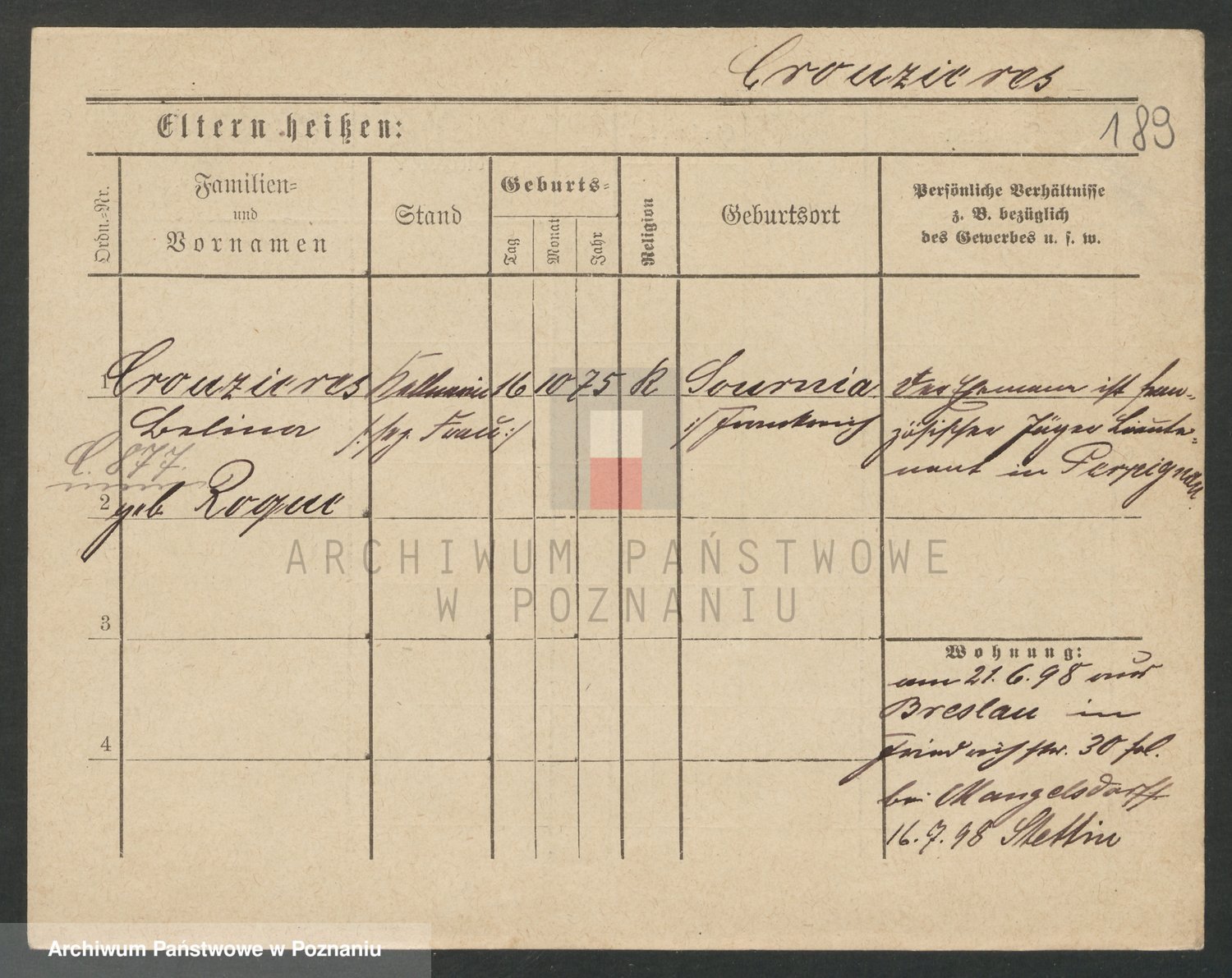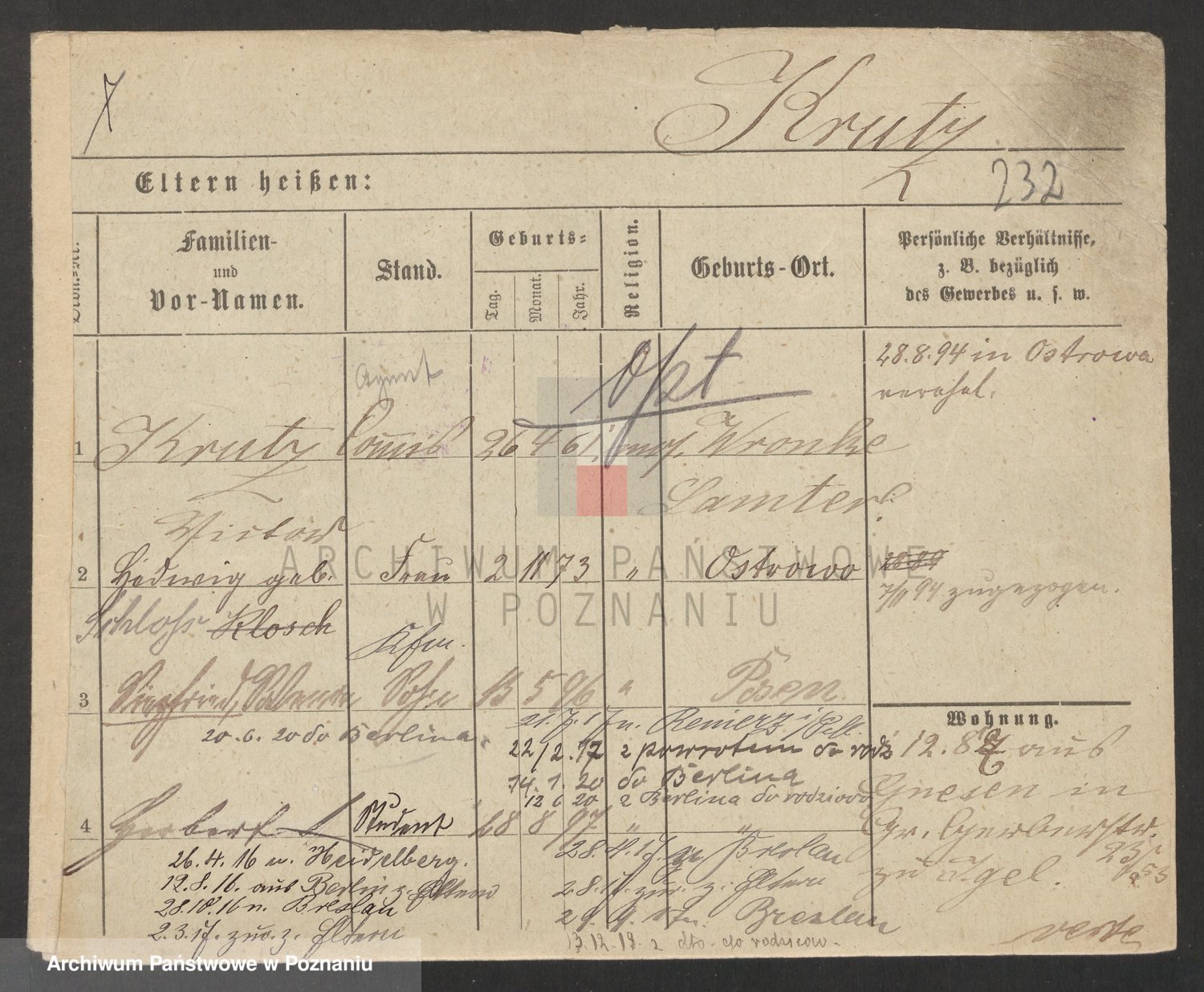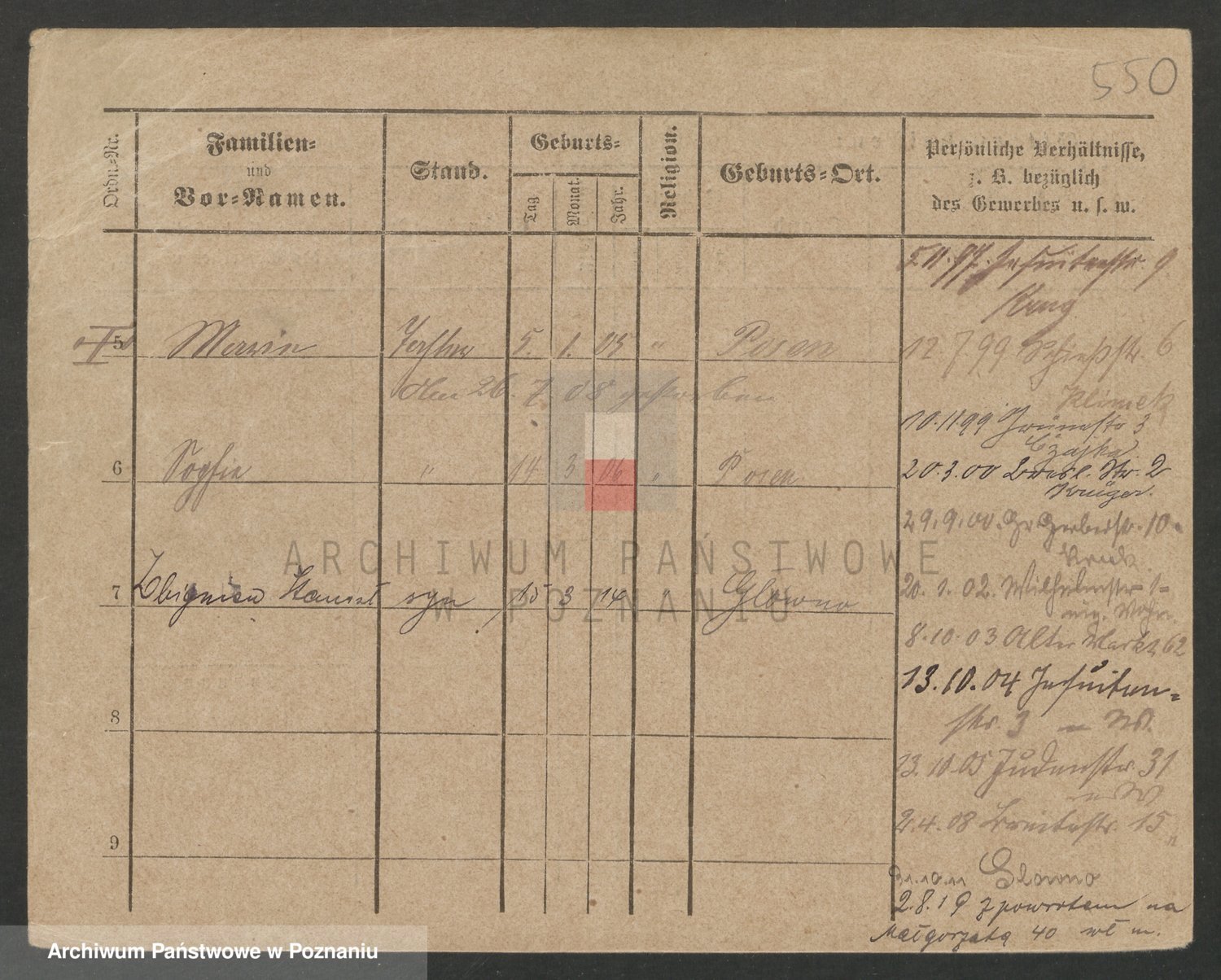 Podgląd karty osobowej dostępny jest po kliknięciu na nazwisko lub ikonkę karty. Można dokonywać powiększenia (ikony na górze) lub przechodzić między kolejnymi skanami (strzałki po bokach).